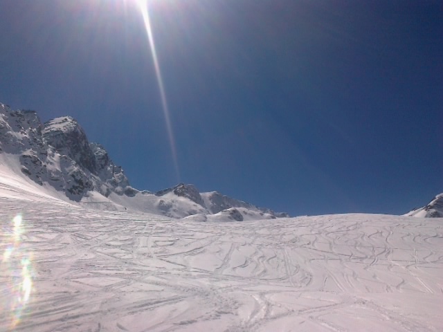 --> Überall noch genügend Schnee bis ins Tal vorhanden.
