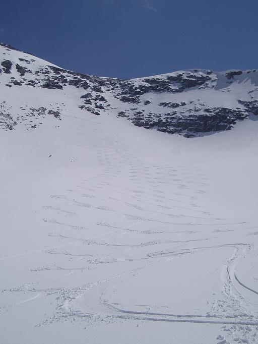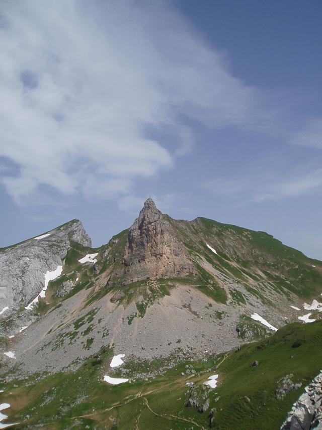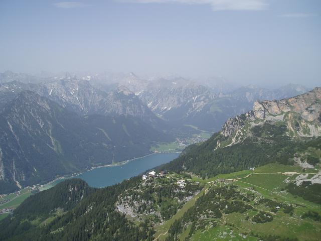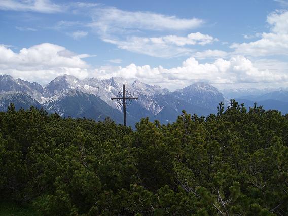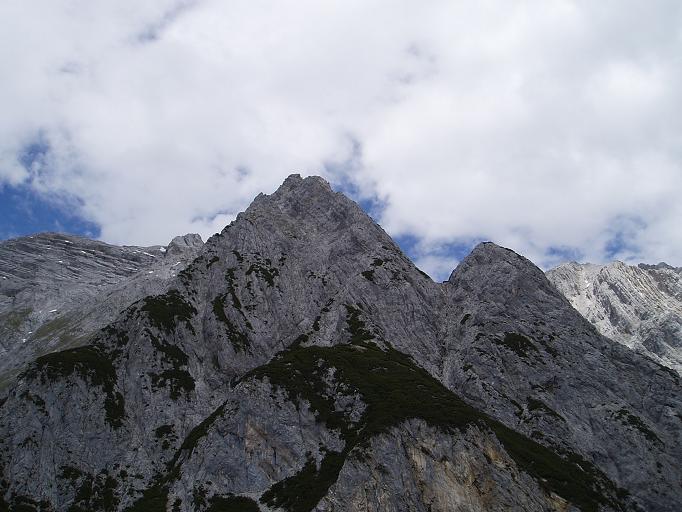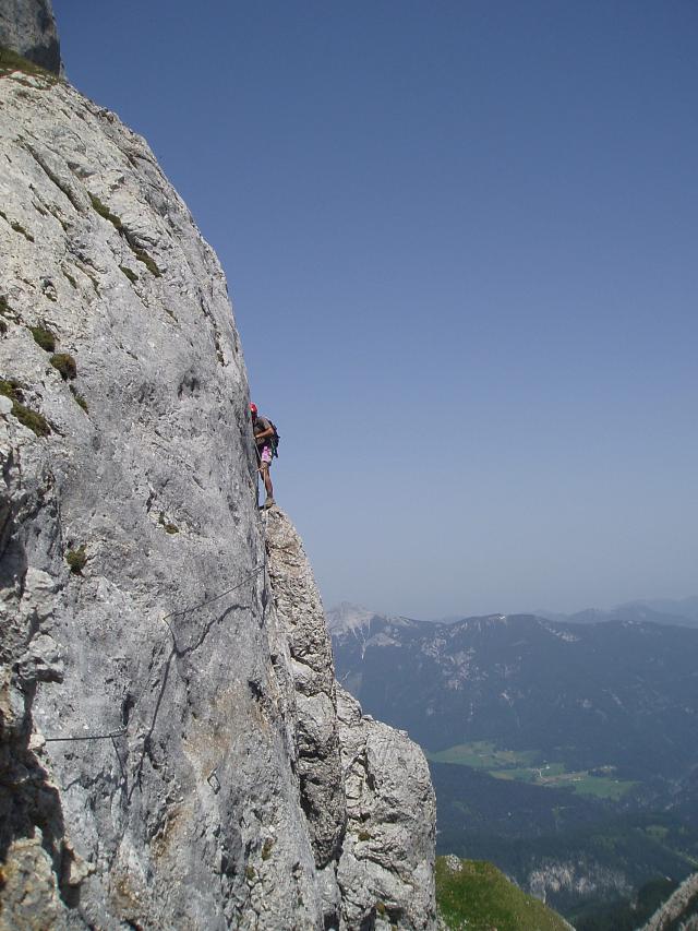 Tourenverhältnisse: Da wir alle 5 Gipfel machen wollten - und auch gemacht haben - haben wir uns die Fahrt mit der Bahn auf und ab spendiert. Von der Erfurter Hütte noch ca. 35 min. bis zum Zustieg. Erster Gipfel "Haidachstellwand", hier haben wir den Steig abgeklettert, und des öfteren Gegenverkehr gekreuzt. Beim nächsten gehts gleich richtig zur Sache, "Rosskopf", zwar nur das erste Drittel, dafür auch D-Stellen. Obwohl wenig Leute vor uns waren, flogen ziemlich die Steine herum, und 2-3mal war es sehr knapp, dass wir nicht getroffen wurden. Wir sparten uns die Rast für nach dem Dritten im Bunde, die "Seekarlspitz". Hier erwartet uns ganz anderes Klettergelände, ein ganzer Block wird gequert und das letzte Stück zum Kreuz ist leichtes Gehgelände. Nach verdienter Rast und Flüssigkeit auffüllen gleich weiter zum "Spieljoch", wo wir uns gottseidank entschieden, wieder einen Klettersteig abzusteigen, da der Weg zum letzten Gipfel ums ganze Spieljoch herumführt, und wir sicher eine halbe bis dreiviertel Std. länger gebraucht hätten. Dann hätte uns fast das Wetter noch einen Strich durch die Rechnung gemacht, denn nach einem Drittel hinauf zum "Hochiss", der mir dann mit 2 D-Stellen, schon die letzten Reserven raubte, zog dichter Nebel auf, und wir hörten auch Donner.... mulmiges Gefühl machte sich breit, doch wir schafften es rechtzeitig auszusteigen, und während wir zur Bergstation zurück wanderten, verzog sich der Nebel und die Gewitterwolken wieder und wir konnten bei Sonnenschein Kaffe und Kuchen geniessen.
