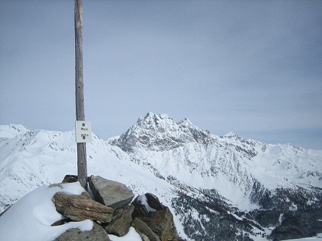 Abmarsch bei Schneefall um 9 Uhr ins Val Viola zum Lagh da Val Viola (2.159m) und von hier nach N zur Campasciol und weiter zur Plan de la Genzana (Enzianwiese). Zuerst nach NO zum P. 2426 m und von hier nach N bis kurz vor den Turm, hier links und weiter über flacheres Gelände zum Gipfel, der um 12.30 Uhr bei sehr stürmischem Wetter erreicht wurde. Abfahrt wie Aufstieg bei miserablem Wetter zurück zur Hütte.