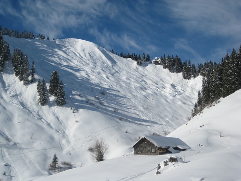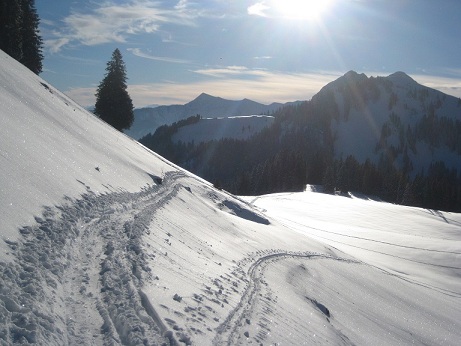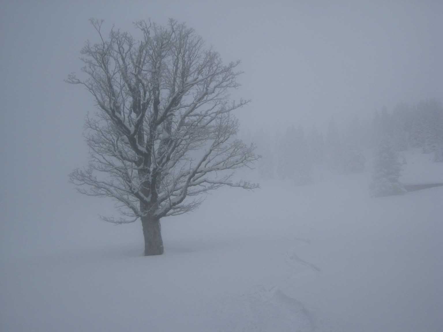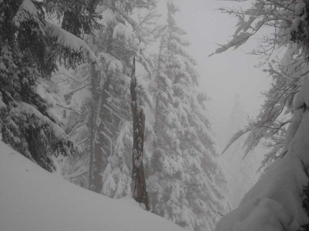 Tourenverhältnisse: Pulverschnee, phantastisch viel Schnee, leider ab 1500 m eine komplette Nebelsuppe