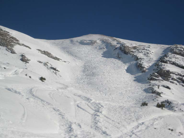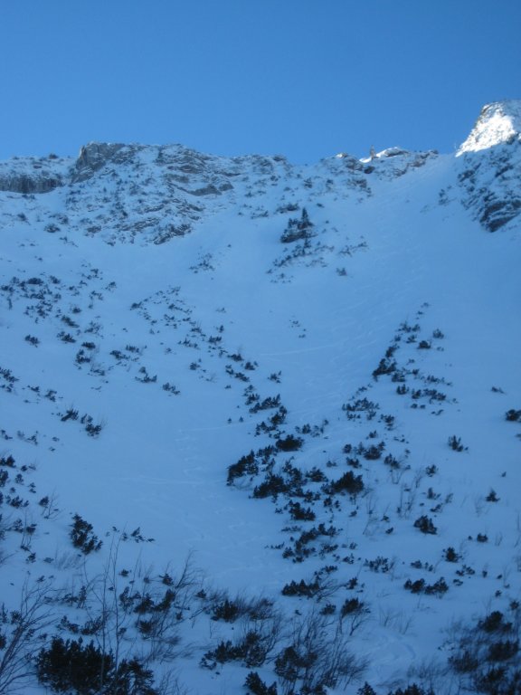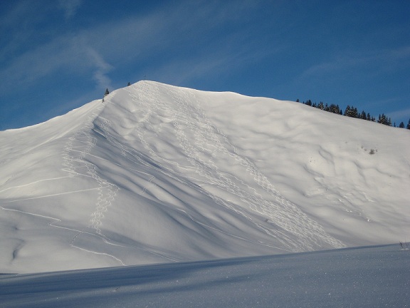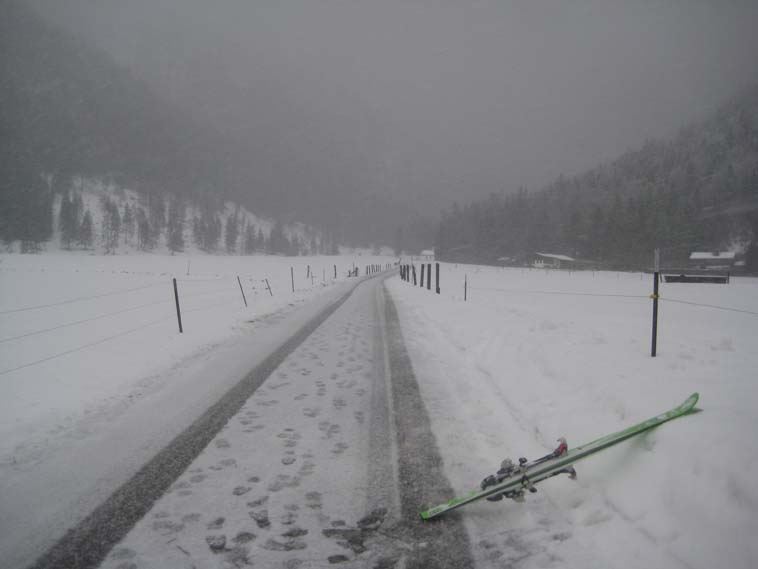 Gefahreneinschätzung: rein lawinentechnisch mäßig, jedoch aufgrund der schlechten Sicht konnte man überhaupt nicht sehen, in welche Steigung man hineinläuft