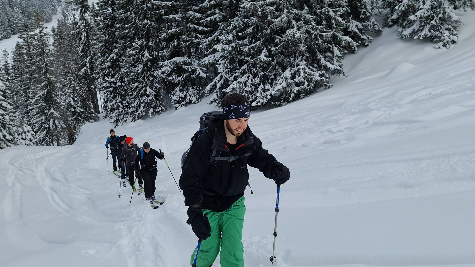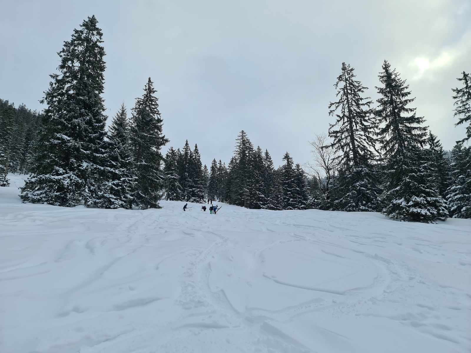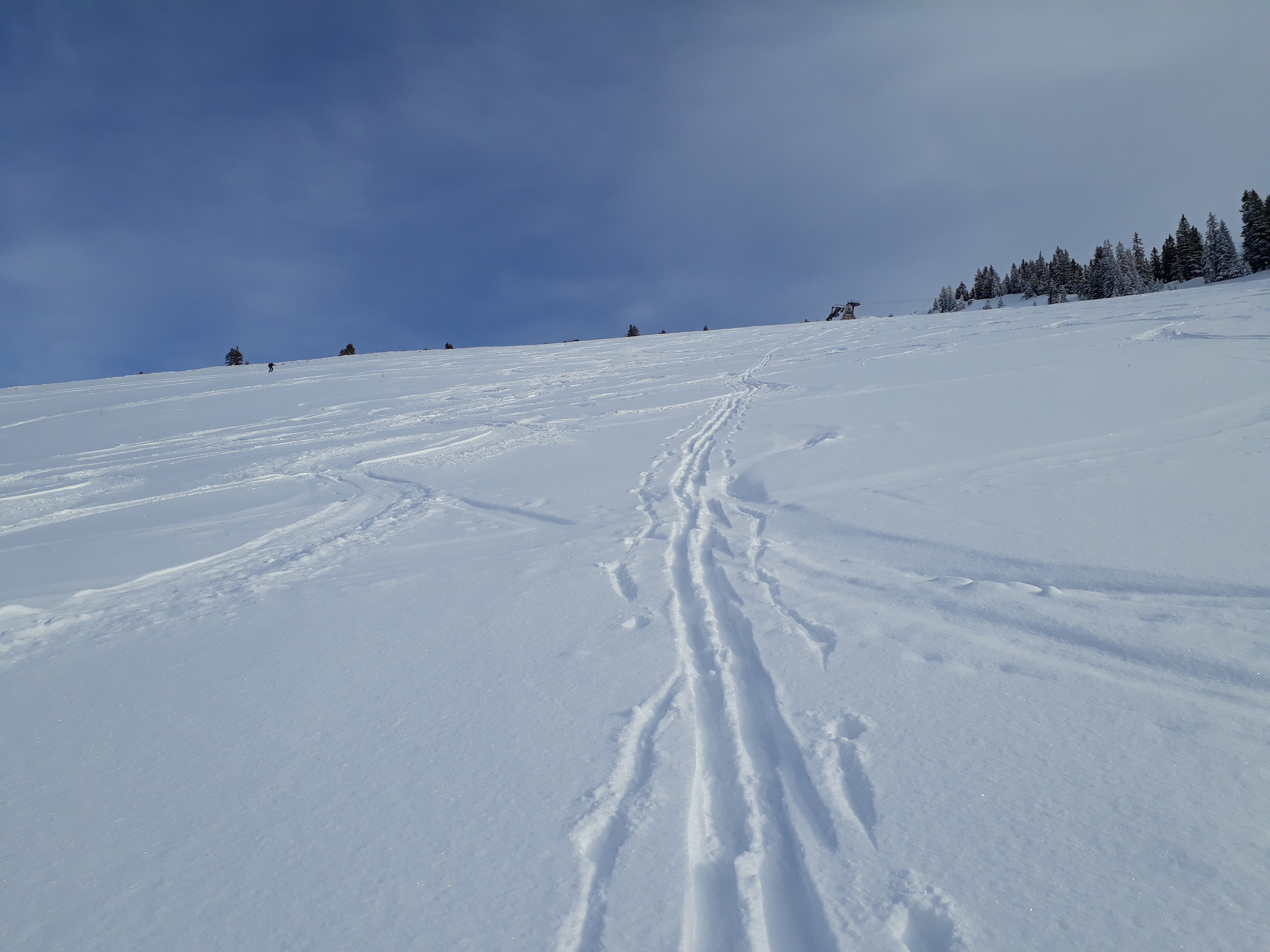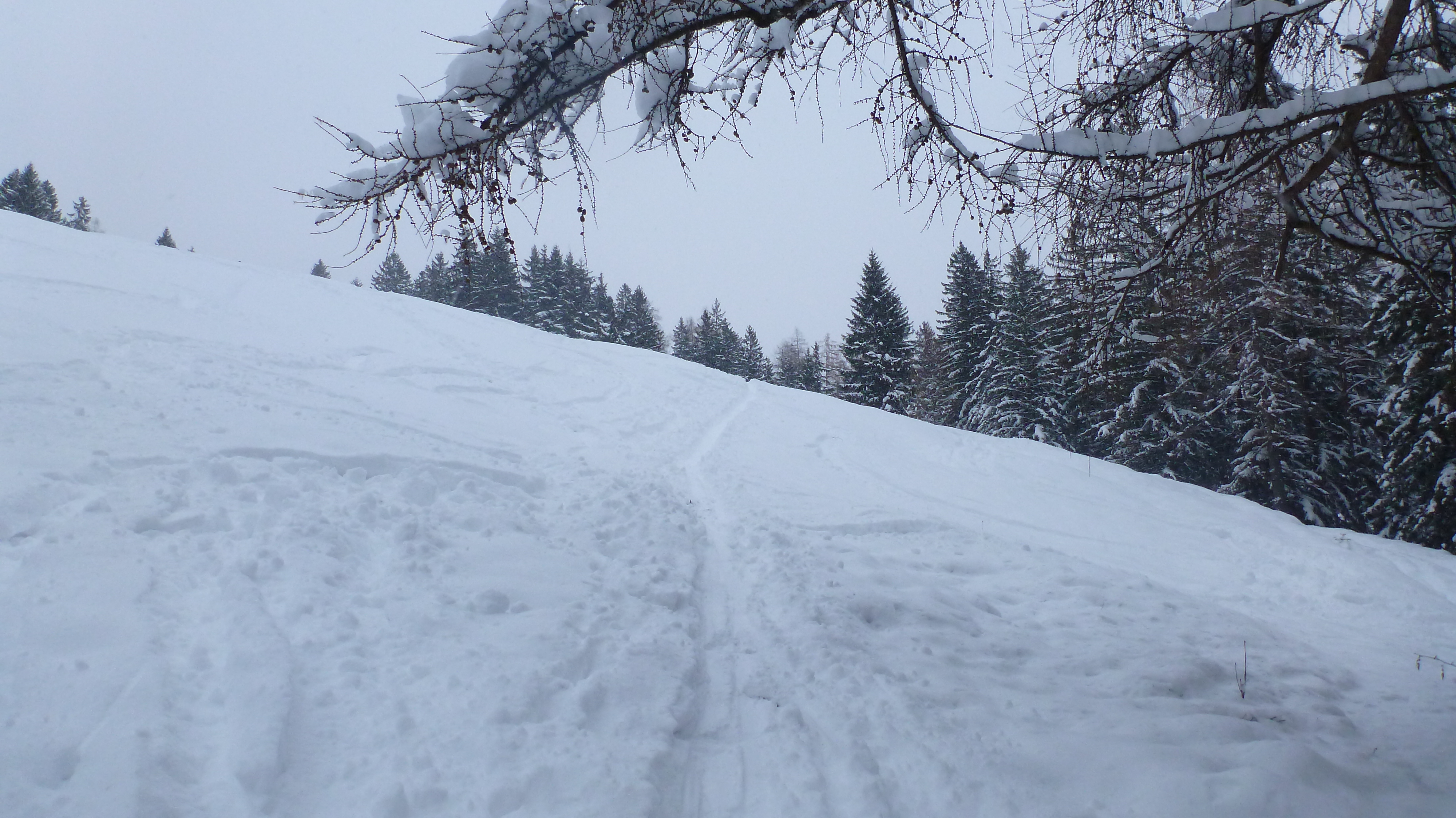 Prognose: geht noch, Aufstiegsspur im Wald durch Abfahrt morgen sicher nicht mehr schön zu gehen...
