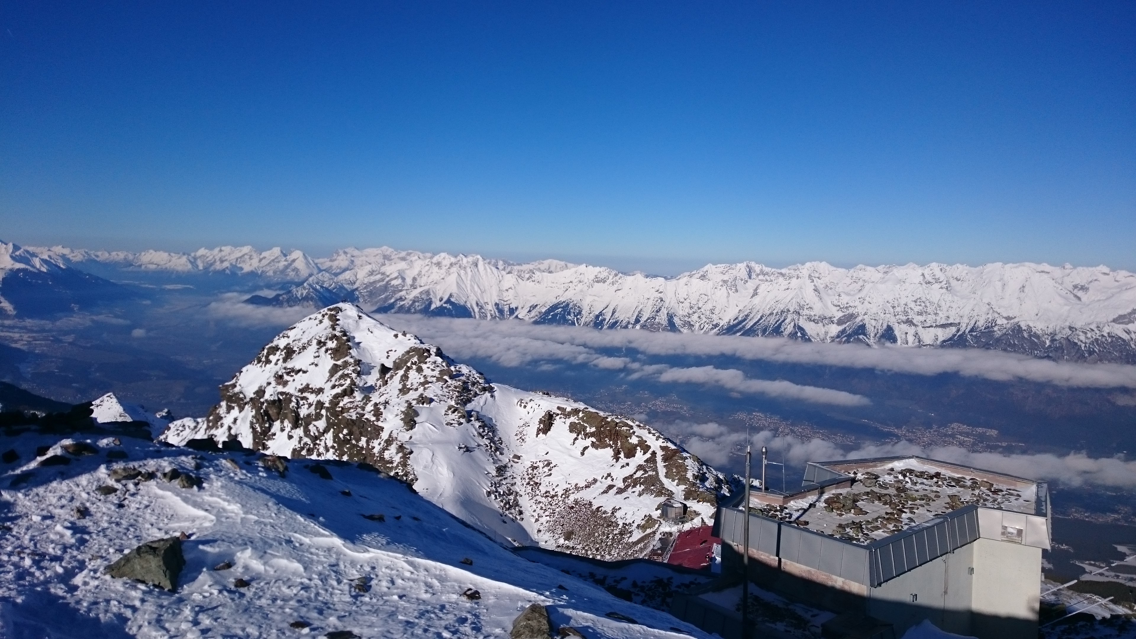Sonstiges: Von Gufl entlang der Pisten aufwärts zur Scharte zwischen Schartenkogel und Glungezer, von dort den Holzstangen folgend erst auf den Glungezer, dann über den Verbindungsgrat auf die Sonnenspitze,