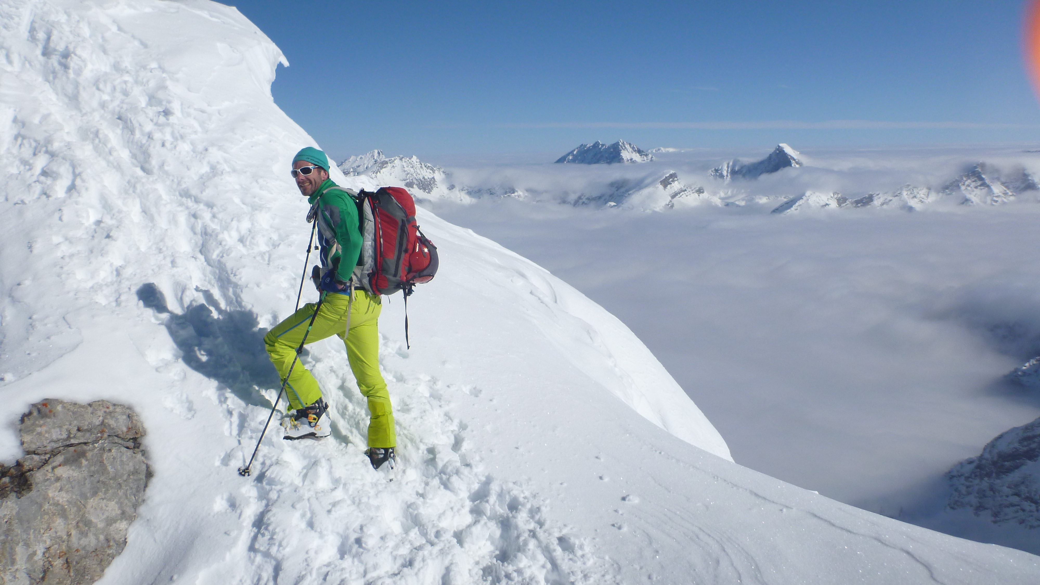 Tourenverhältnisse: sehr gut, Gipfelhang kann noch mehr Schnee brauchen