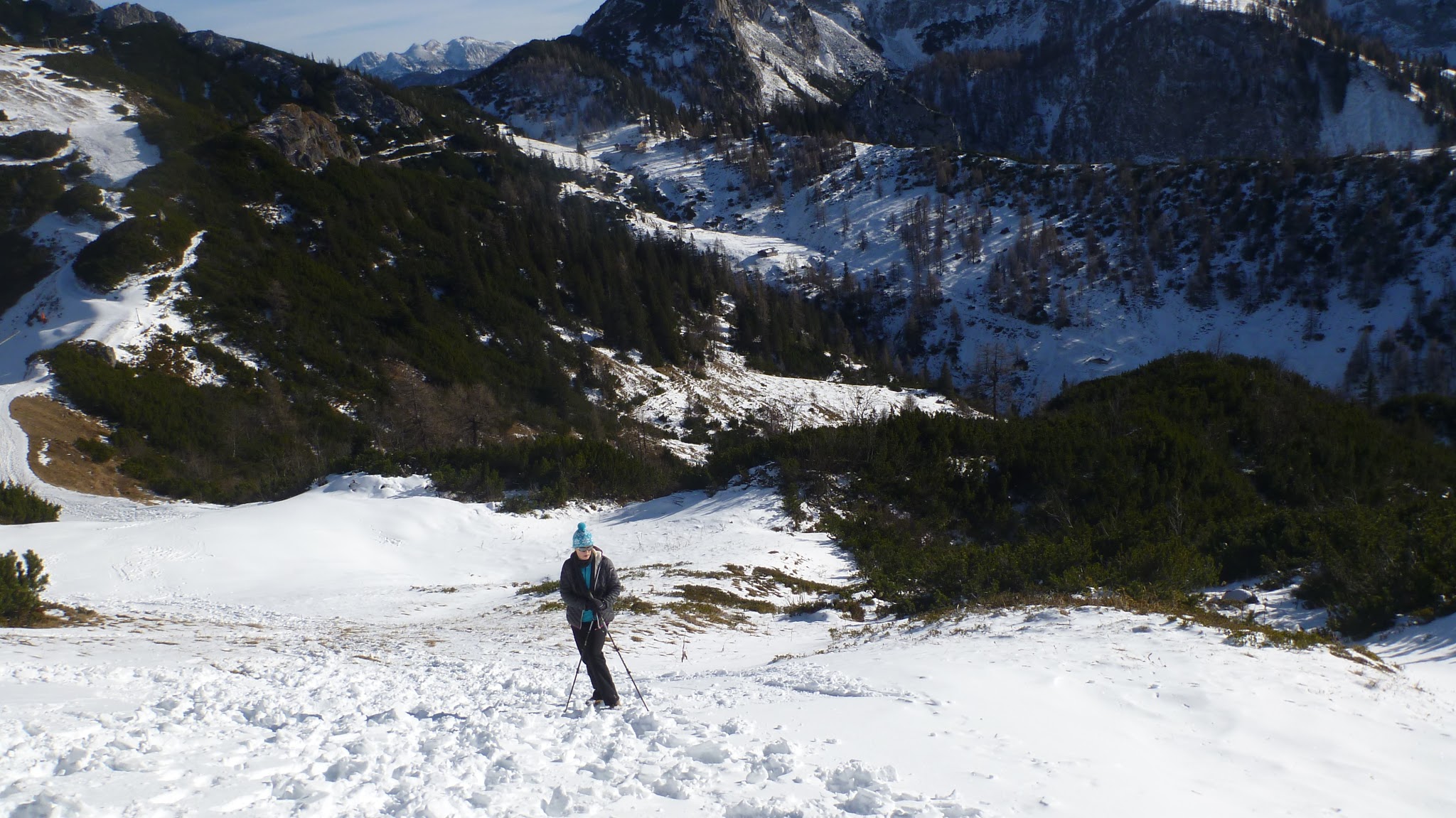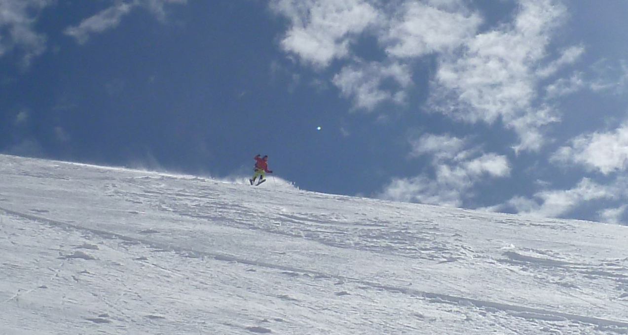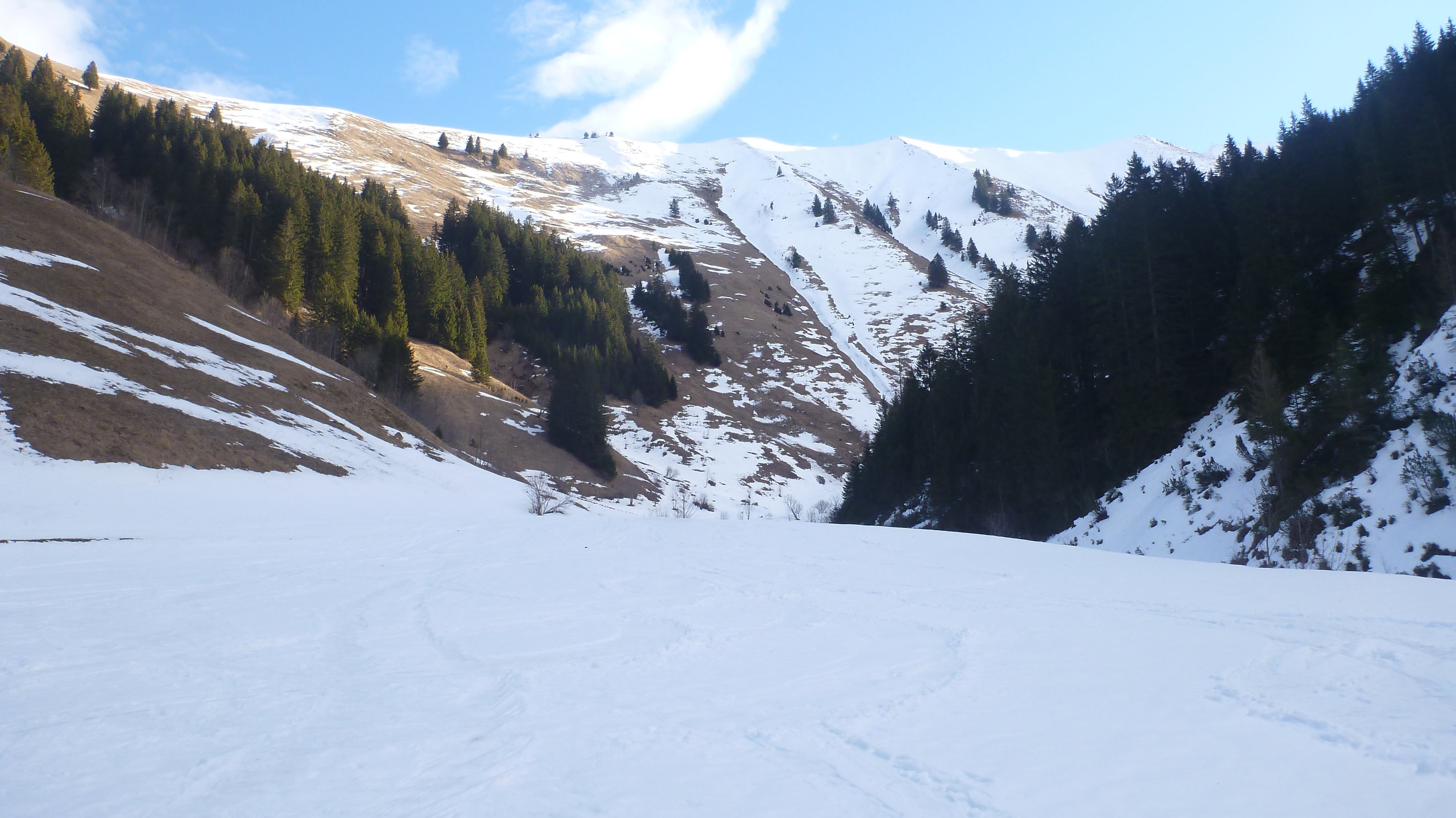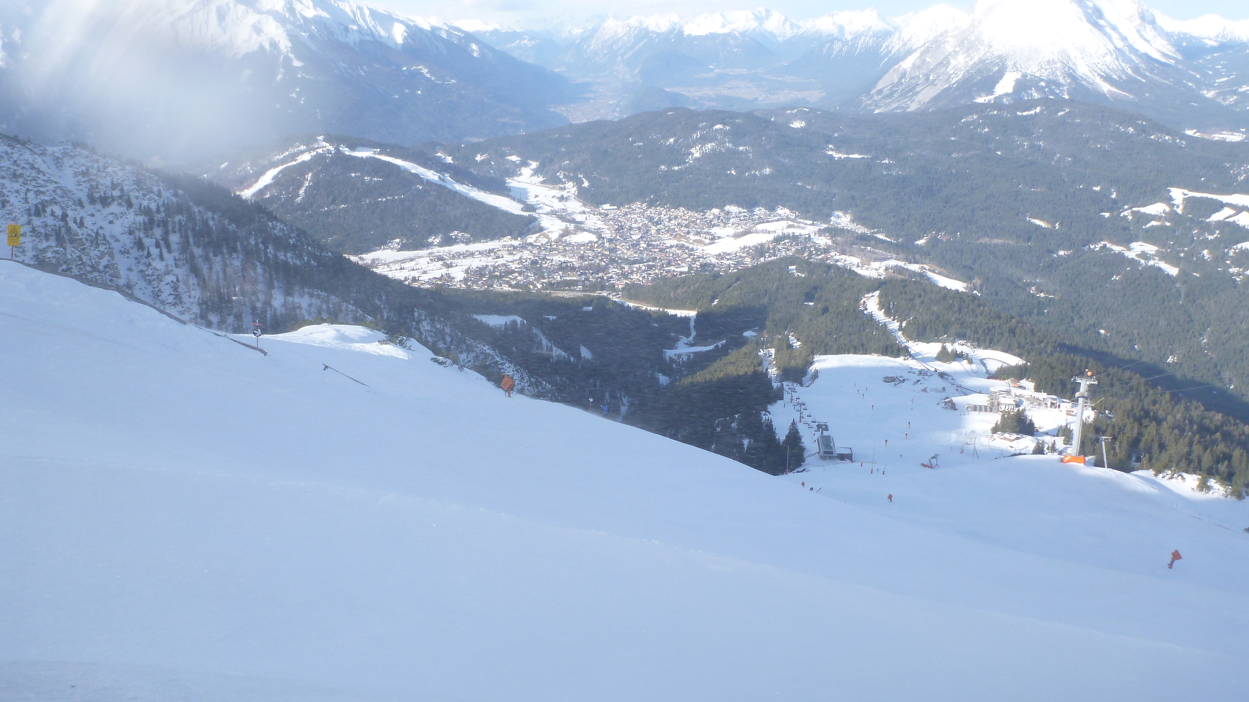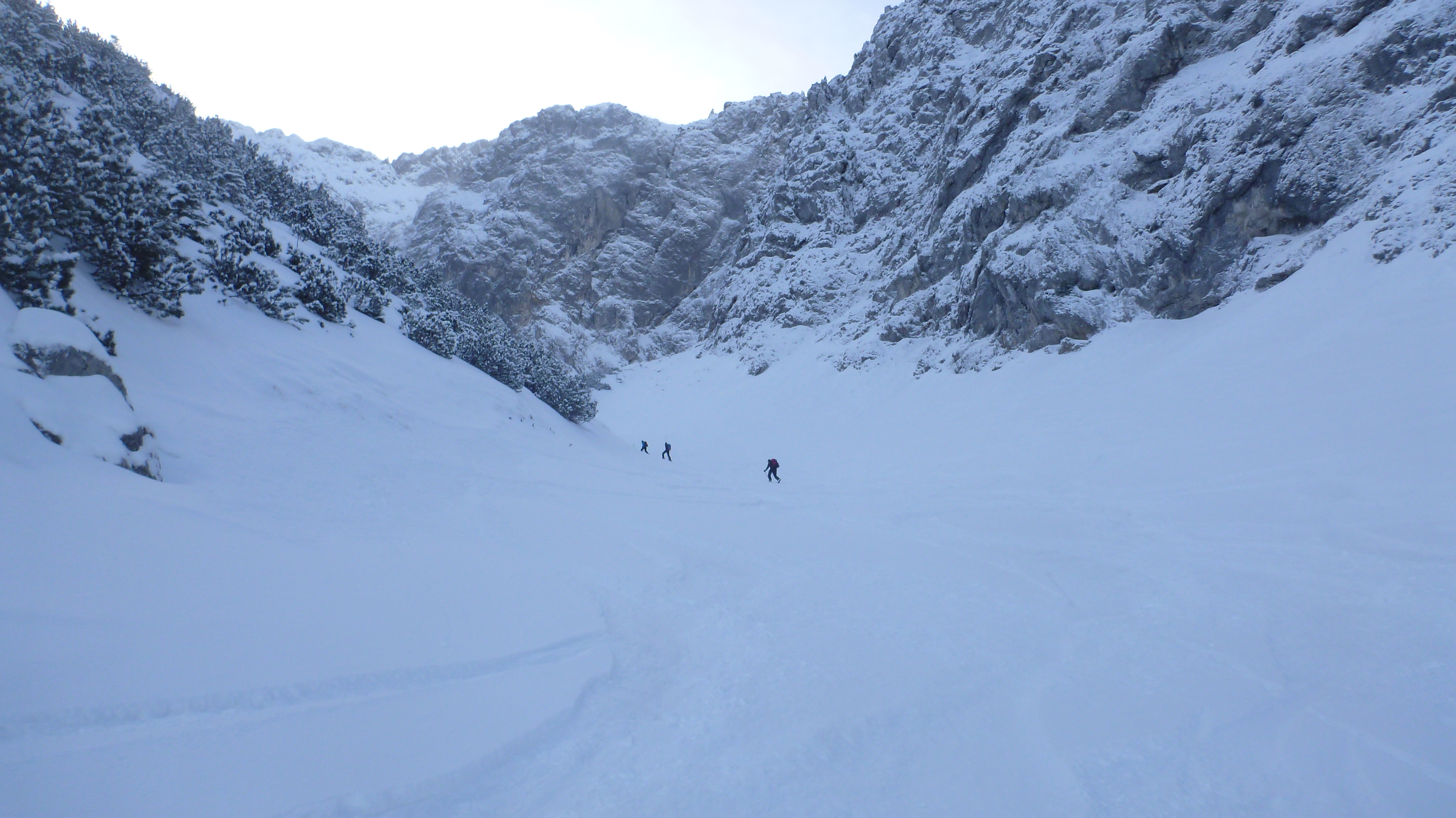 Sonstiges: Aufstieg entlang der Piste über weichen Sulzschnee, am Tiroler Stüberl vorbei zum Kessel der Waller- und Speckalm und weiter neben dem Schlepper zum Sudelfeldkopf.
