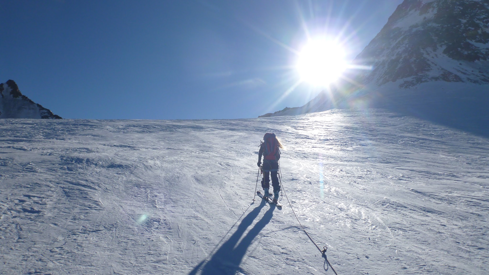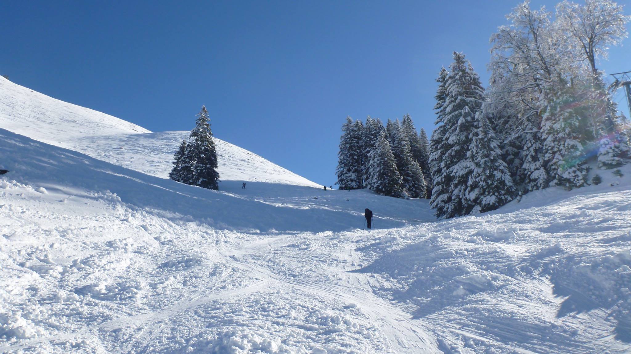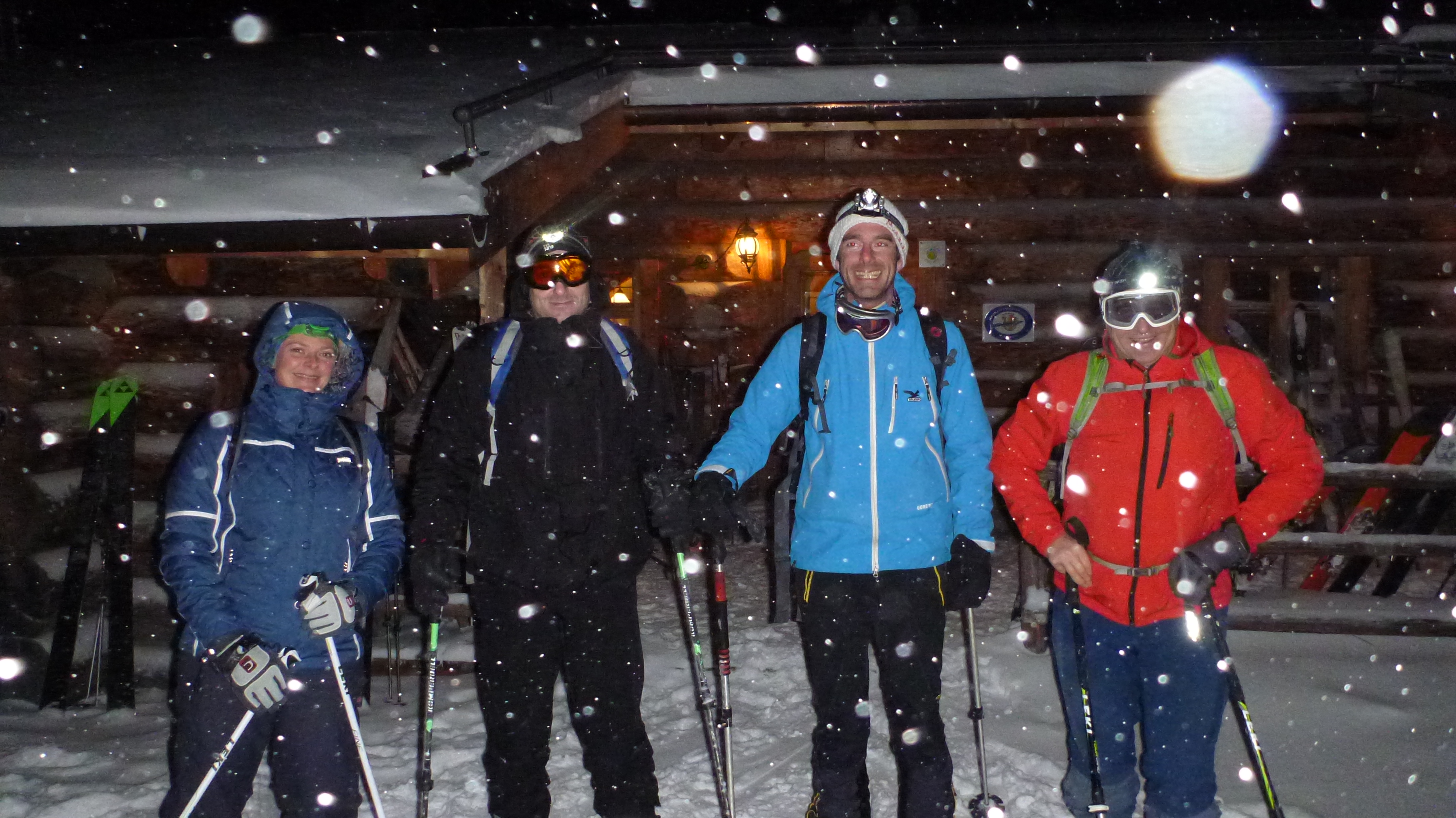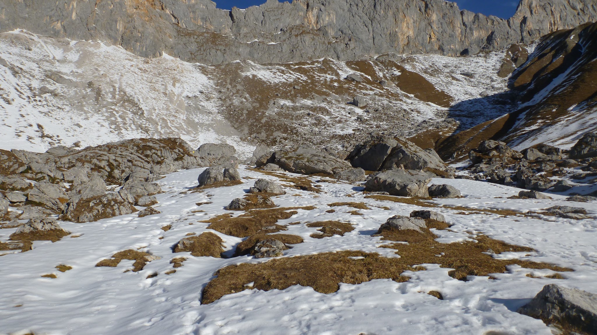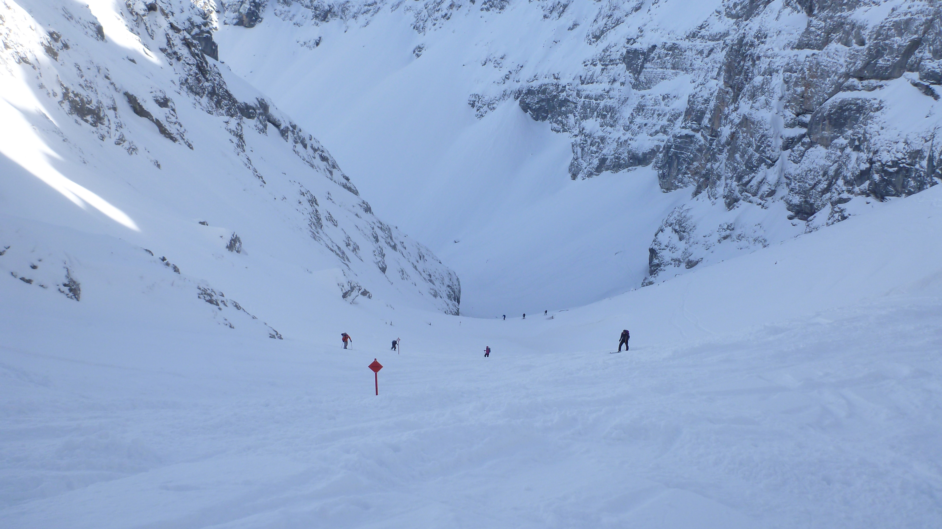 Sonstiges: Aufstieg entlang der Piste über weichen Sulzschnee, am Tiroler Stüberl vorbei zum Kessel der Waller- und Speckalm und weiter neben dem Schlepper zum Sudelfeldkopf.