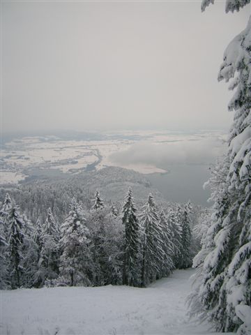 Tourenverhältnisse: Tour wie hier im Forum beschrieben; von Parkplatz Lederstube über Forstweg, morgens hier noch ausreichend Schnee von unten weg, so ab 1.200 m hochwinterlich, vor allem der letzte Anstieg zur Hochries landschaftlich traumhaft durch tiefverschneiten Wald. Die Abfahrt war nur im oberen Teil ganz gut mit schwerem Pulver, je tiefer man kam desto mehr tropfte das Wasser aus dem Bäumen. Also kein wirklicher Abfahrtsgenuß, Tour aber trotzdem sehr lohnend, dazu gleich zwei gemütliche Hütten direkt am Weg.