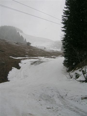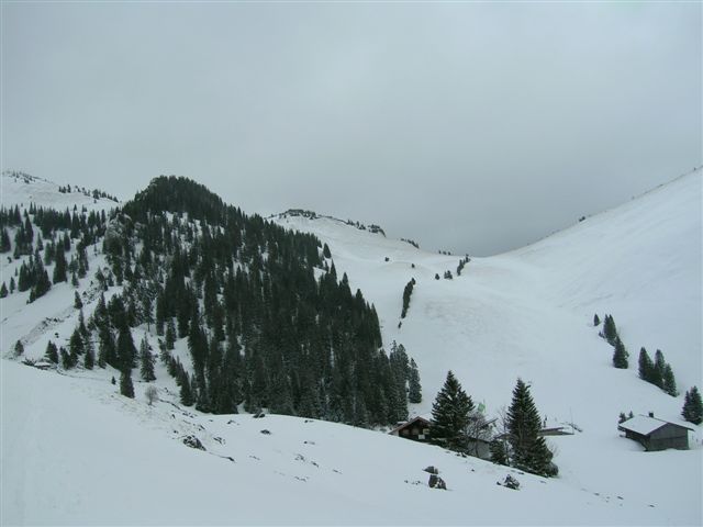 Bin von oben gesehen links an der Winkelalm vorbei runtergefahren, wird schnell schlimm im Gestrüpp mit zuwenig Schnee. Wenn man die rettende Forststrasse erreicht hat etwas besser, wobei dort eine fette Traktorspur drin ist. Zwischendrin immer mal apere Stellen zum Tragen. Eben wie im Frühjahr.