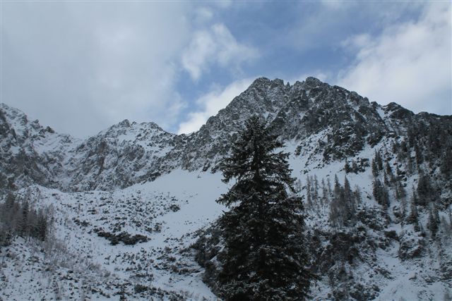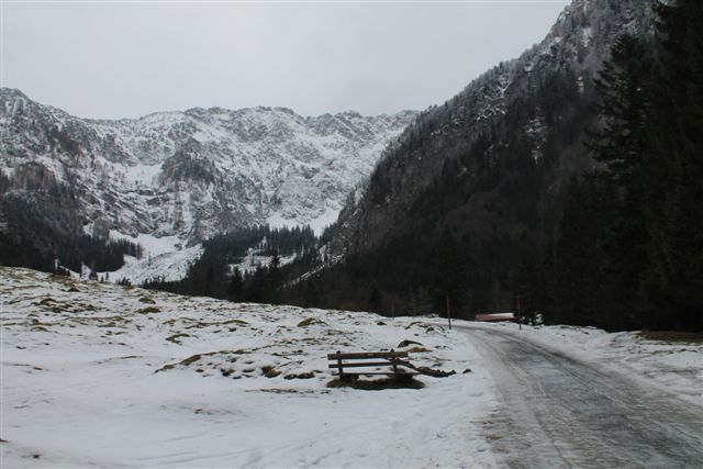 Wenn man es irgendwie von der Straße mit Blankeis auf die mit Schneeresten bedeckte Wiese geschafft hat ist die erste Hürde genommen. Dann mit einigen kurzen Tragestrecken weiter. Ab der Großpointneralm genug Schnee zum Aufstieg. Im Kar dann doch recht winterlich. Von der Winkelalm aufwärts ca. 10 bis 15 cm Pulver auf Harsch, ohne Windeinwirkung gefallen.