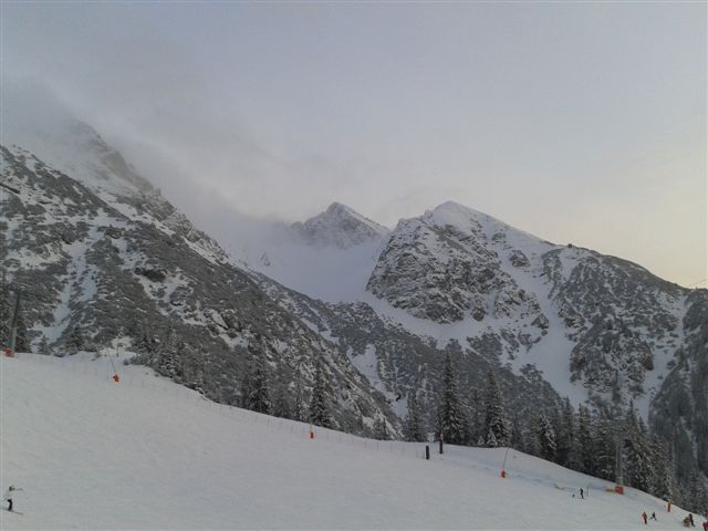 Auf der Suche nach Schnee und der Möglichkeit einer akzeptablen Abfahrt in Seefeld gelandet. Nachdem es die ganze Fahrt über geschüttet hat dort tatsächlich Schneefall, sogar die Strasse schneebedeckt, kennt man ja fast nicht mehr.