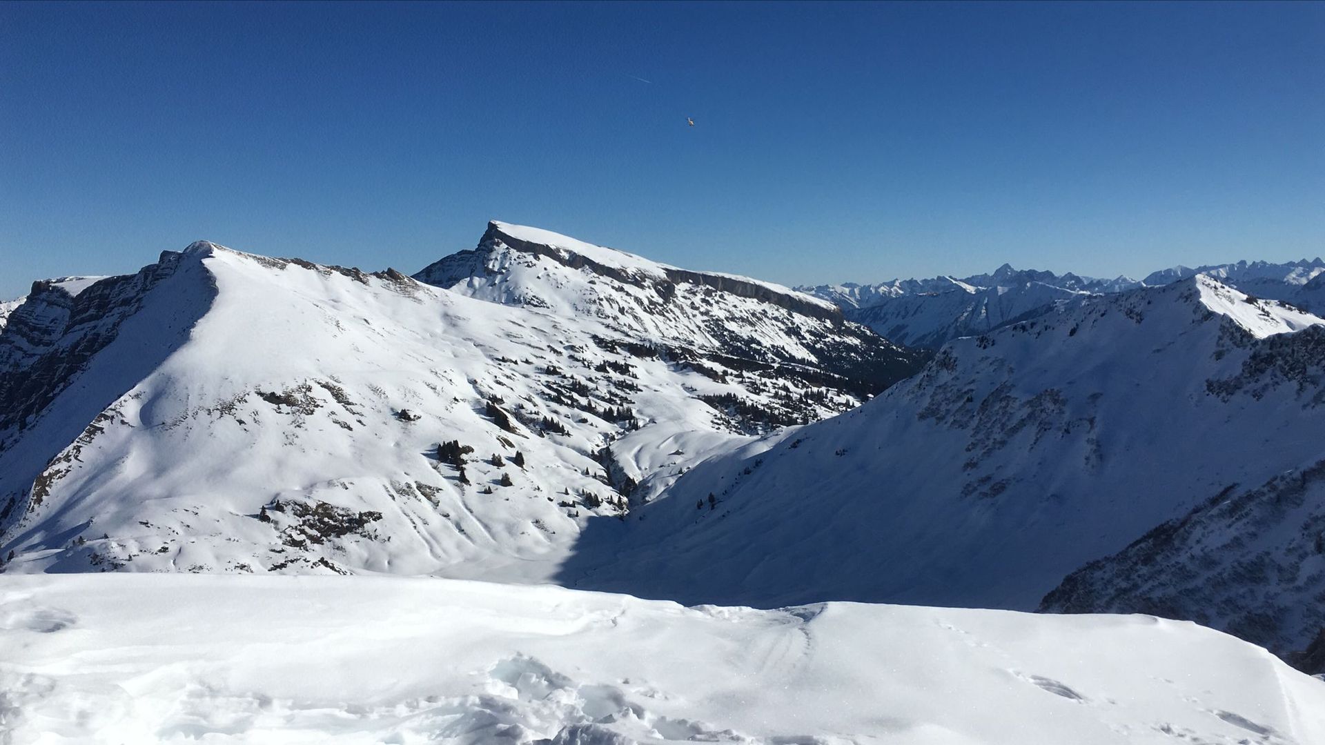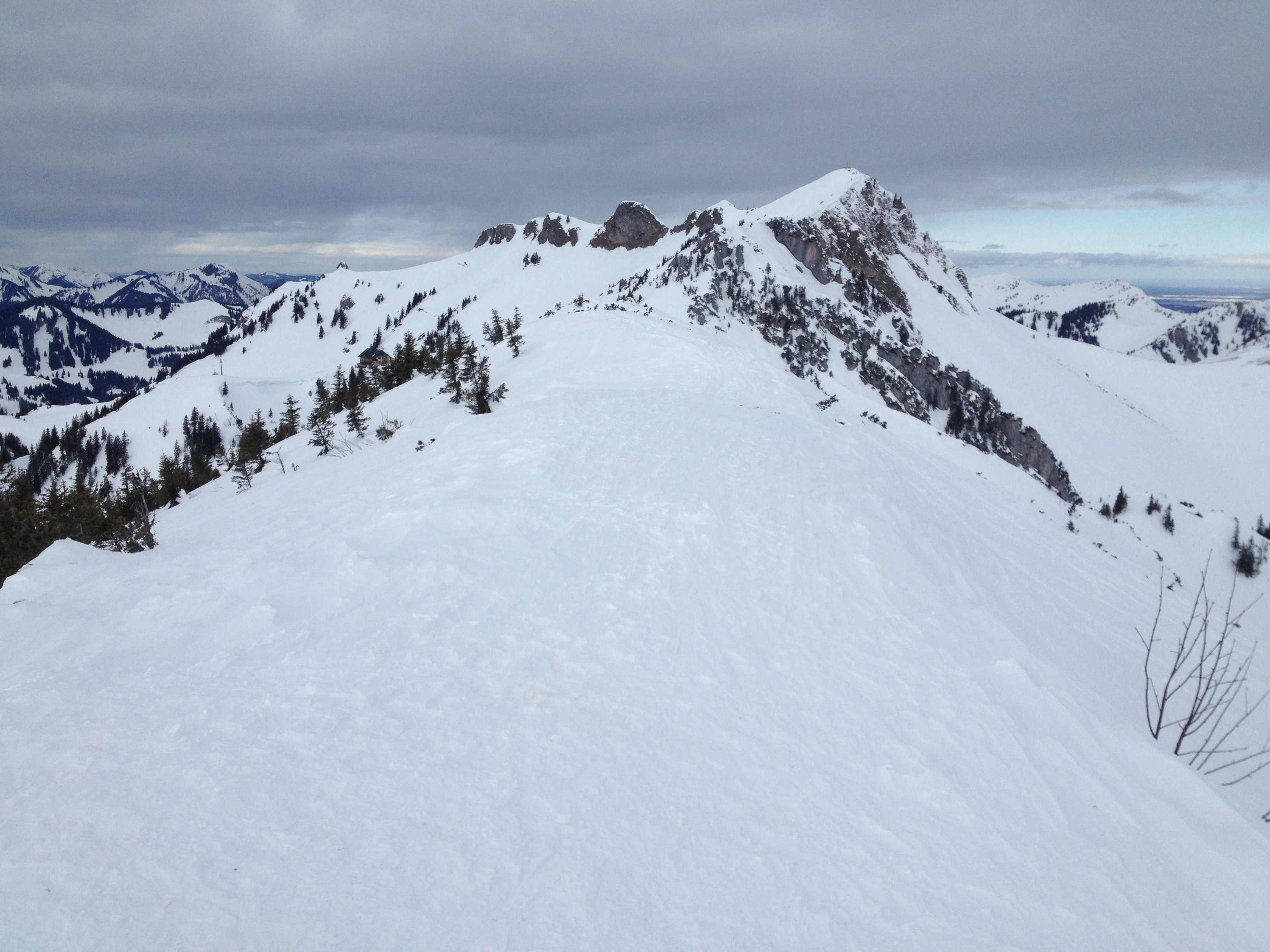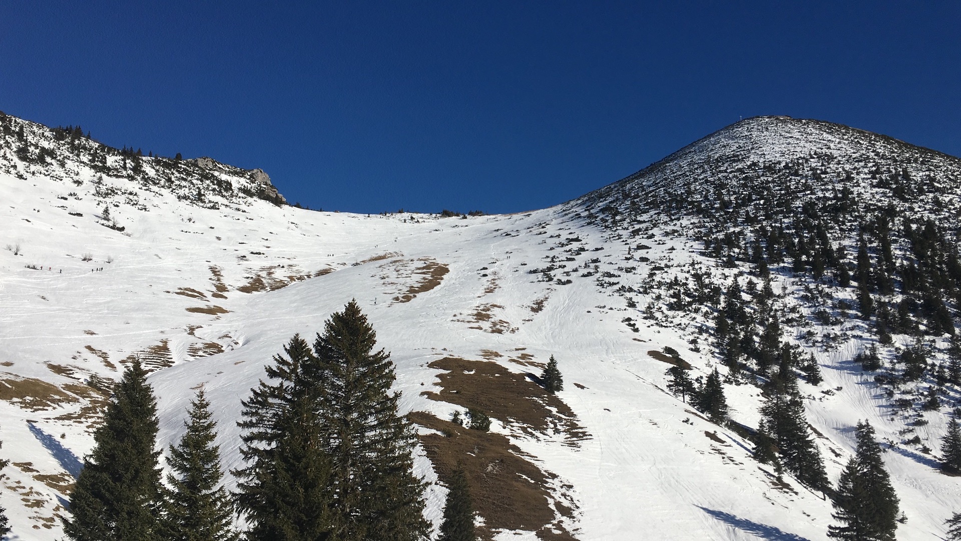 Bei der kurzen direkten Pulverabfahrt vom Höllkopf zum Hölltor ist Steinkontakt nicht ausgeschlossen. Hier gibt es auch eine Trampelspur.