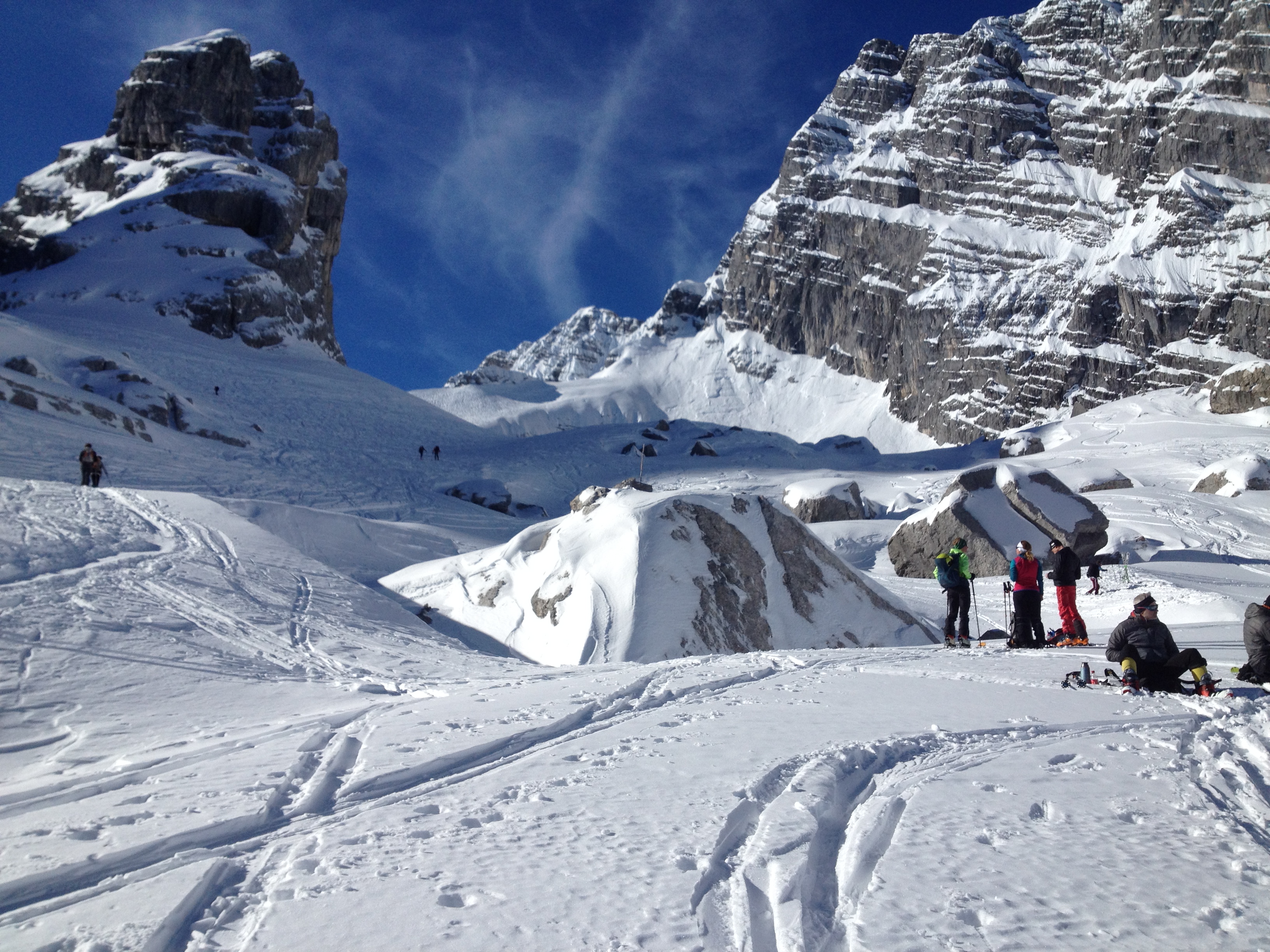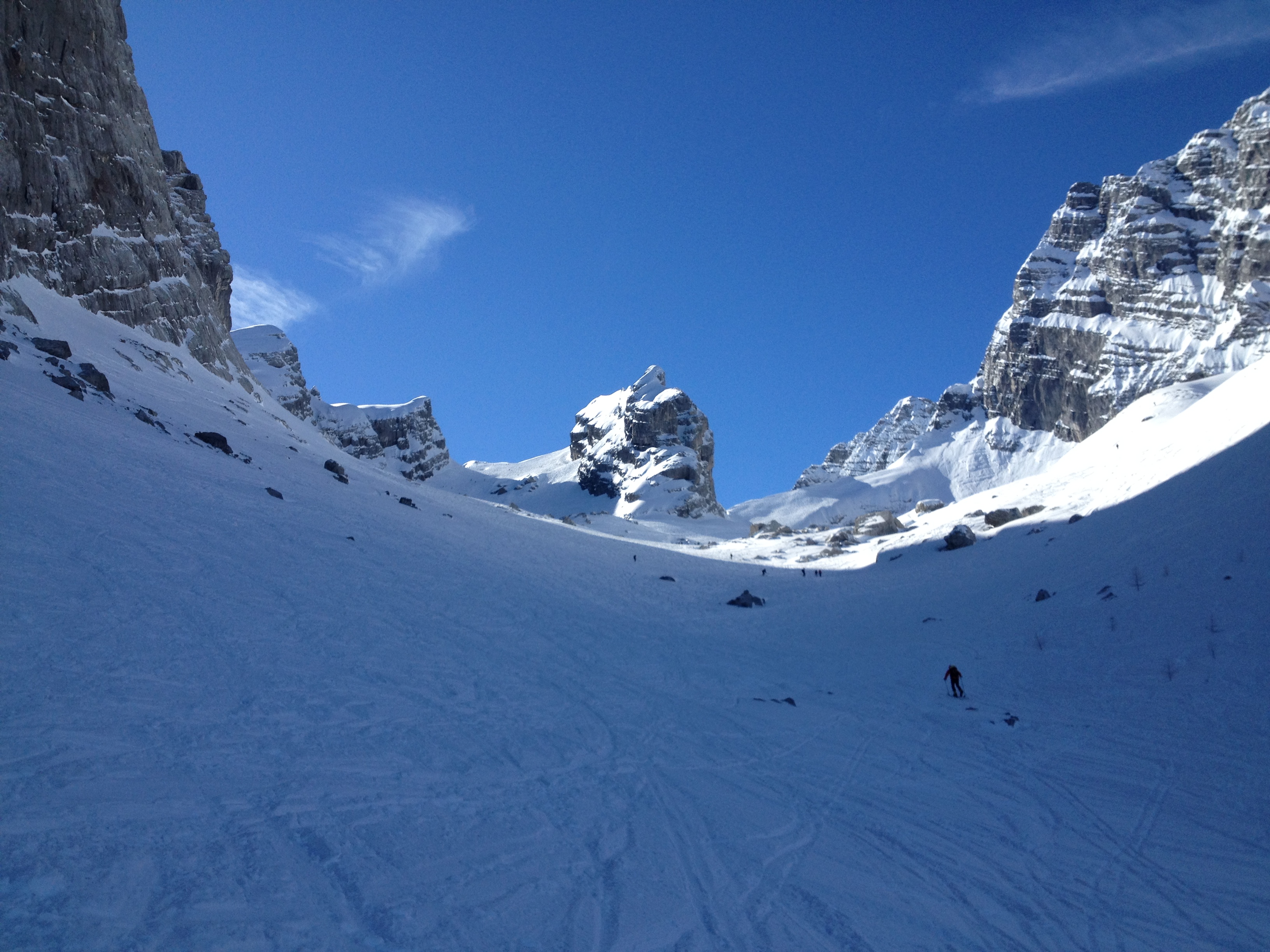 Abfahrt in die Hölle um 10 Uhr sehr schön aufgefirnt. Keine Lawinen-Boller stören die Abfahrt.