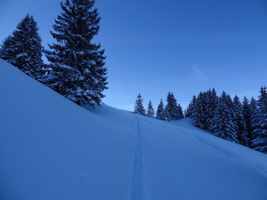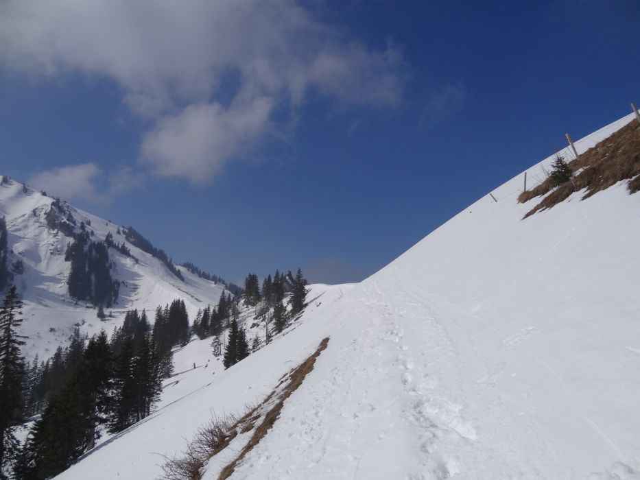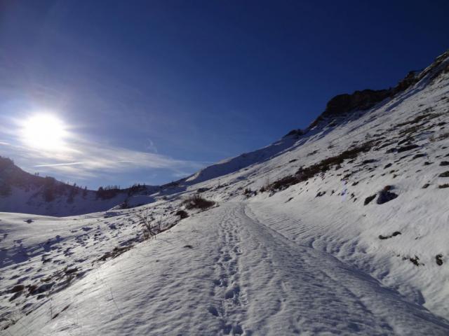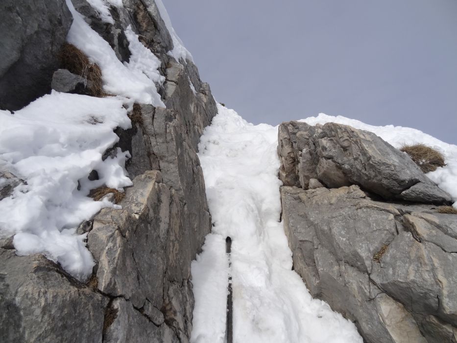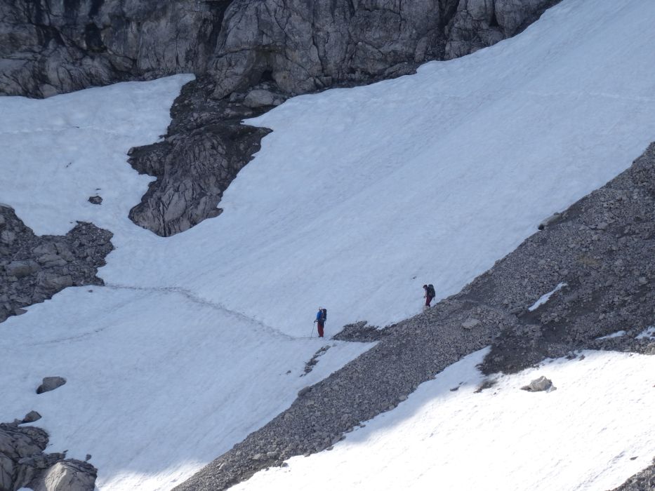 Gefahreneinschätzung: Ohne Probleme machbar. Grödel und Gamaschen unnötig