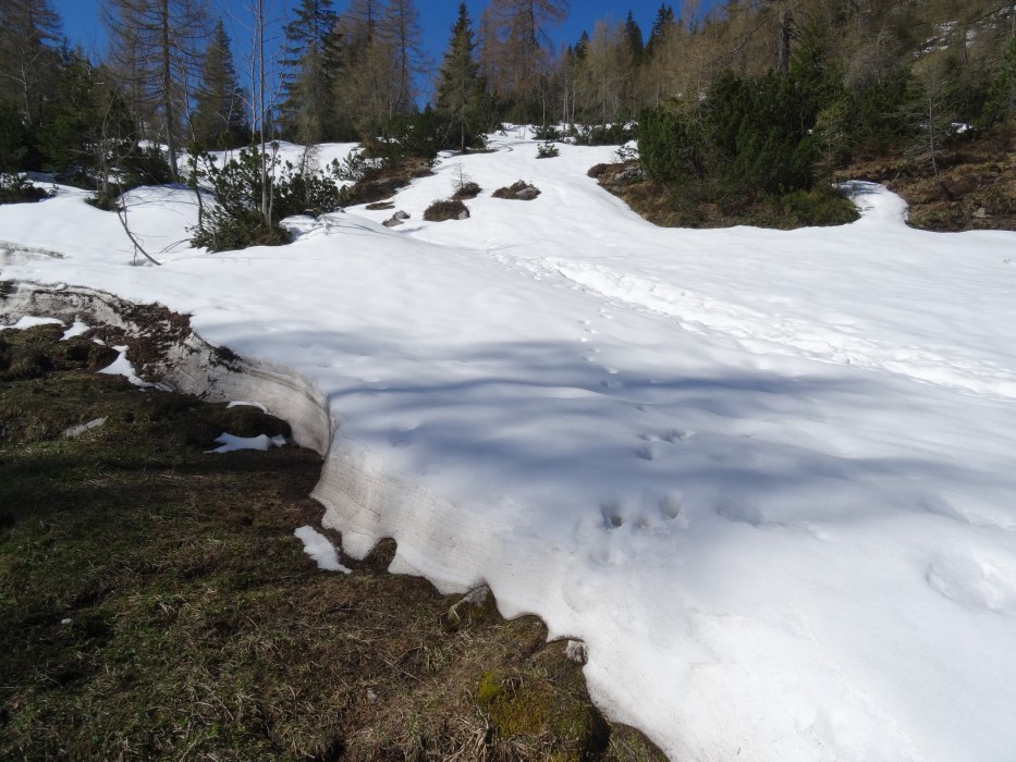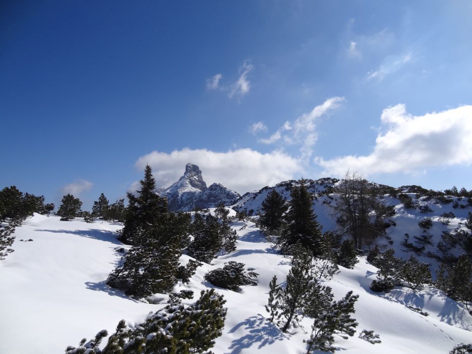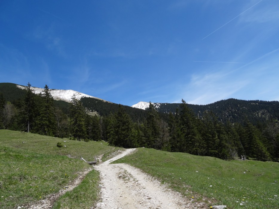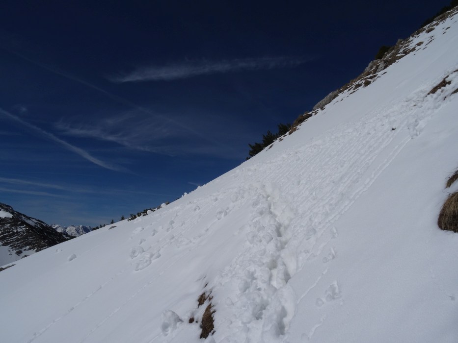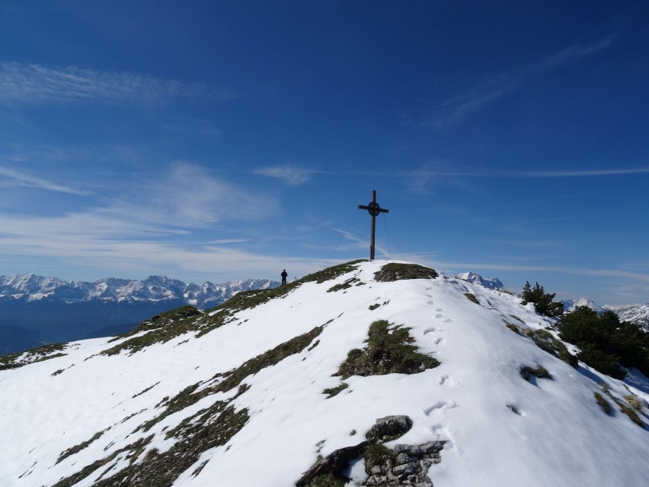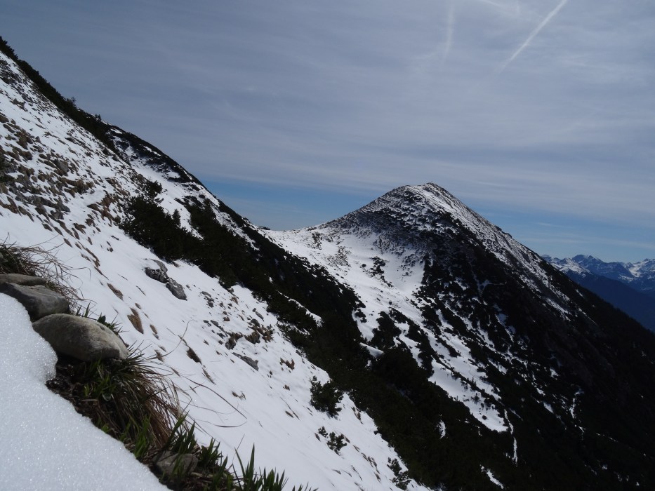 Tourenverhältnisse: Fußweg zur Seekaralm wg. Baumfällarbeiten gesperrt. Einige harmlose Schneefelder am Grat. Aufstieg zur Seebergspitze etwas unangenehm wegen einiger Schneefelder und ausgesetzter Lage