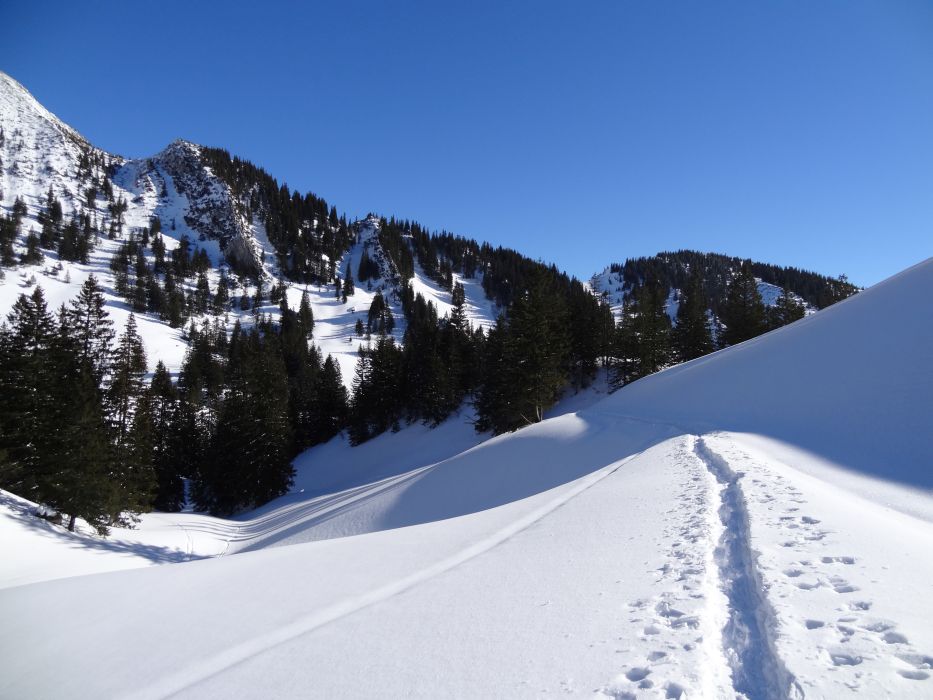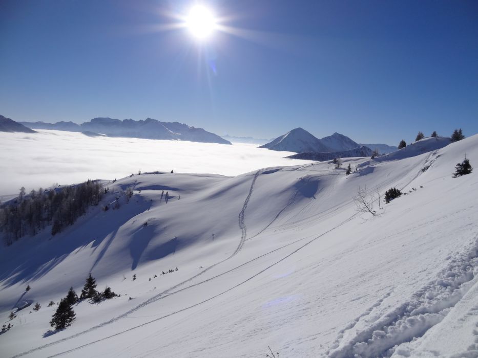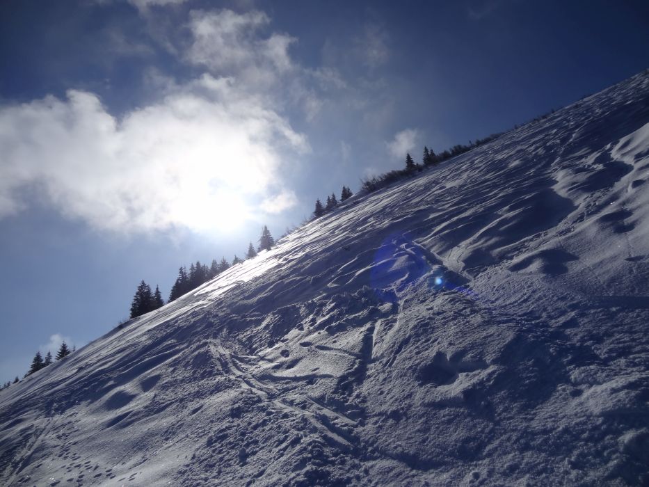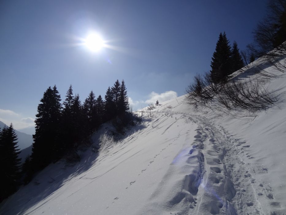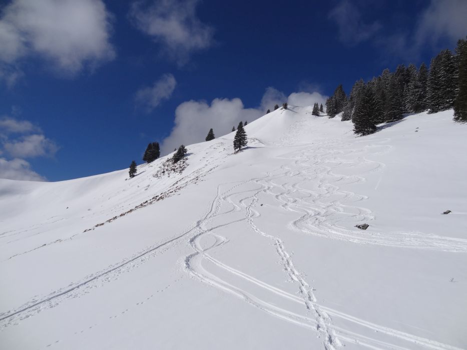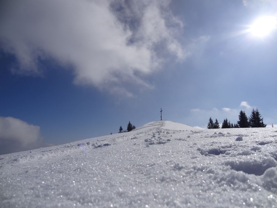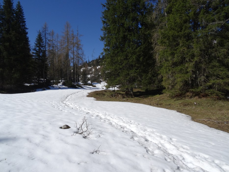 Tourenverhältnisse: Fußweg zur Seekaralm wg. Baumfällarbeiten gesperrt. Einige harmlose Schneefelder am Grat. Aufstieg zur Seebergspitze etwas unangenehm wegen einiger Schneefelder und ausgesetzter Lage