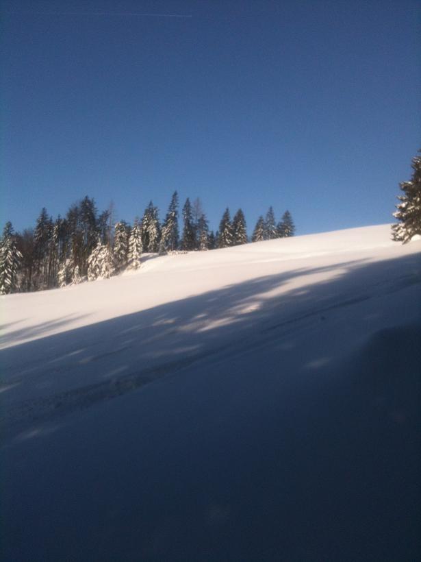 Tourenverhältnisse: am Parkplaz kein Schnee, erst nach 15-20 min. mit Skiern auf der Schulter hinauf der Forststr. Richtung Riesenhütte dann gehts momentan erst mit den Skiern los. Schnee wird schnell mehr und bald auch noch richtig guter Pulver.