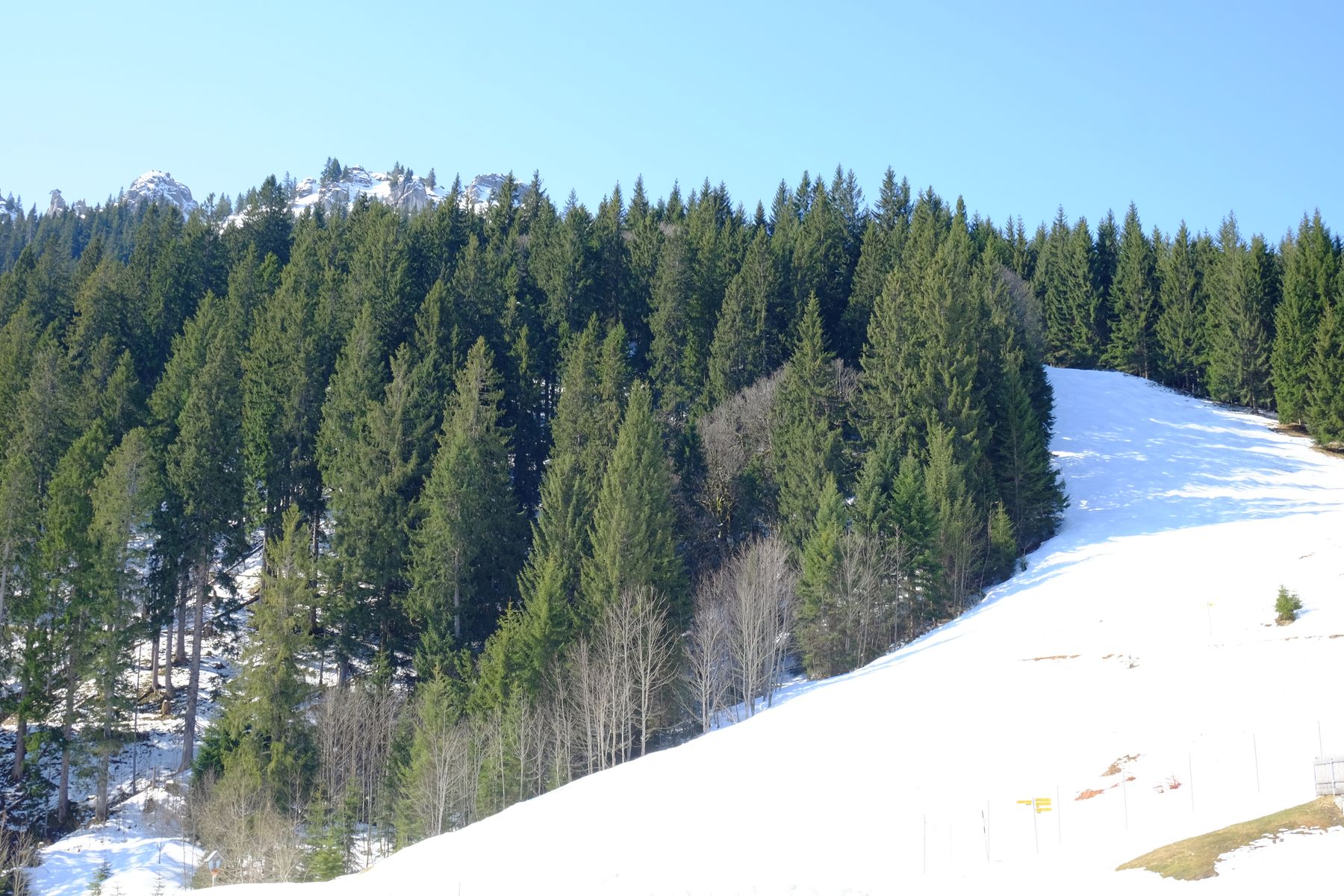 Eigentlich wollten wir was anderes machen, waren aber zu spät dran. Also Roßkopf über Dreitannenabfahrt( Ab Bergwachthütte Schnee, zwei kurze Tragestücke im Wald, sonst noch durchgehend Schnee.