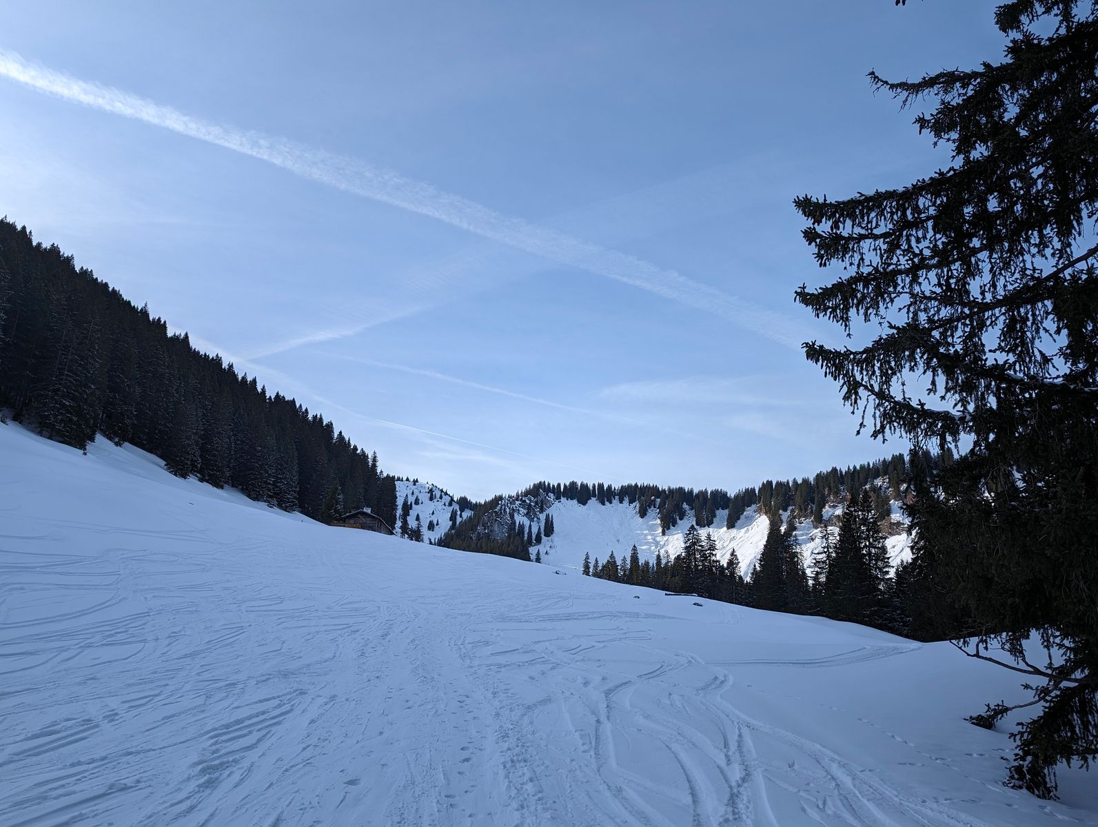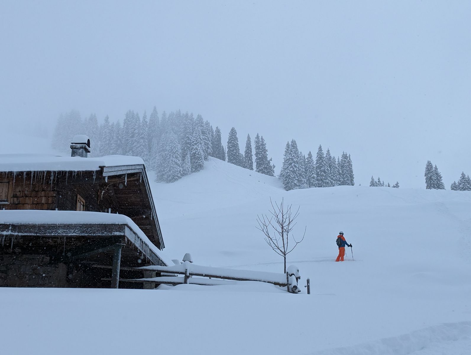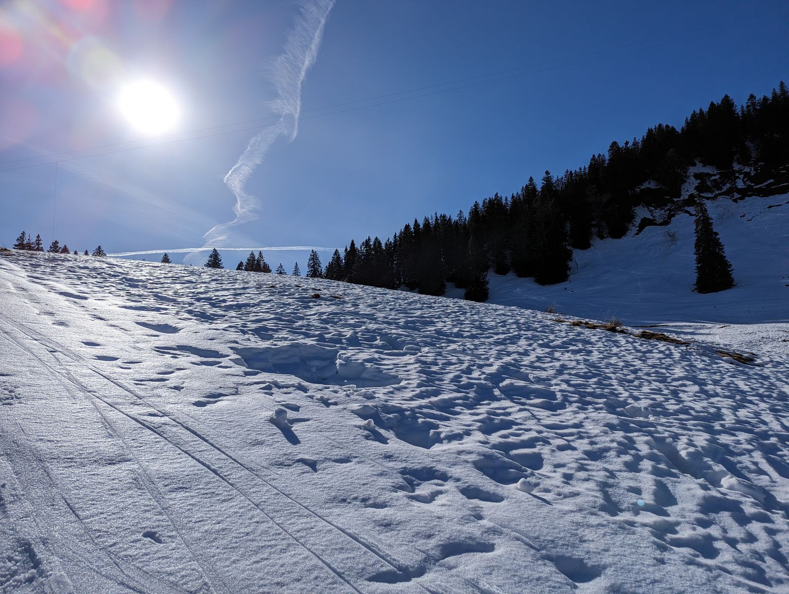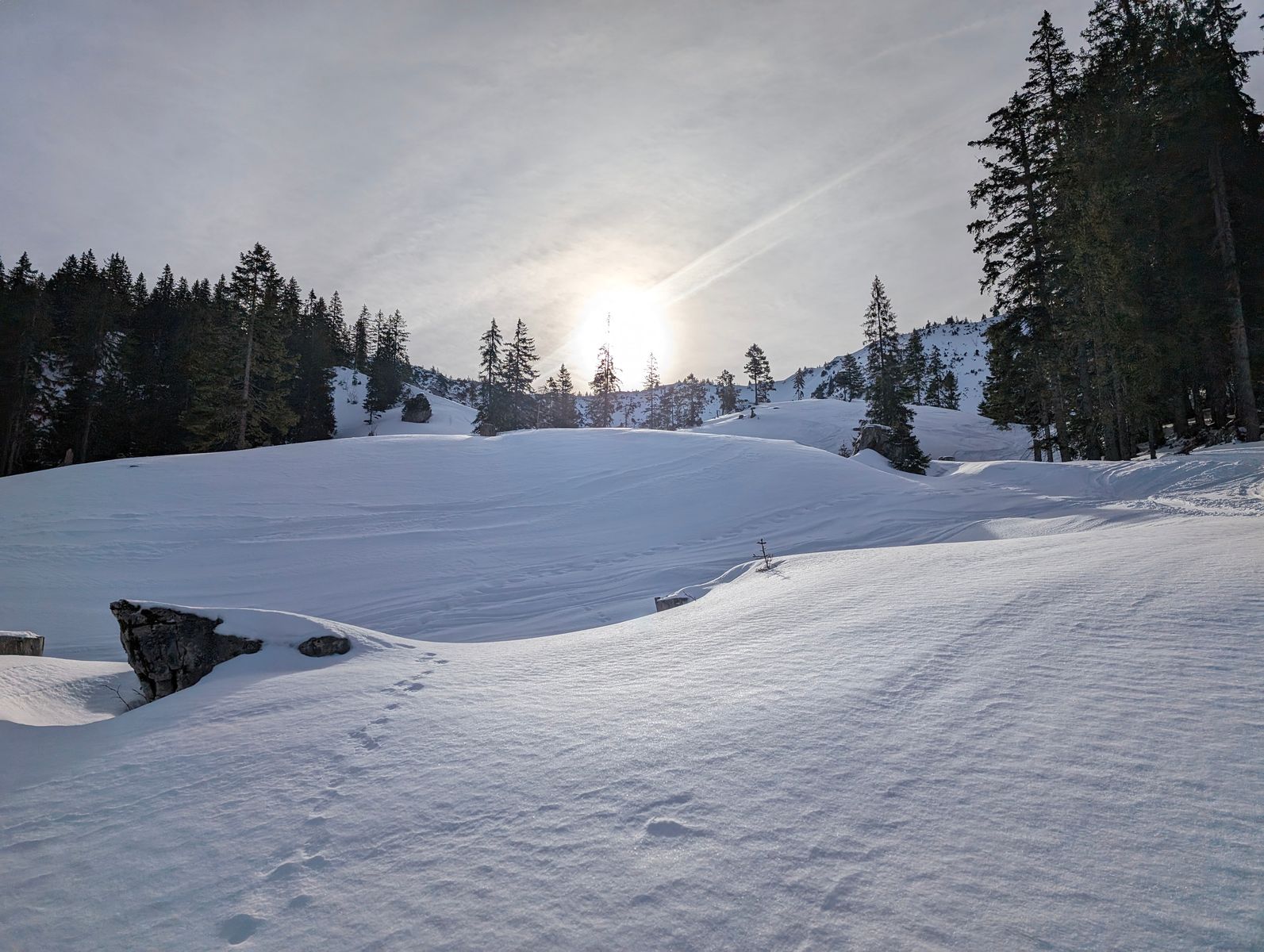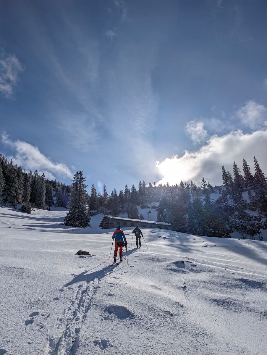 Auf der Suche nach Touren abseits der Skipiste kam einerseits der westlich ausgerichtete Hang an der Freudenreich Alm ins Spiel, andererseits hatte es ganze 5cm Neuschnee gegeben... 😆