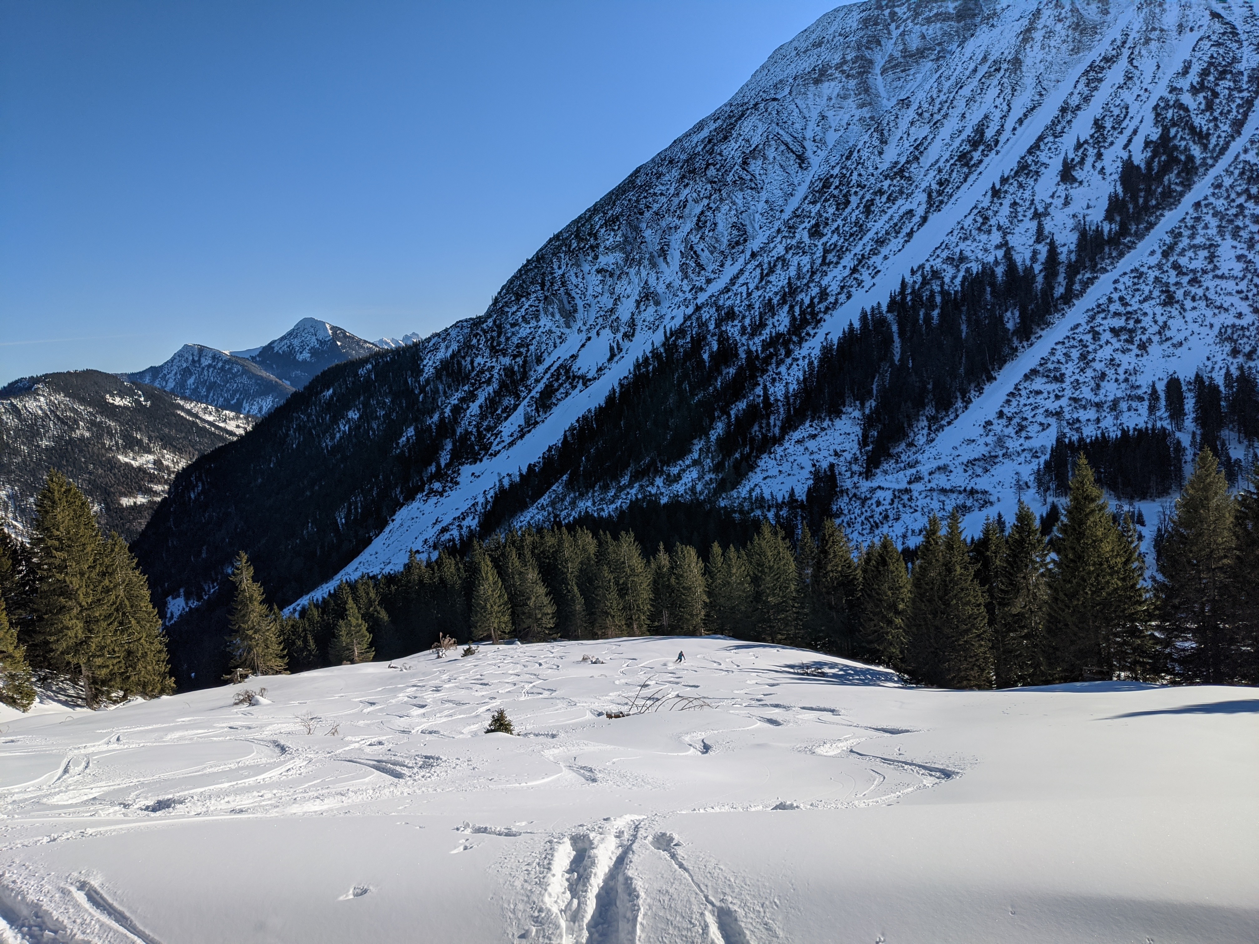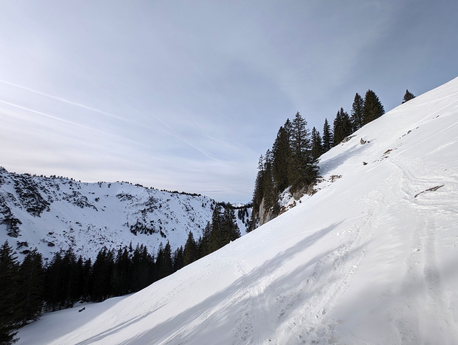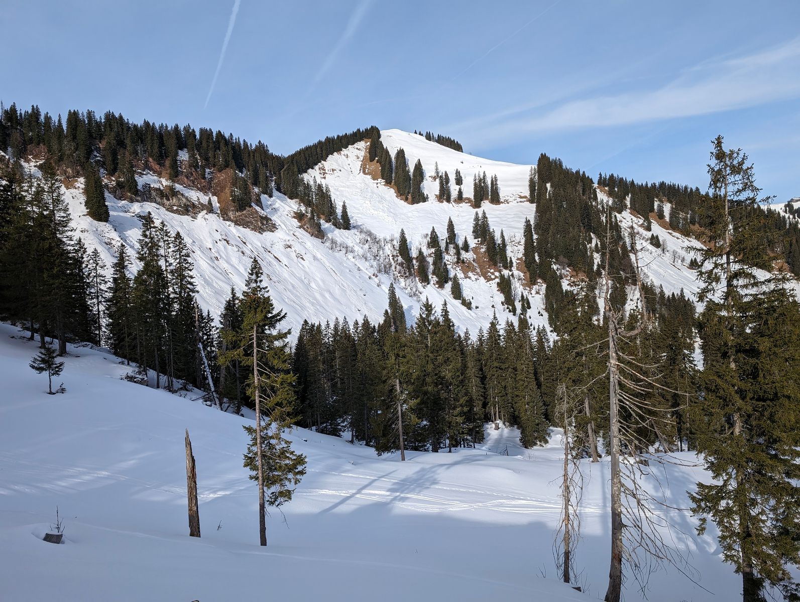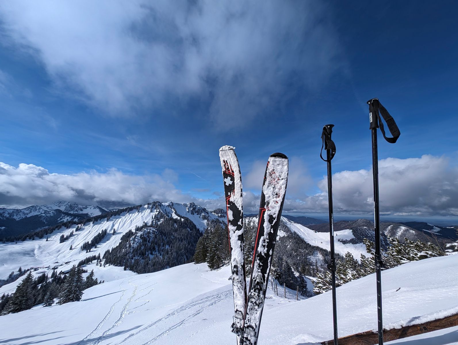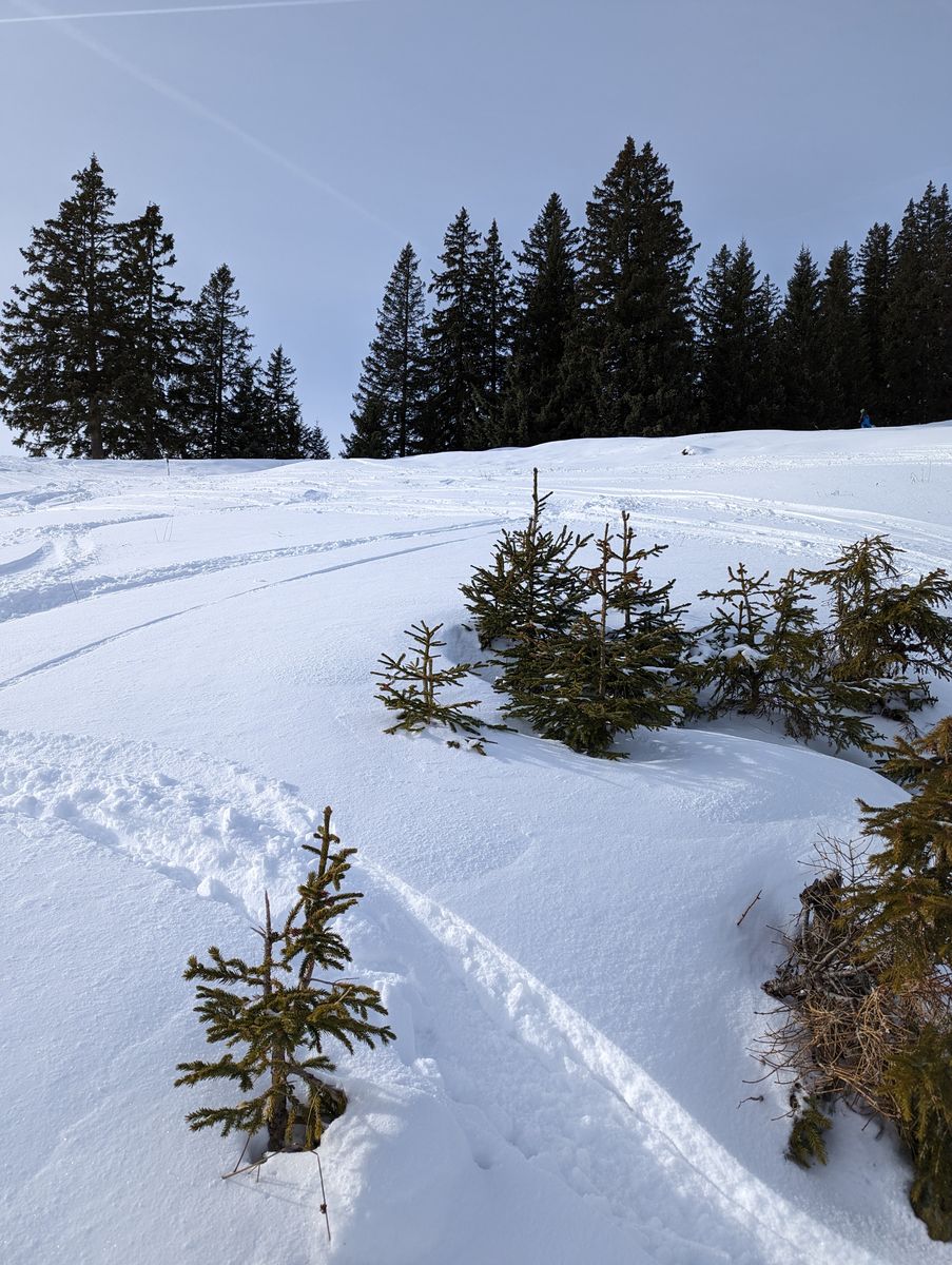 Auf der Suche nach Touren abseits der Skipiste kam einerseits der westlich ausgerichtete Hang an der Freudenreich Alm ins Spiel, andererseits hatte es ganze 5cm Neuschnee gegeben... 😆