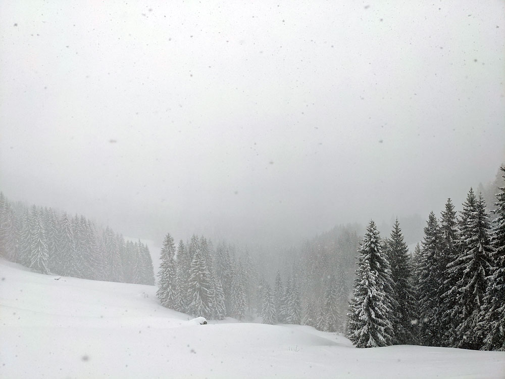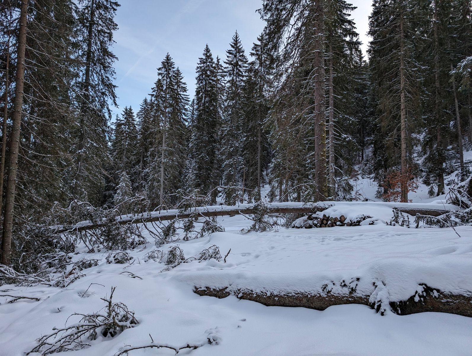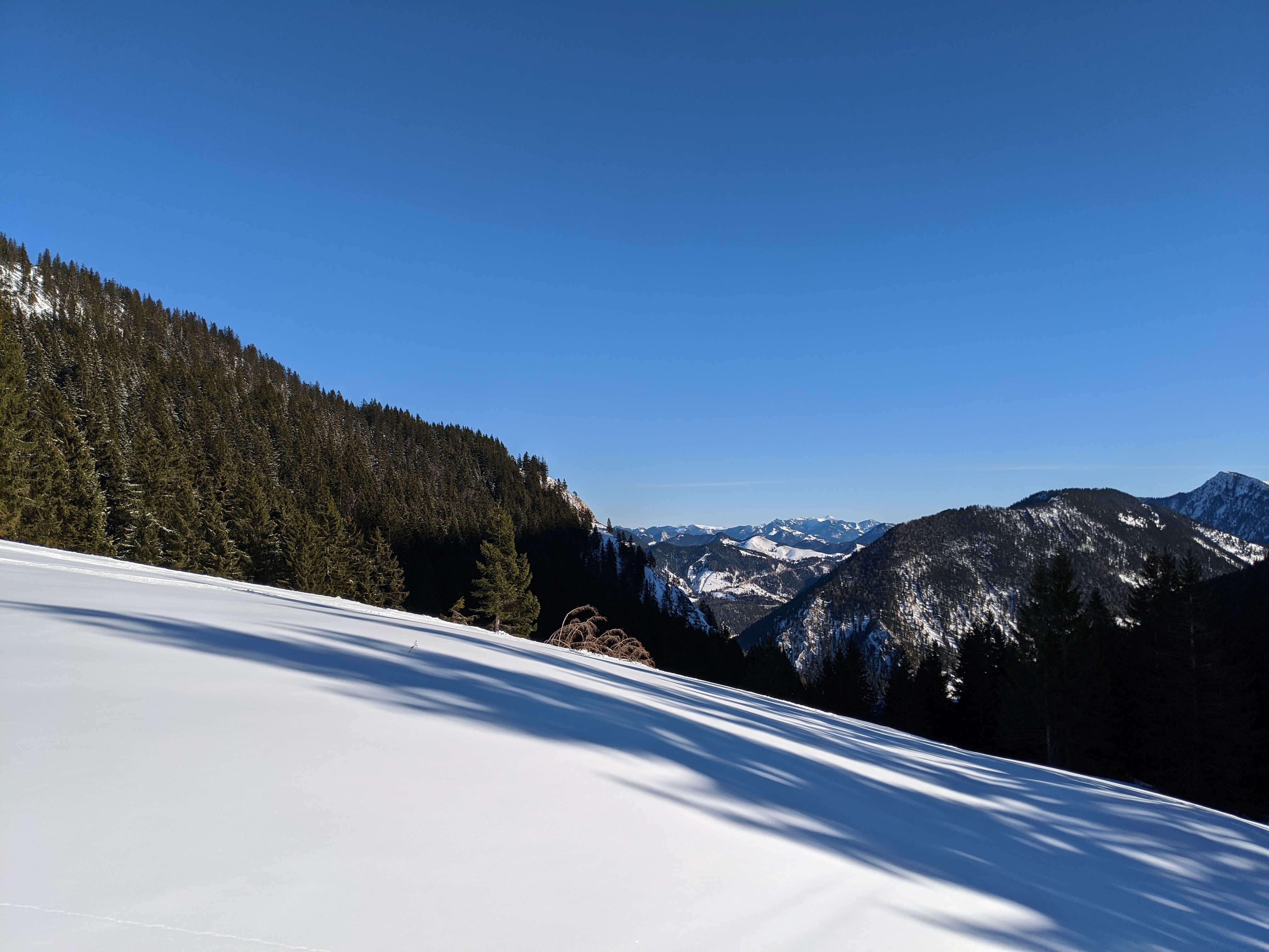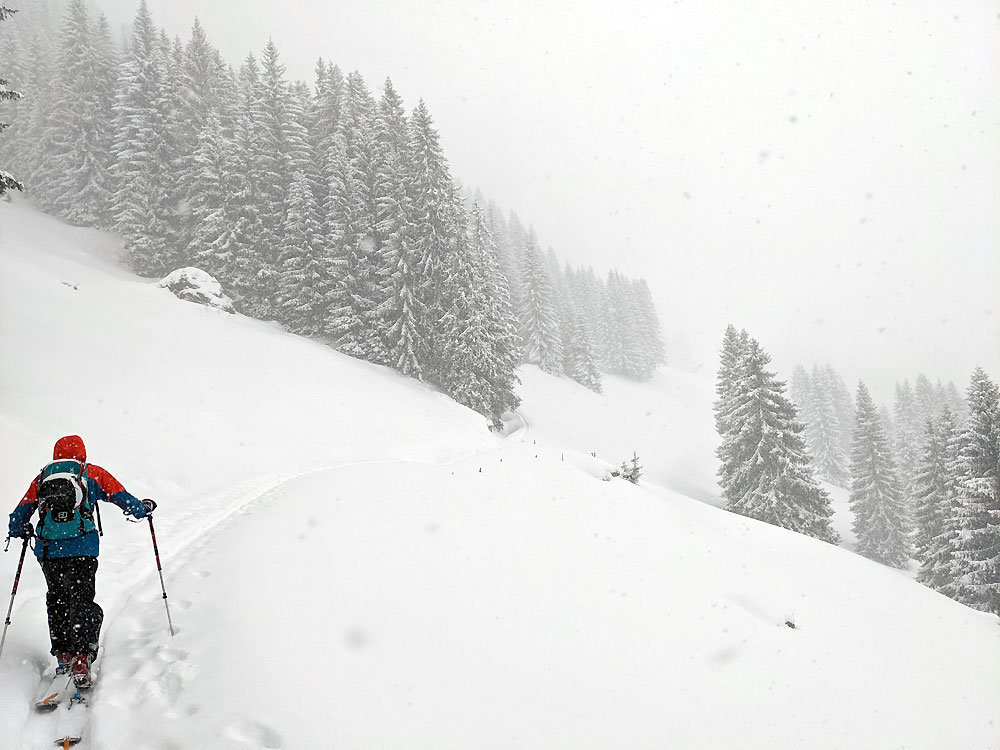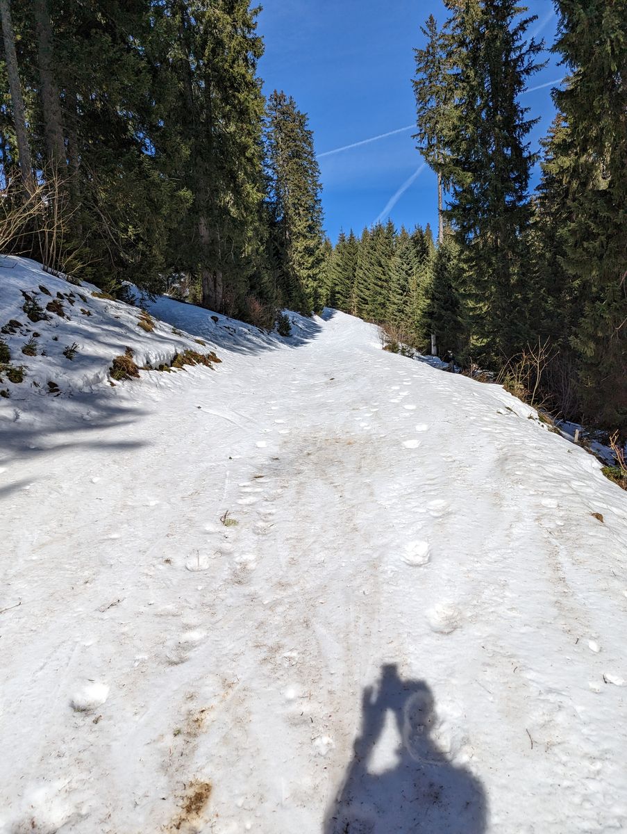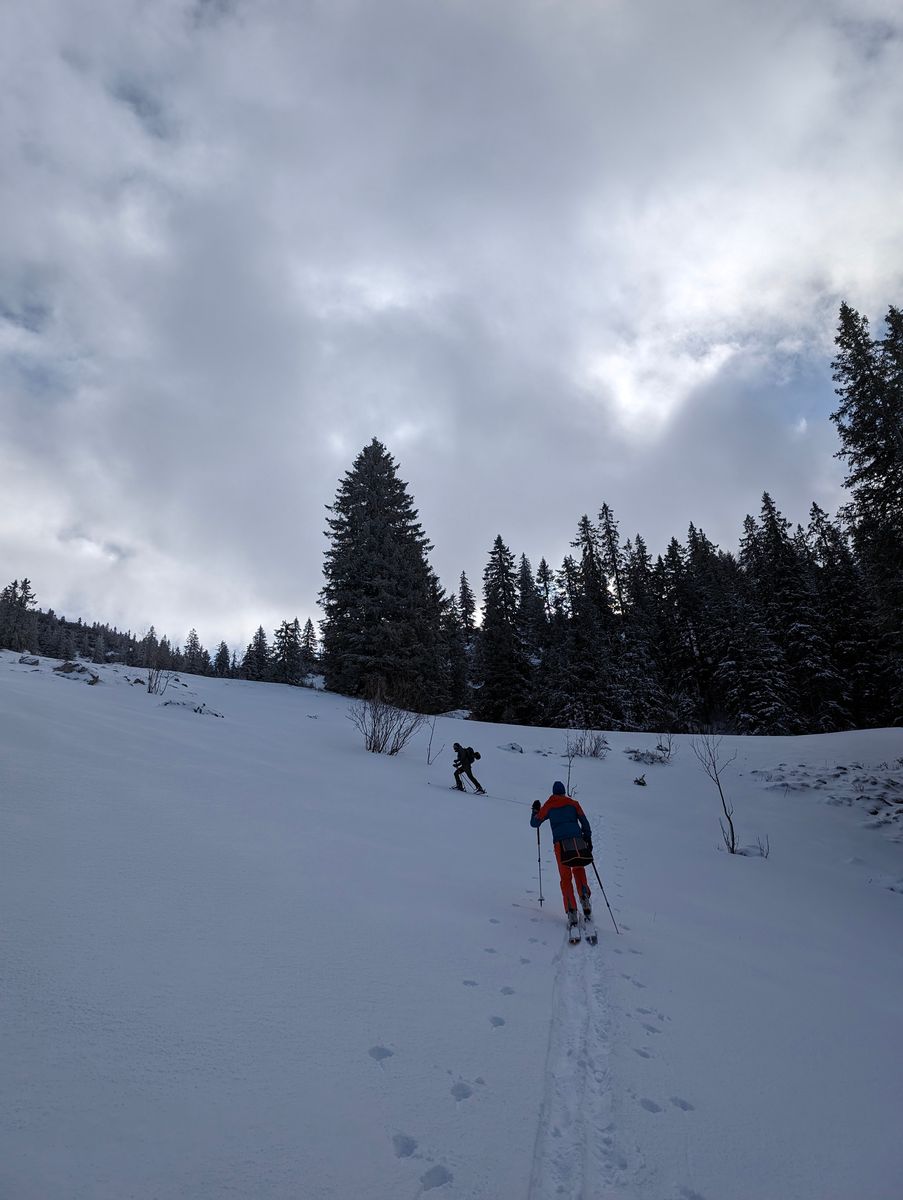 Auf der Suche nach Touren abseits der Skipiste kam einerseits der westlich ausgerichtete Hang an der Freudenreich Alm ins Spiel, andererseits hatte es ganze 5cm Neuschnee gegeben... 😆