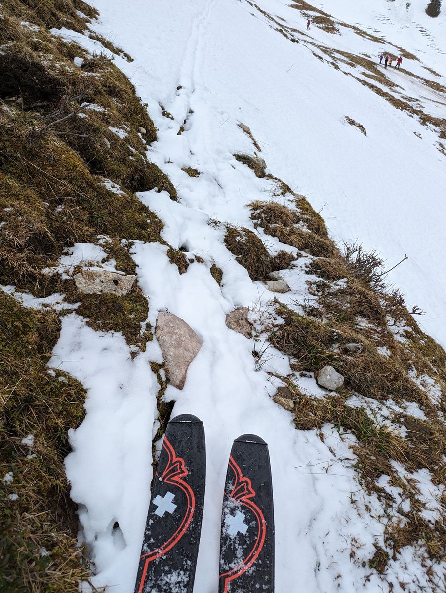 Obere Hälfte sehr gut, sogar leicht firnig. Unten sehr wenig Schnee, leicht Kratzer im Ski.