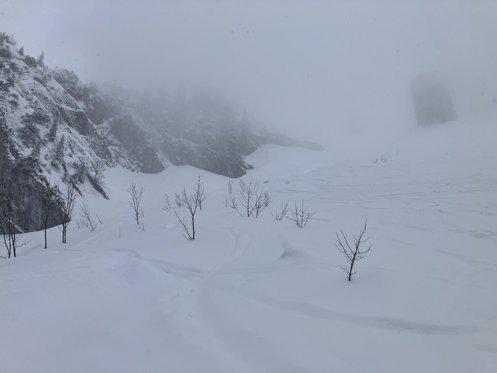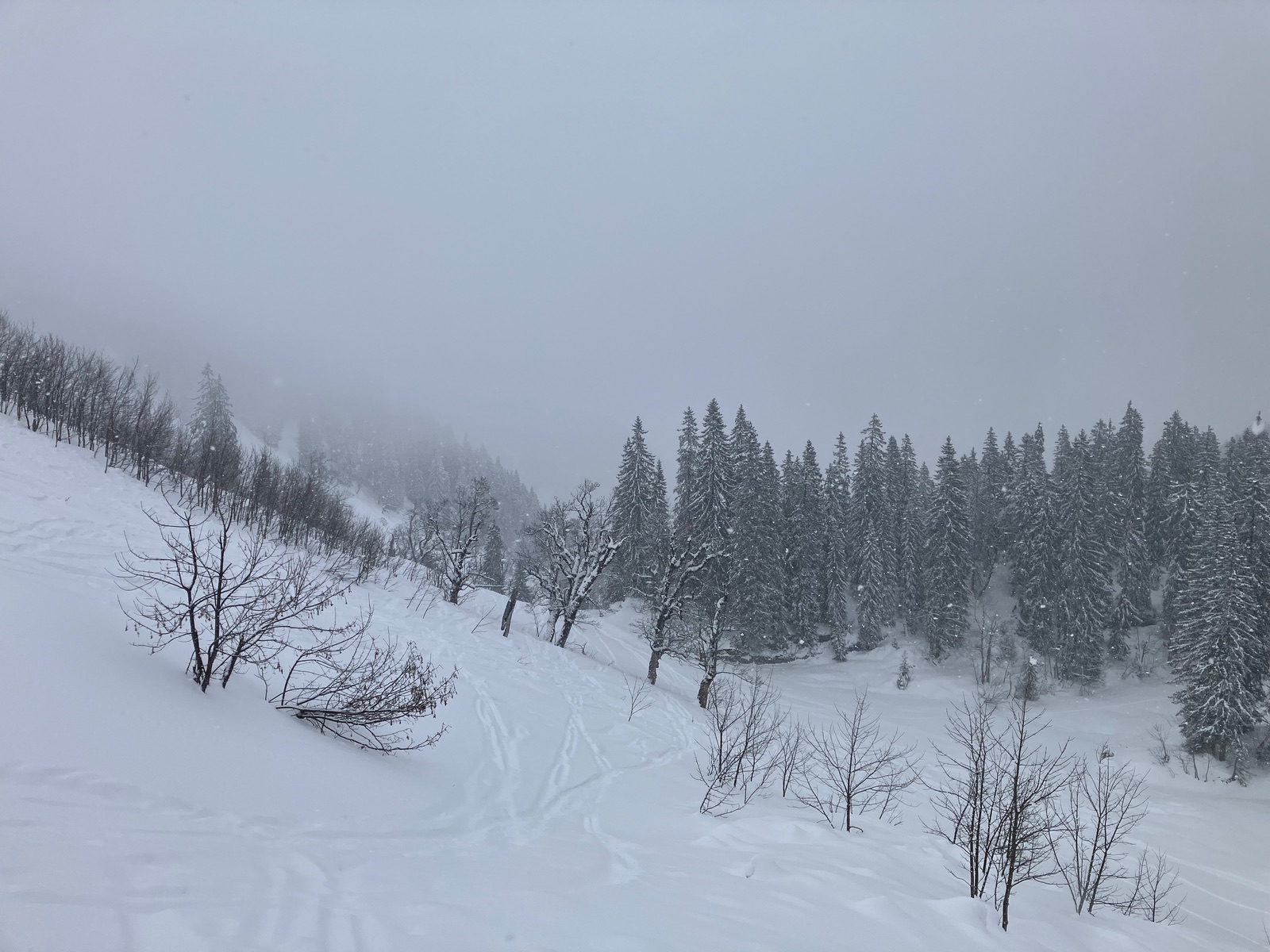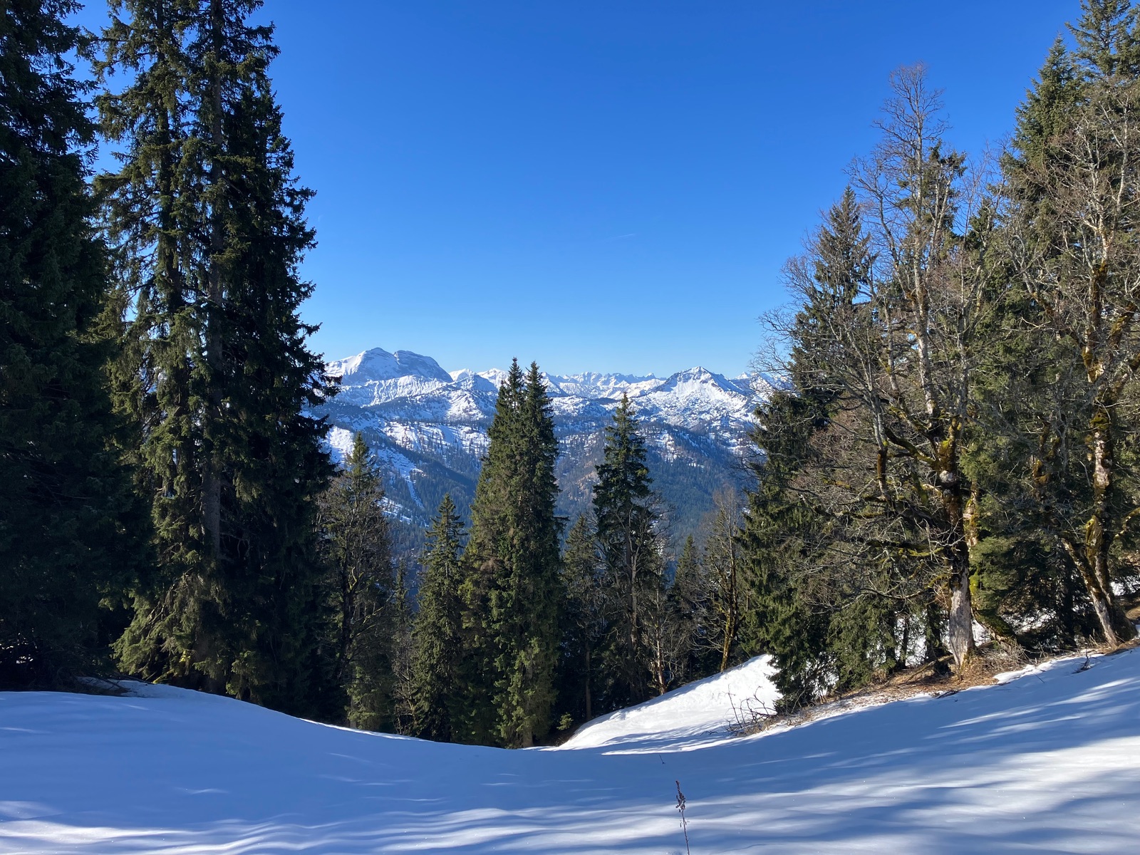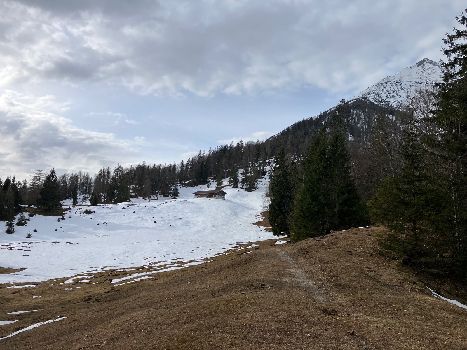 Start leider erst kurz vor 7:30 Uhr etwas vor dem Berninapass nach kalter und klarer Nacht. War dennoch zu spät, was auch der Tatsache geschuldet ist, dass ich die Tour bei den derzeitigen Verhältnissen unterschätzt habe. Zunächst muss man - noch durchgehend schneebedeckt - bis zum Beginn der eigentlichen Tour recht flach ansteigen (über den zugefrorenen Lago Bianco würde ich um diese Jahreszeit nicht gehen). Dann geht es bis zu einem im Gelände gut sichtbaren Sattel auf ca. 2.500 m. Ab dort gibt es drei Aufstiegsmöglichkeiten: (1) Direkt zur steilen Gletscherzunge - so ist es beim Skitourenguru eingetragen und so bin ich gegangen, (2) rechts haltend über ein System von Rippen - wohl gerade noch ausreichend Schnee und (3) links ausholend ein weiter Bogen in Richtung Forcula dal Caral. Variante (1) wird mindestens so steil, wie es von unten aussieht und erwies sich als mit Skiern (+ den obligatorischen Harscheisen) angesichts von Steilheit und kurz Blankeis ziemlich hart. Man kann das machen, aber dann empfehle ich unbedingt gleich unten die Steigeisen anzuziehen und erst wieder oben am Gletscher, wo dieser flach wird, diese auszuziehen. Sinnvoll sind auch Stahlsteigeisen, nicht nur Leichtsteigeisen - wie gesagt hatte es am Sonntag in diesem schneearmen Winter eine kurze Blankeisstelle, die gerade noch so zu umgehen war. Variante (2) haben zwei nachfolgende Tourengeher gemacht - ging wohl mit Skiern, aber mit längerer Querung oberhalb eines Felswandls. Variante (3) war meine Abfahrt und ist die einzige entspannte Variante, aber deutlich länger - wenn ich das vorher gewusst hätte, wäre meine Entscheidung für den Aufstieg dennoch so ausgefallen.