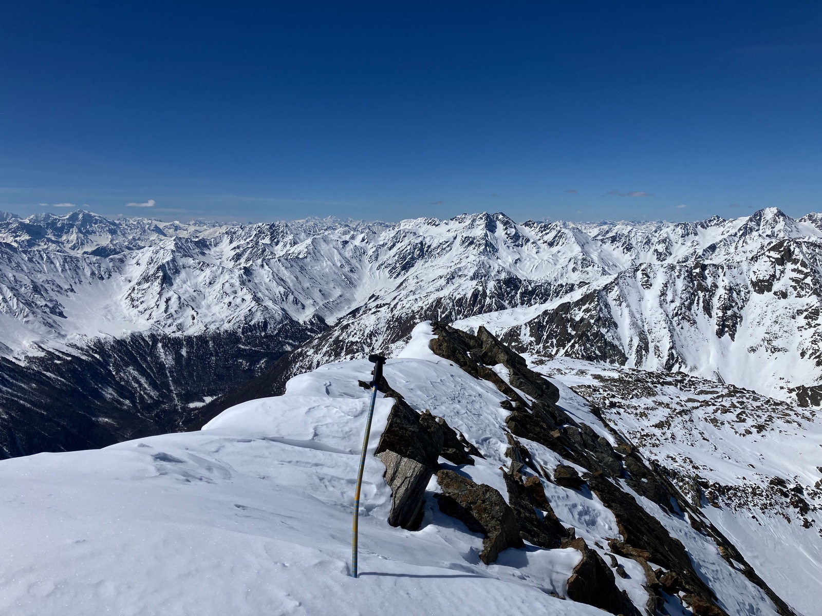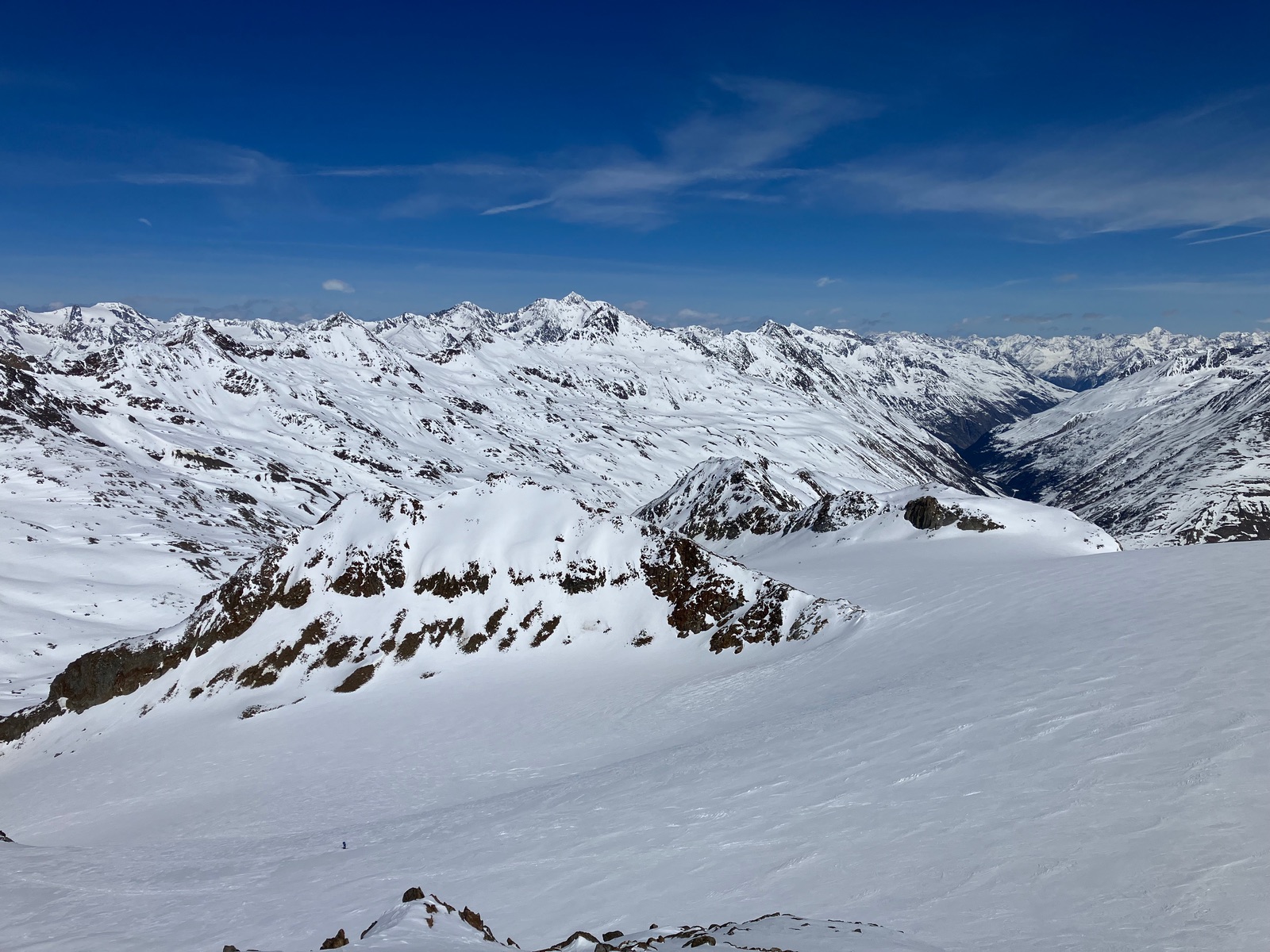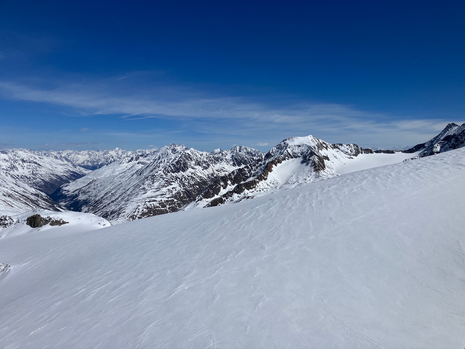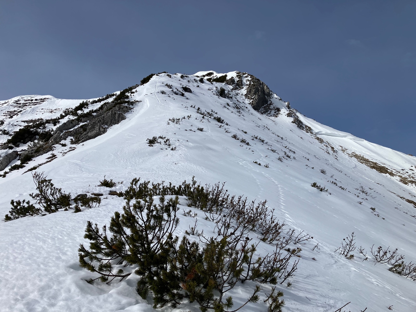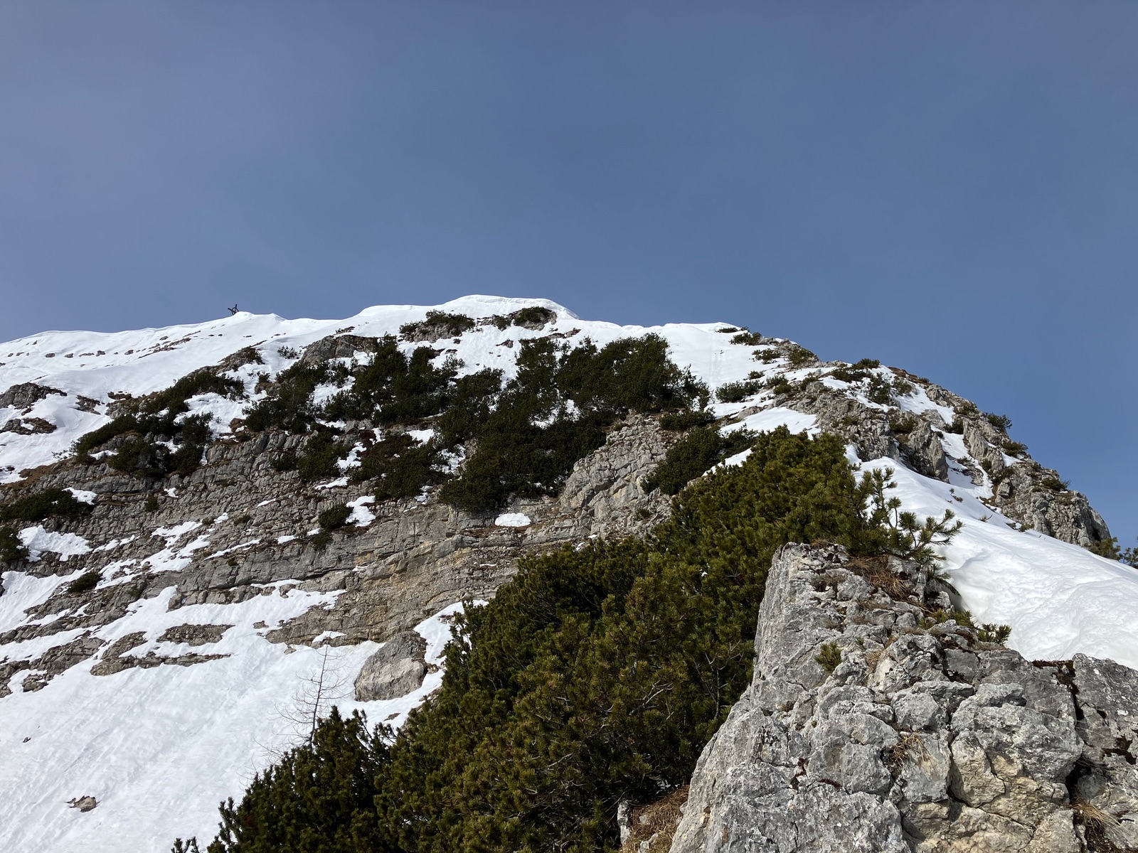 Insgesamt haben ich die Tour bei den derzeitigen Bedingungen als deutlich strenger empfunden, als ich das nach vereinzelten Internetberichten angenommen hätte. Auch hat so die Zeitangabe beim Skitourenguru für mich nicht gepasst - ich denke, das ist gerechnet, wenn man (fast) alles mit Skiern gehen kann. Für die Tour ist m.E. die volle alpinistische Ausrüstung (Pickel, Steigeisen, Harscheisen, ggf. Gletscherzeug) sinnvoll. Das Wandl selber ist vermutlich nur mit Körpersicherung absicherbar.