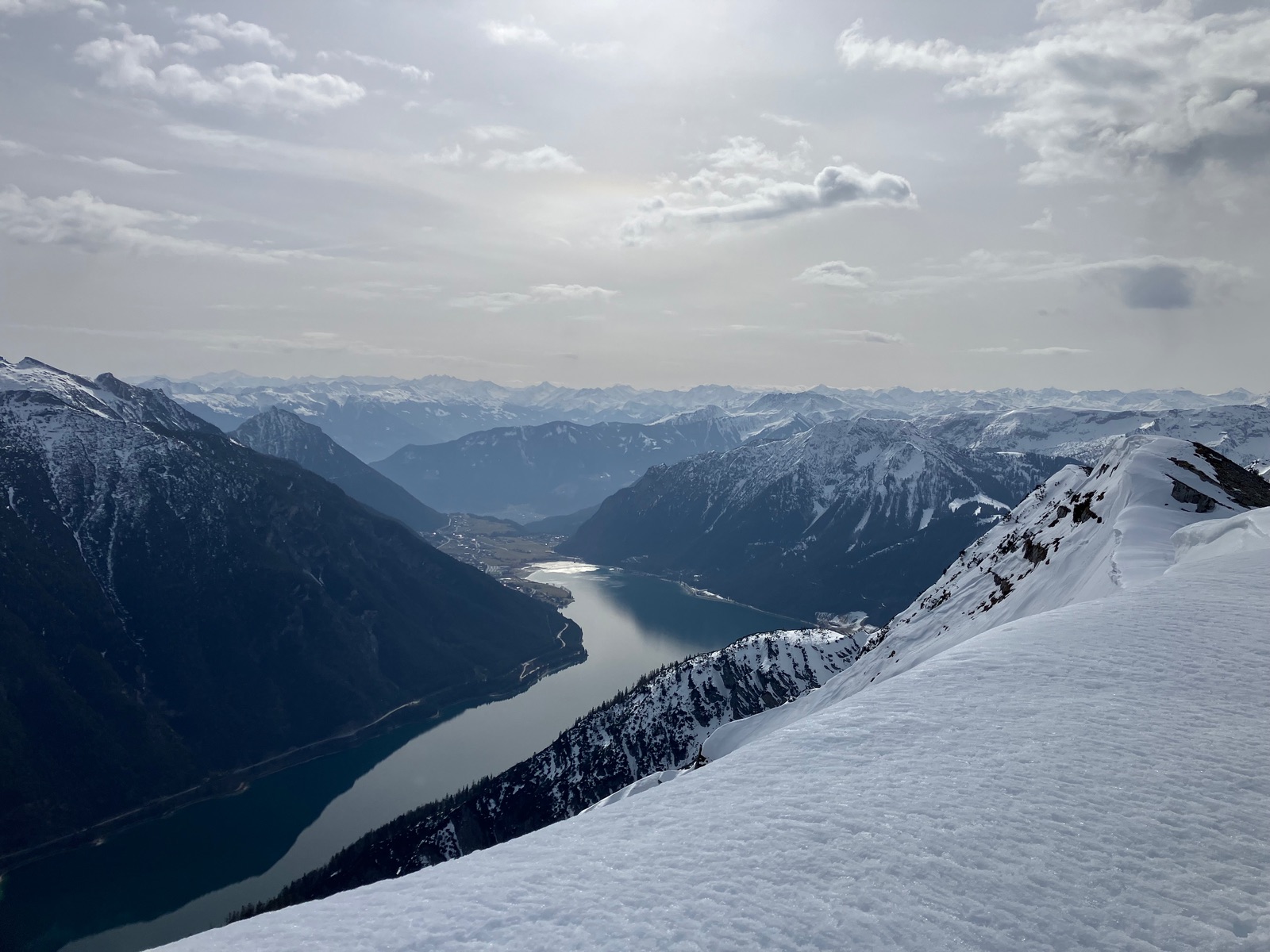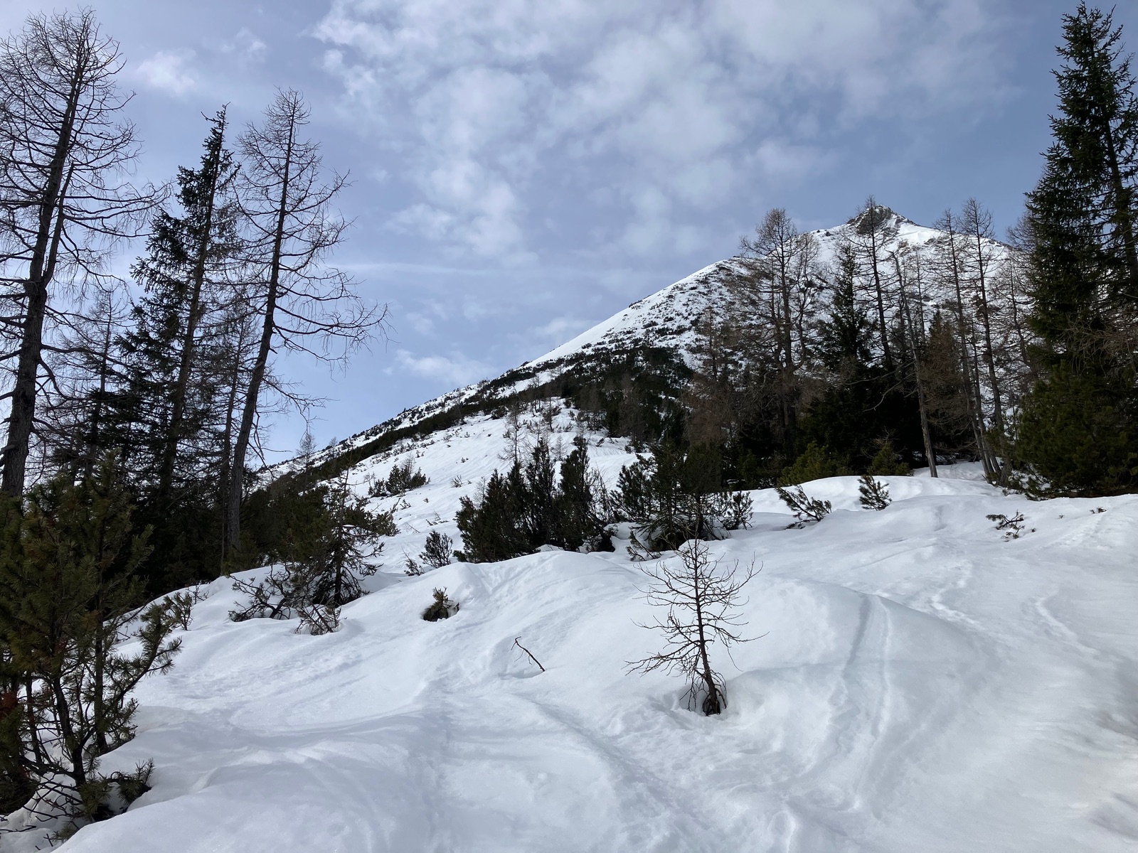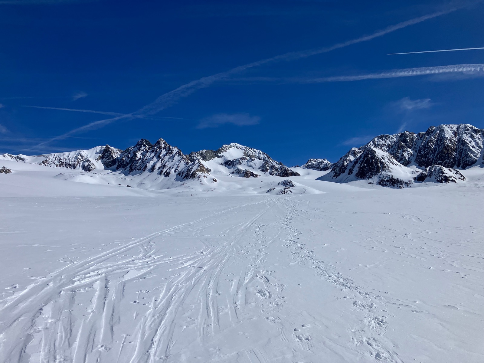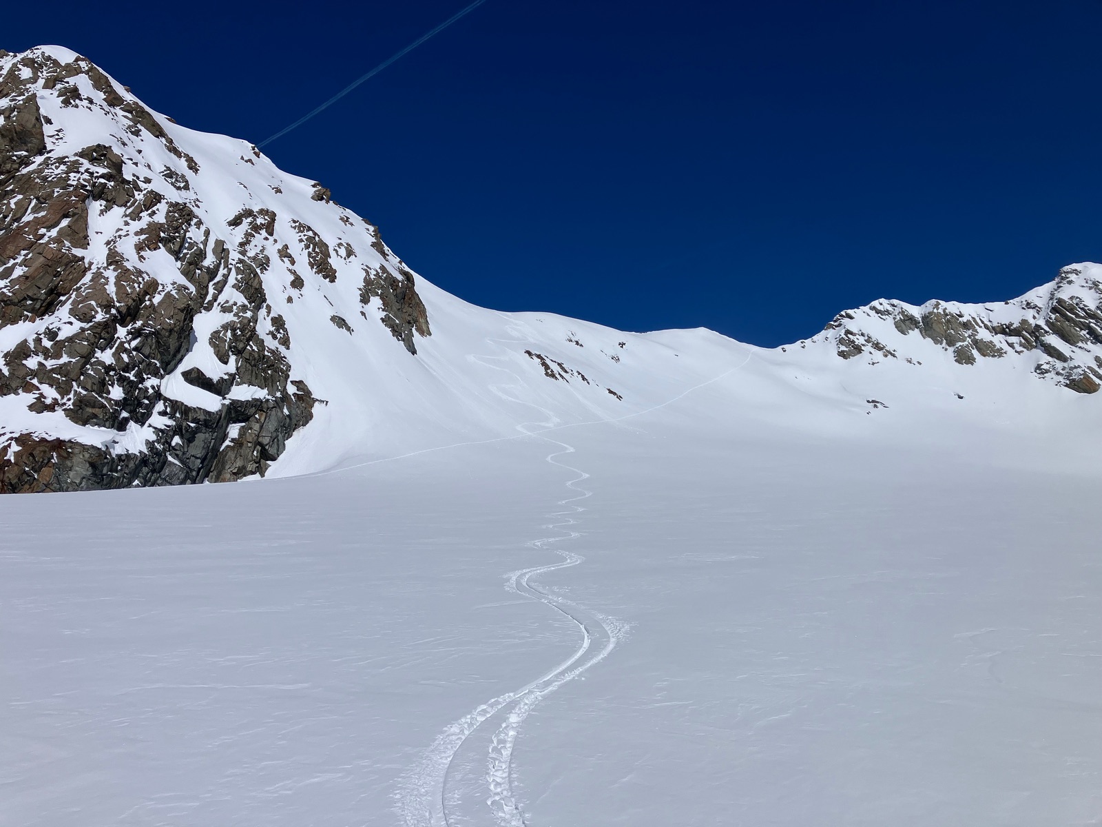 Insgesamt haben ich die Tour bei den derzeitigen Bedingungen als deutlich strenger empfunden, als ich das nach vereinzelten Internetberichten angenommen hätte. Auch hat so die Zeitangabe beim Skitourenguru für mich nicht gepasst - ich denke, das ist gerechnet, wenn man (fast) alles mit Skiern gehen kann. Für die Tour ist m.E. die volle alpinistische Ausrüstung (Pickel, Steigeisen, Harscheisen, ggf. Gletscherzeug) sinnvoll. Das Wandl selber ist vermutlich nur mit Körpersicherung absicherbar.