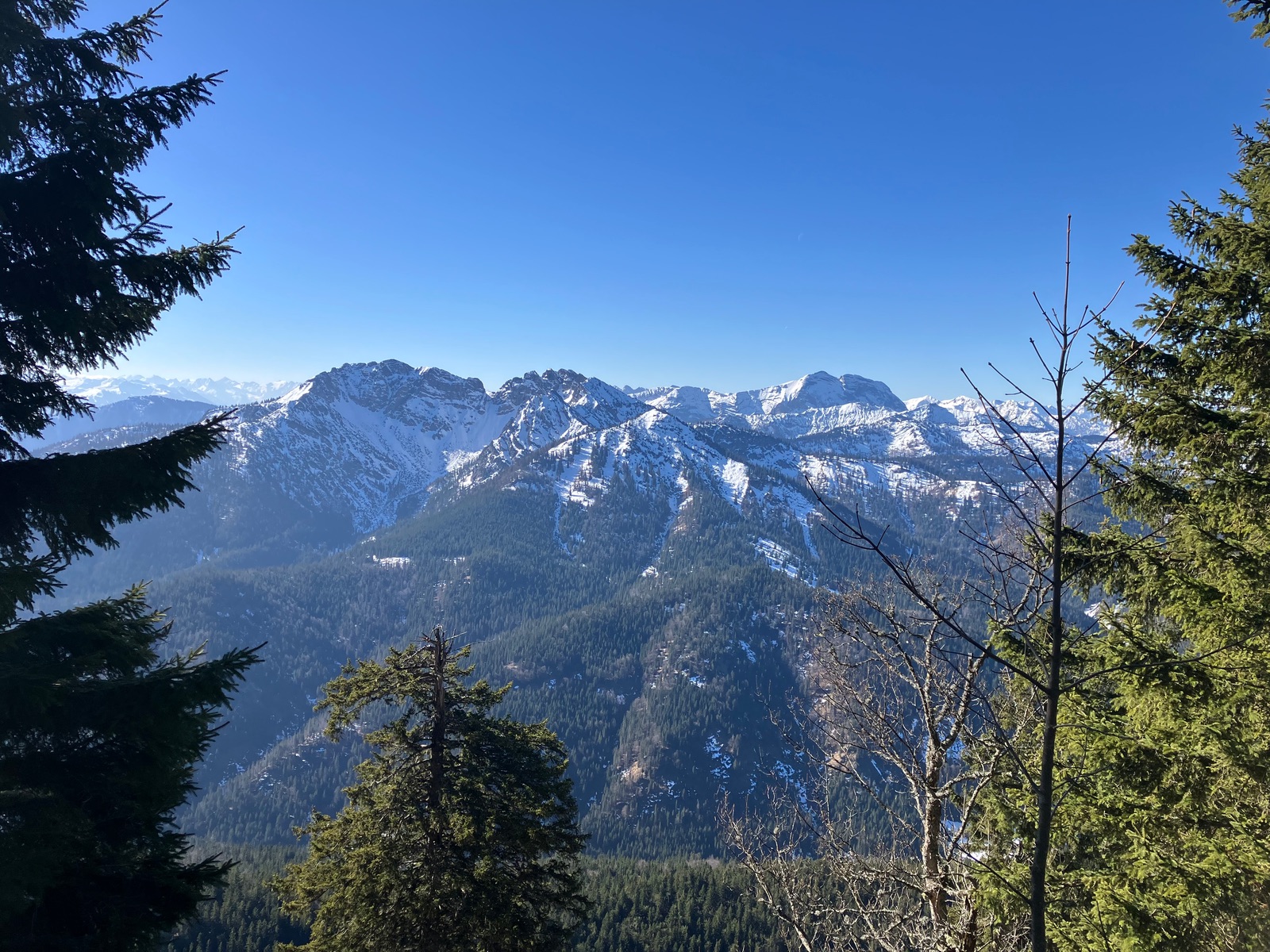 Blick vom Ausgangspunkt - die geschilderte Aufstiegsvariante (3) ist links der Bildmitte zu sehen: