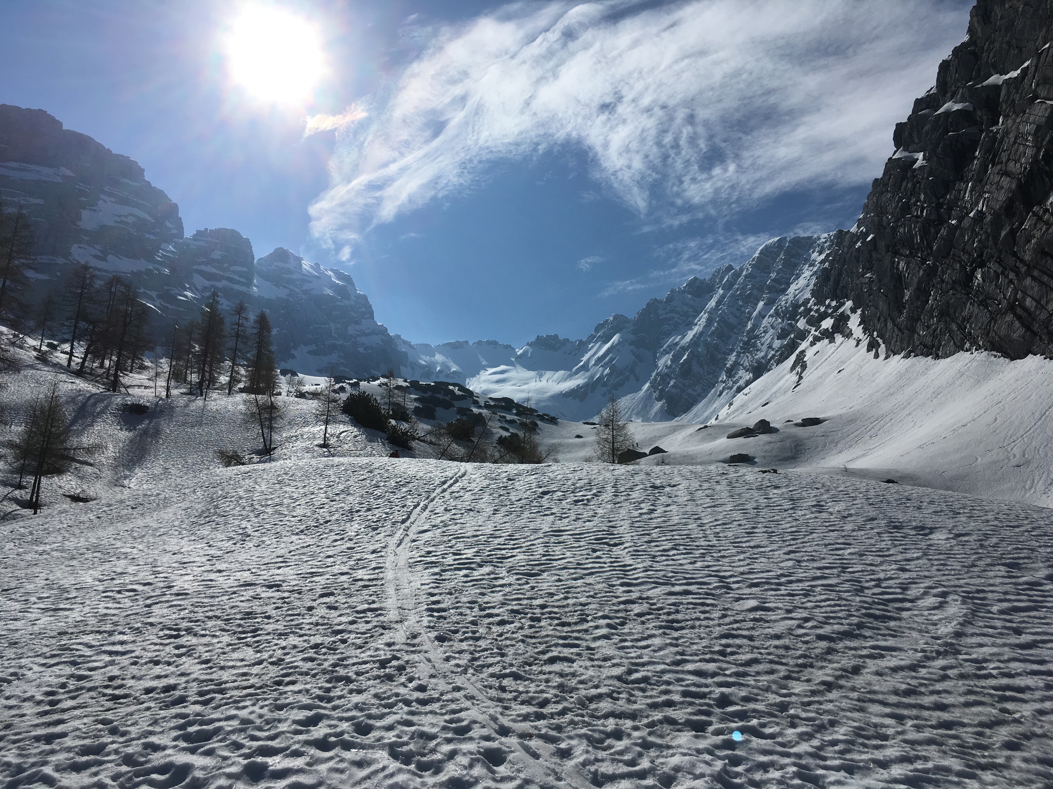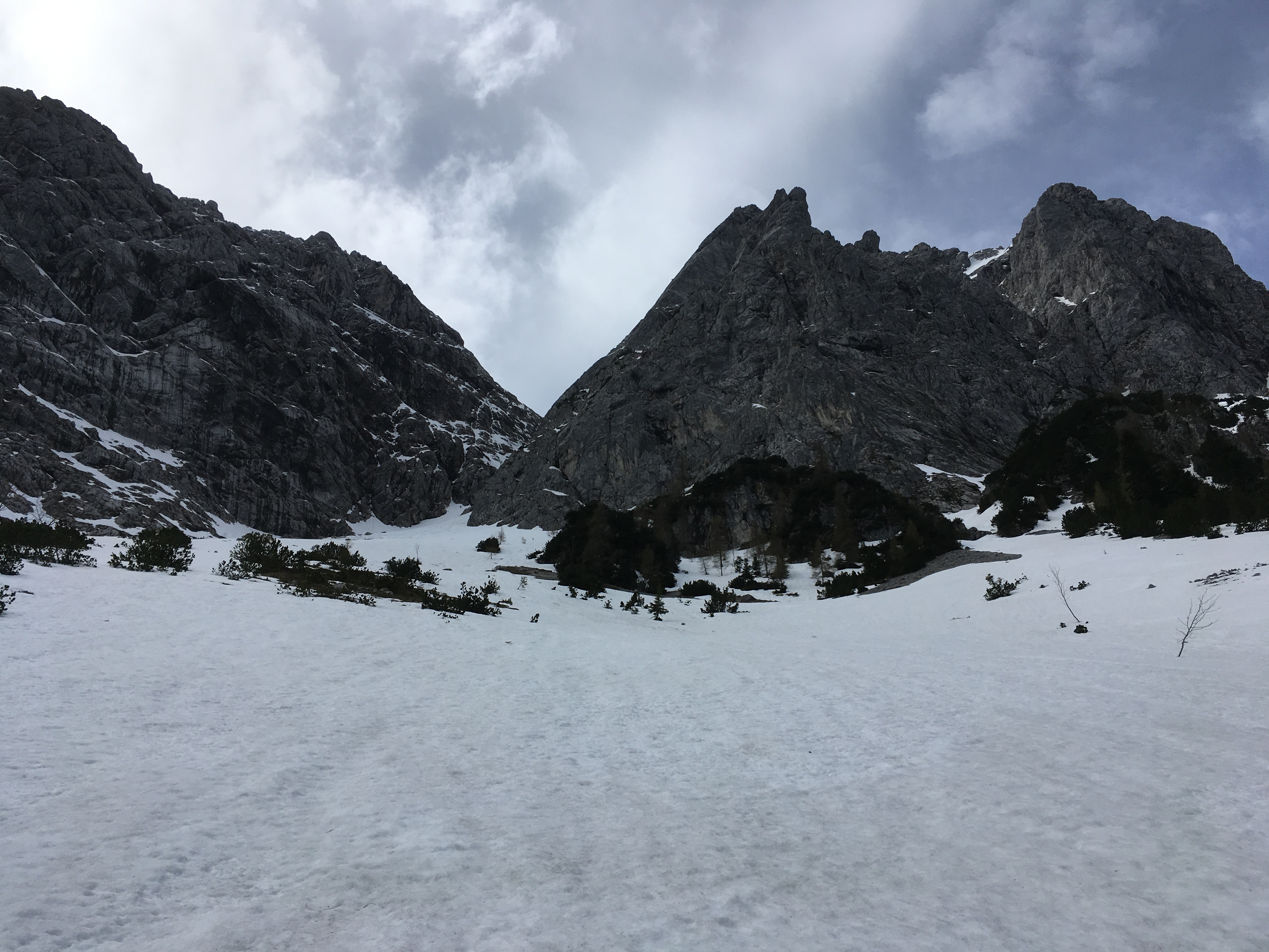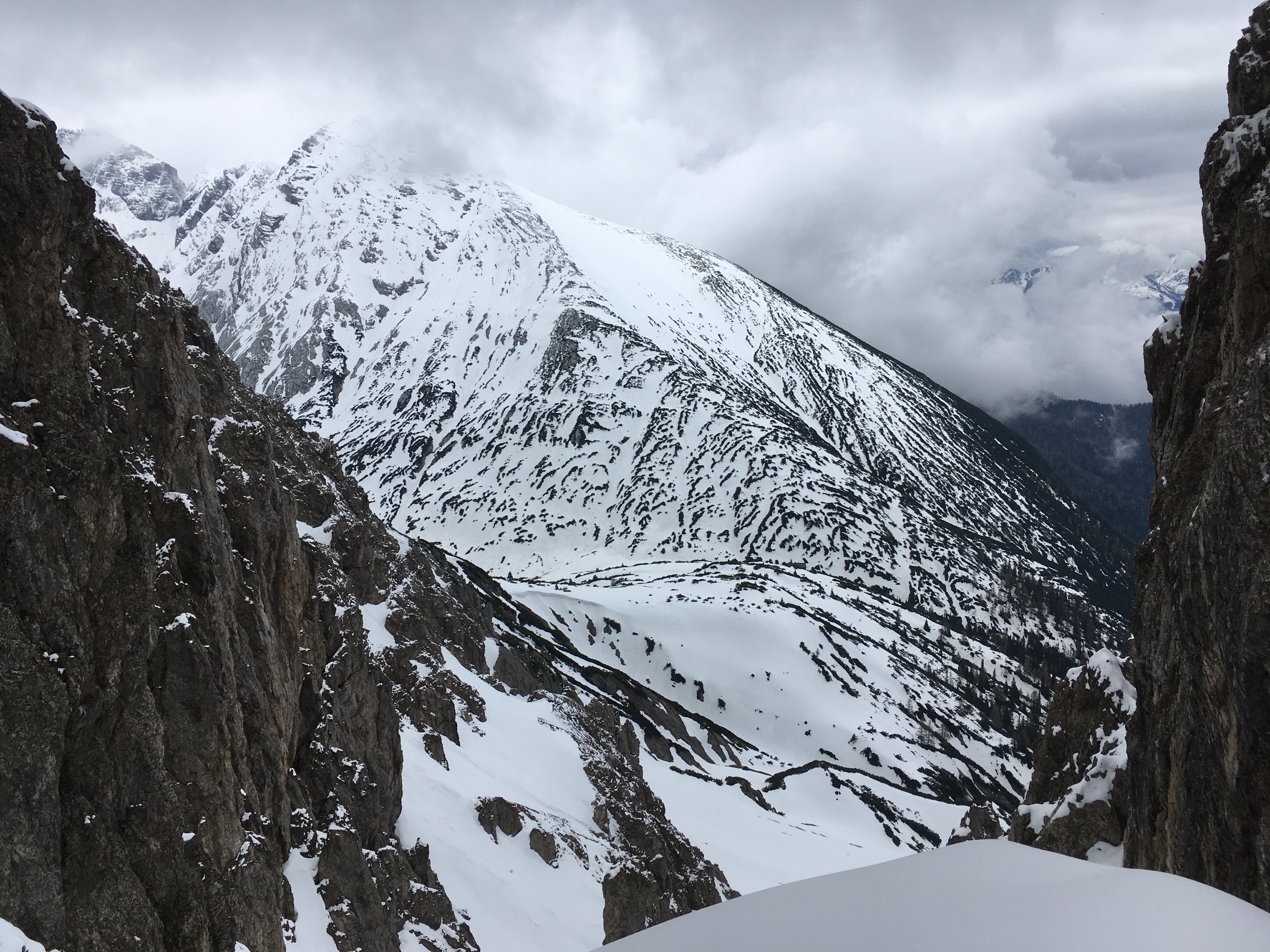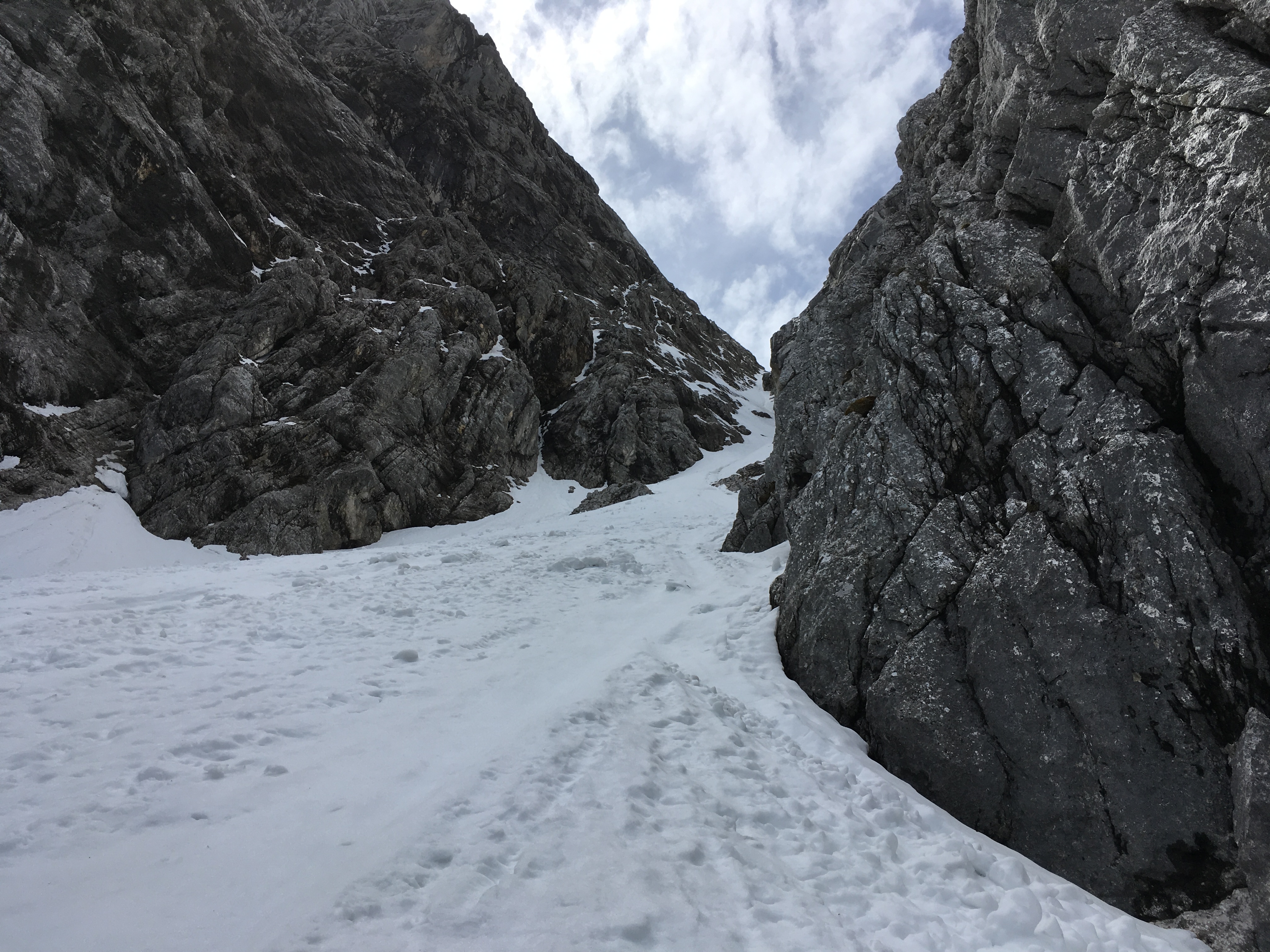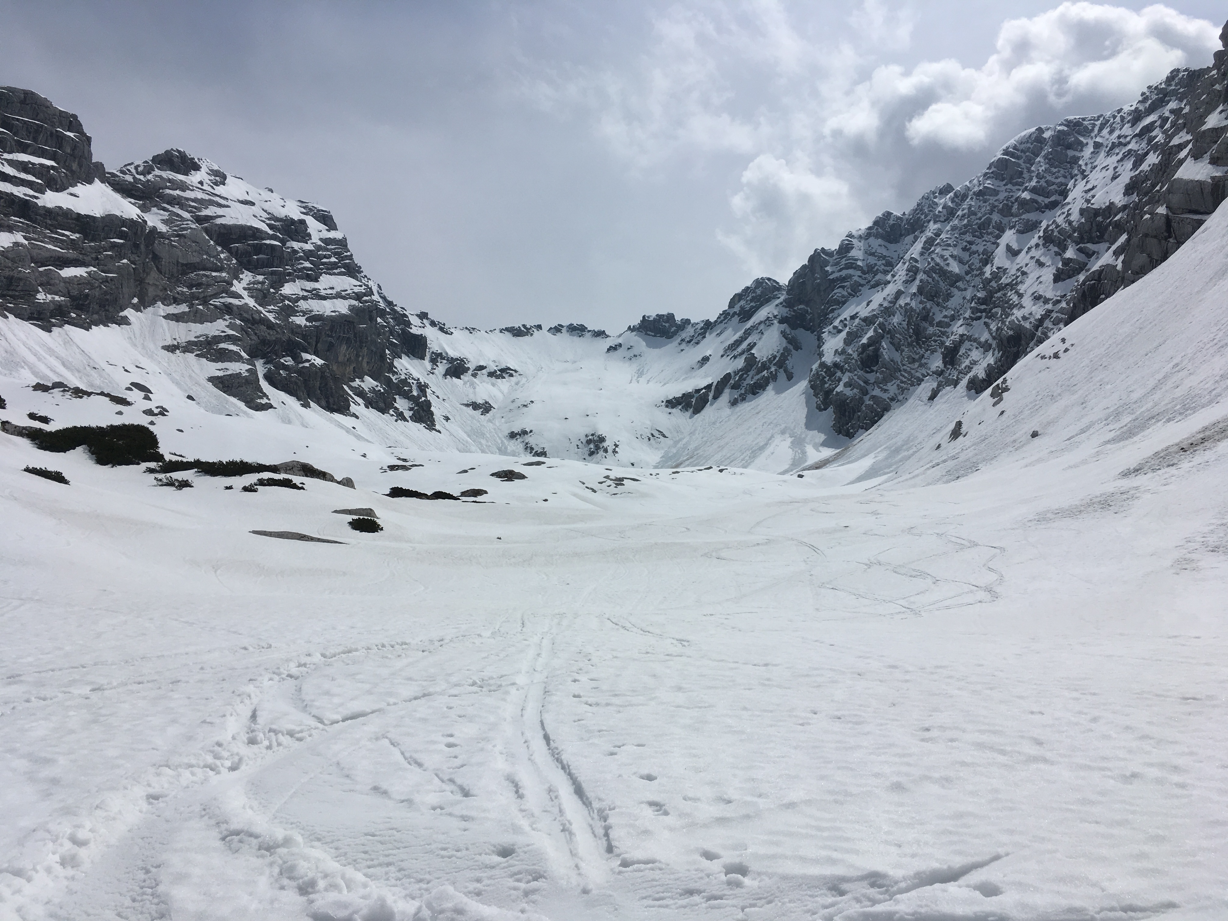 Tourenverhältnisse: Schnee ab der Gamsgrube (ca. 2.500 m), aber noch einige Male unterbrochen - durchgehend ab ca. 2.600 m