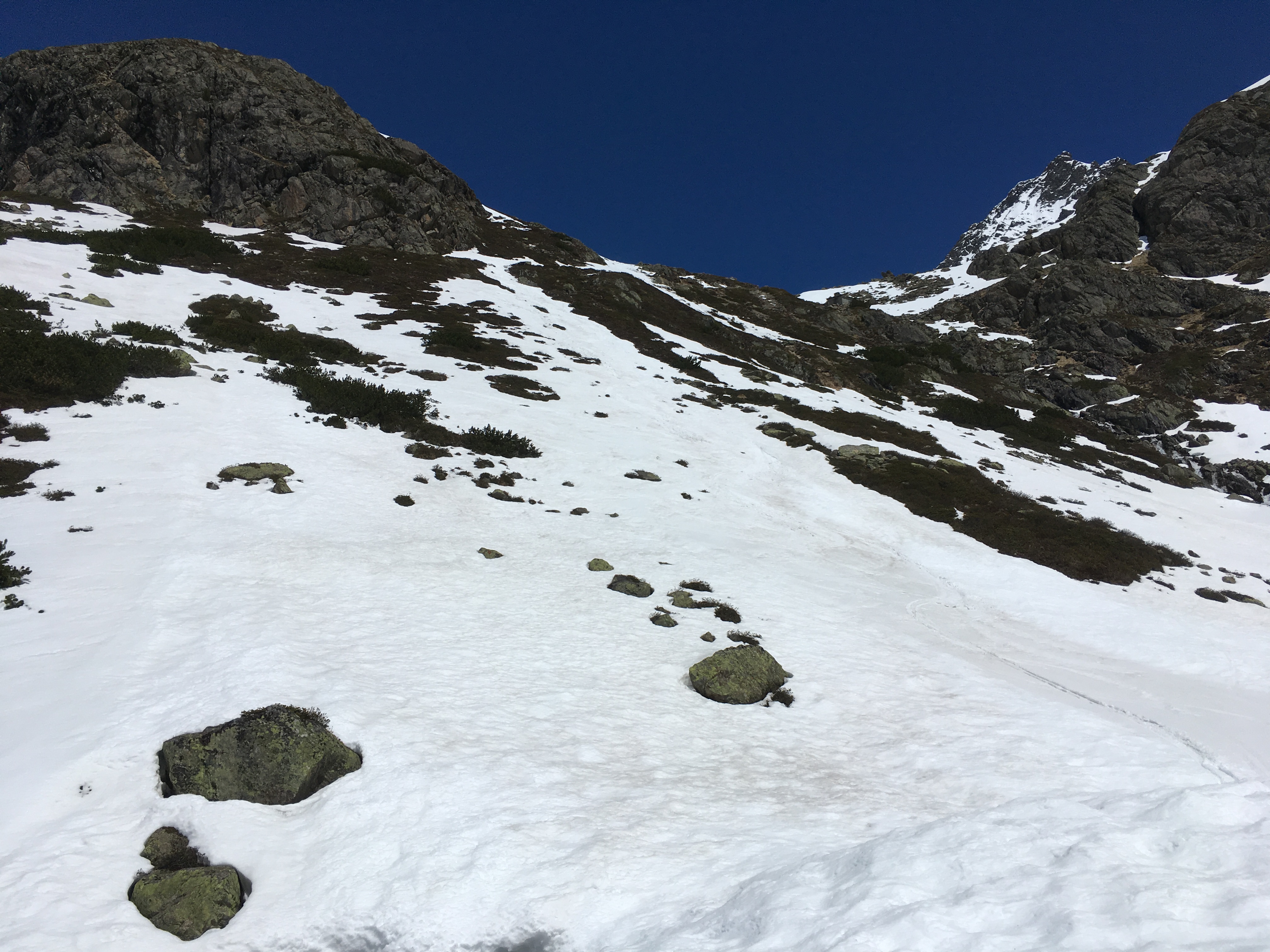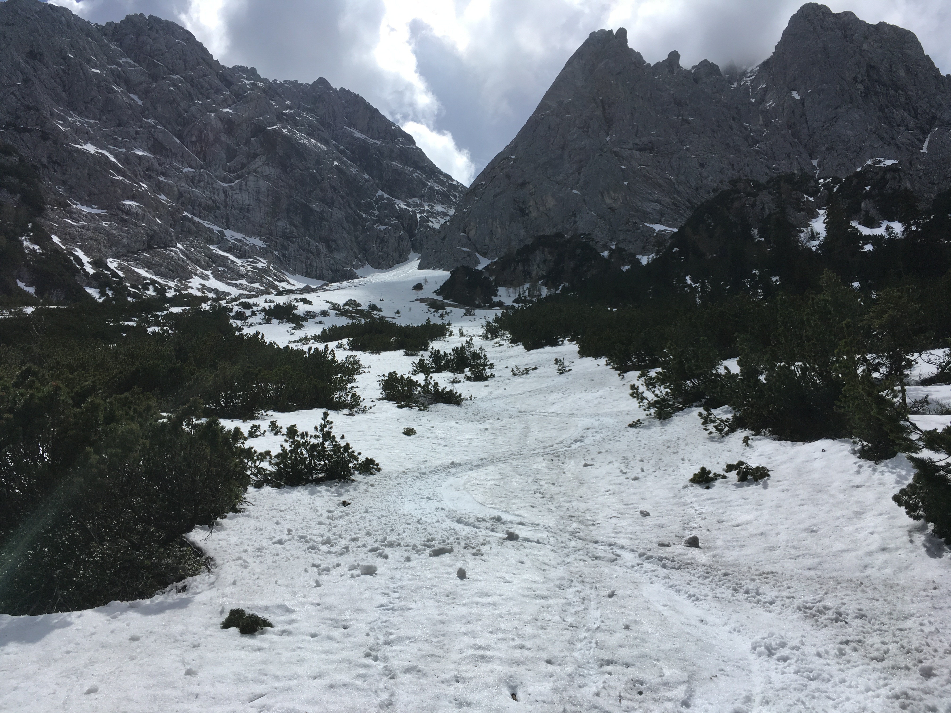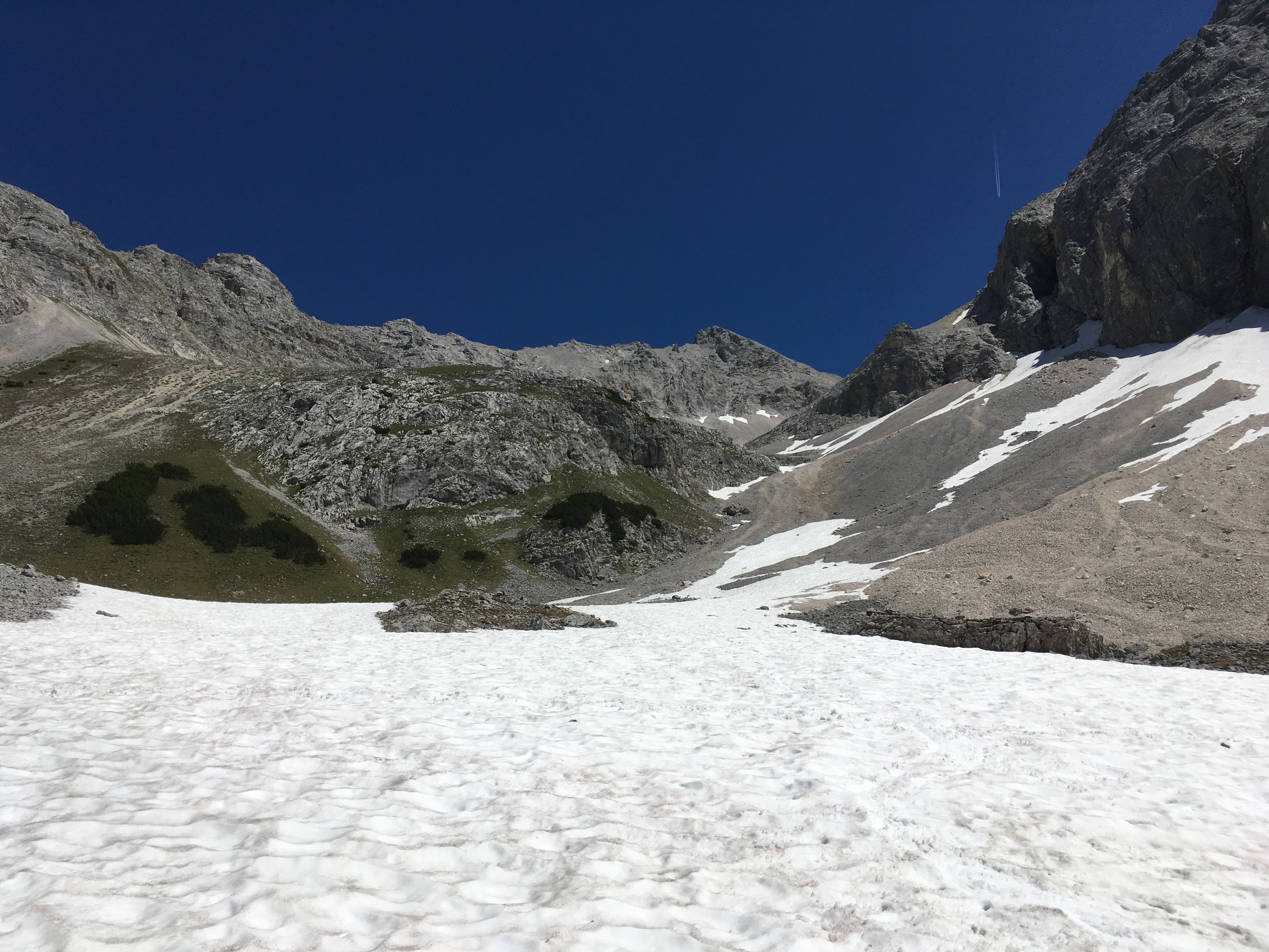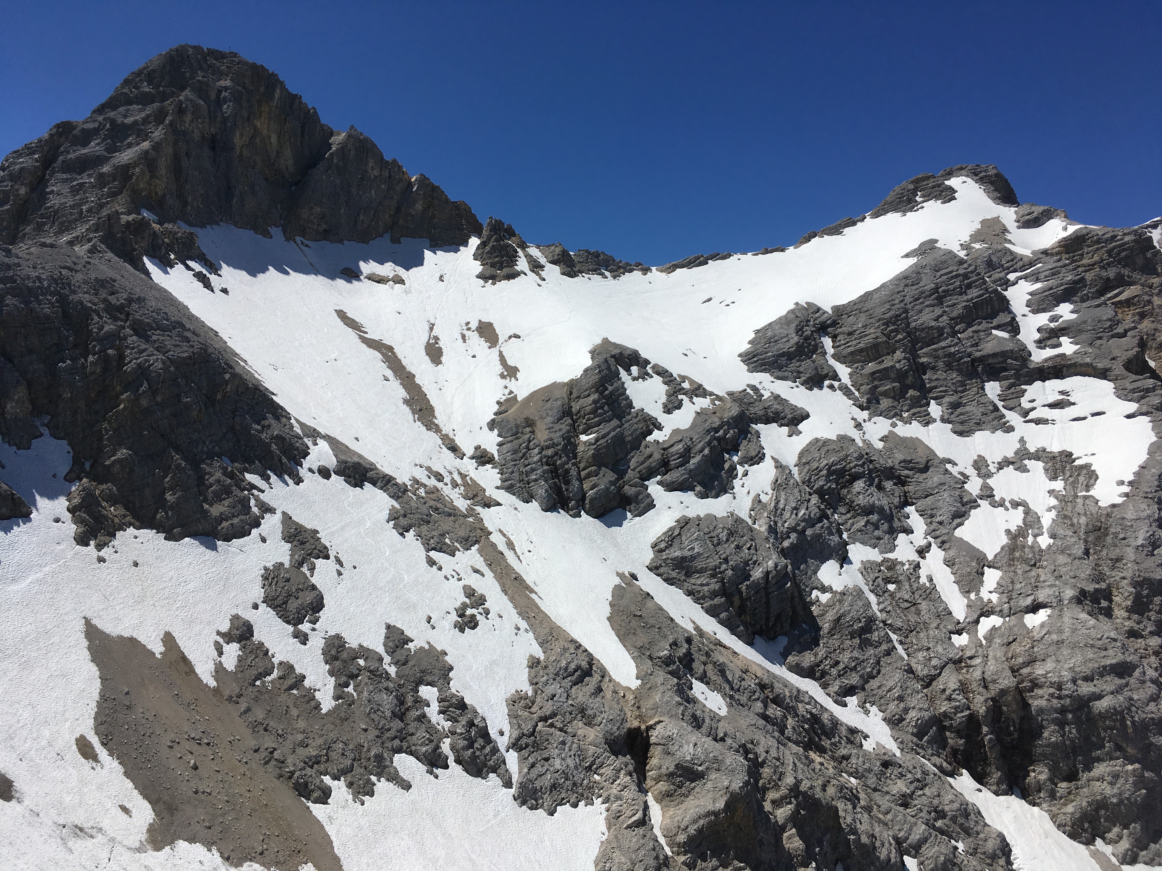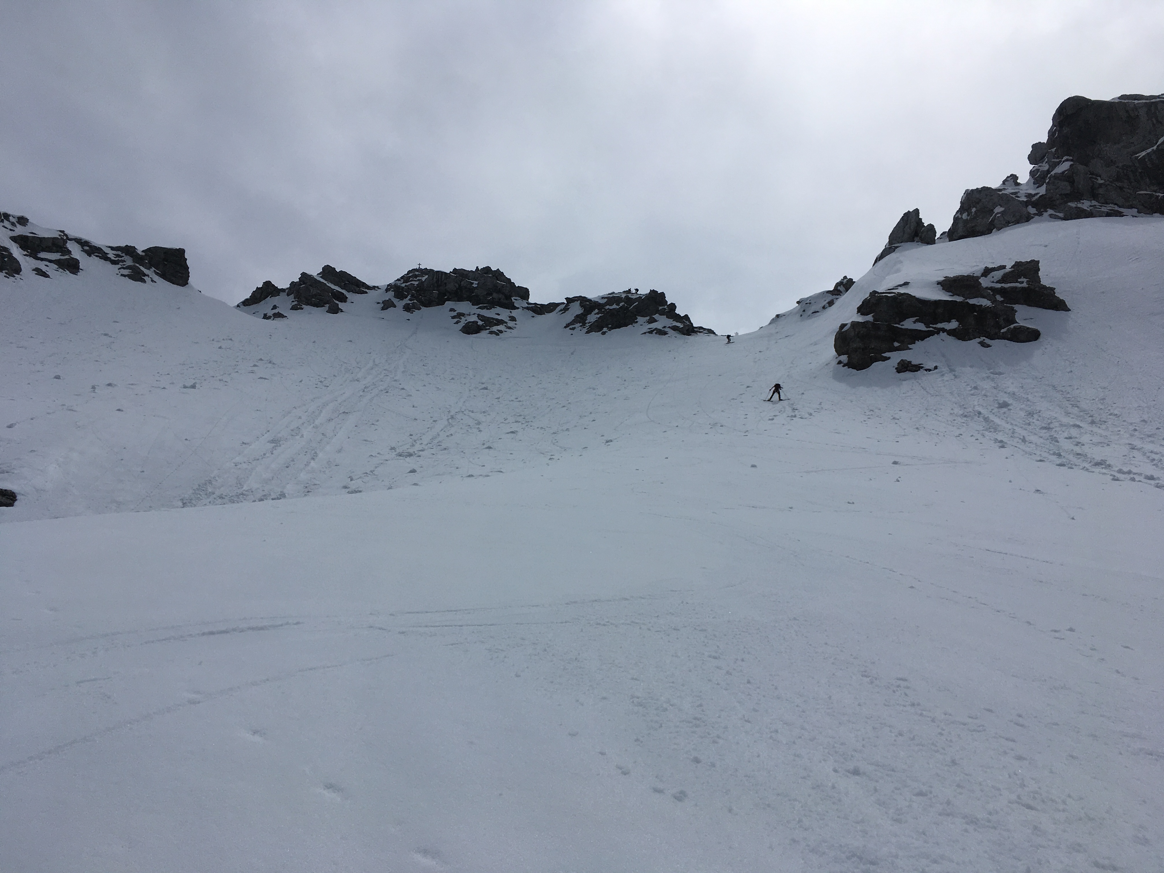 Tourenverhältnisse: Schnee ab der Gamsgrube (ca. 2.500 m), aber noch einige Male unterbrochen - durchgehend ab ca. 2.600 m