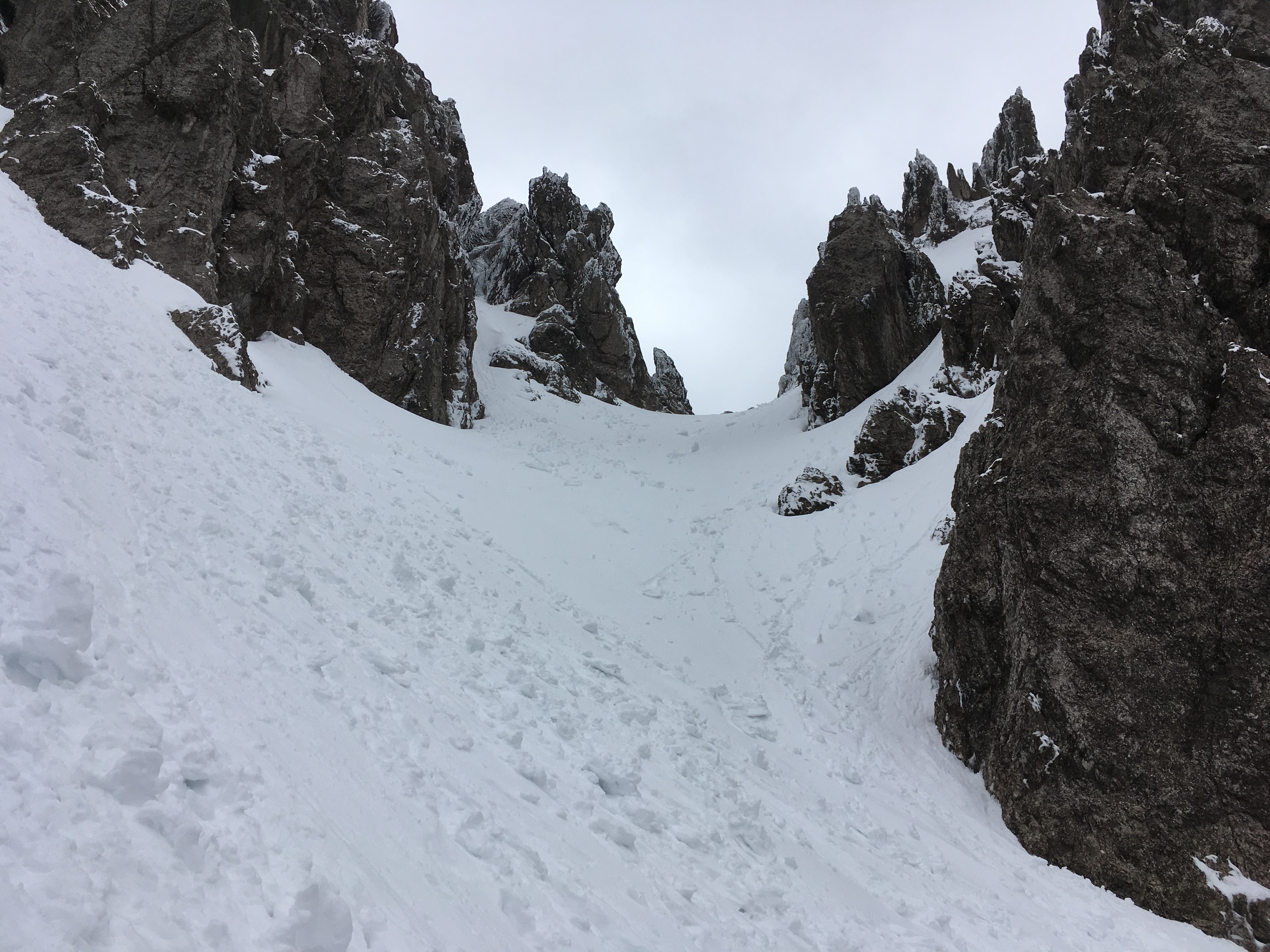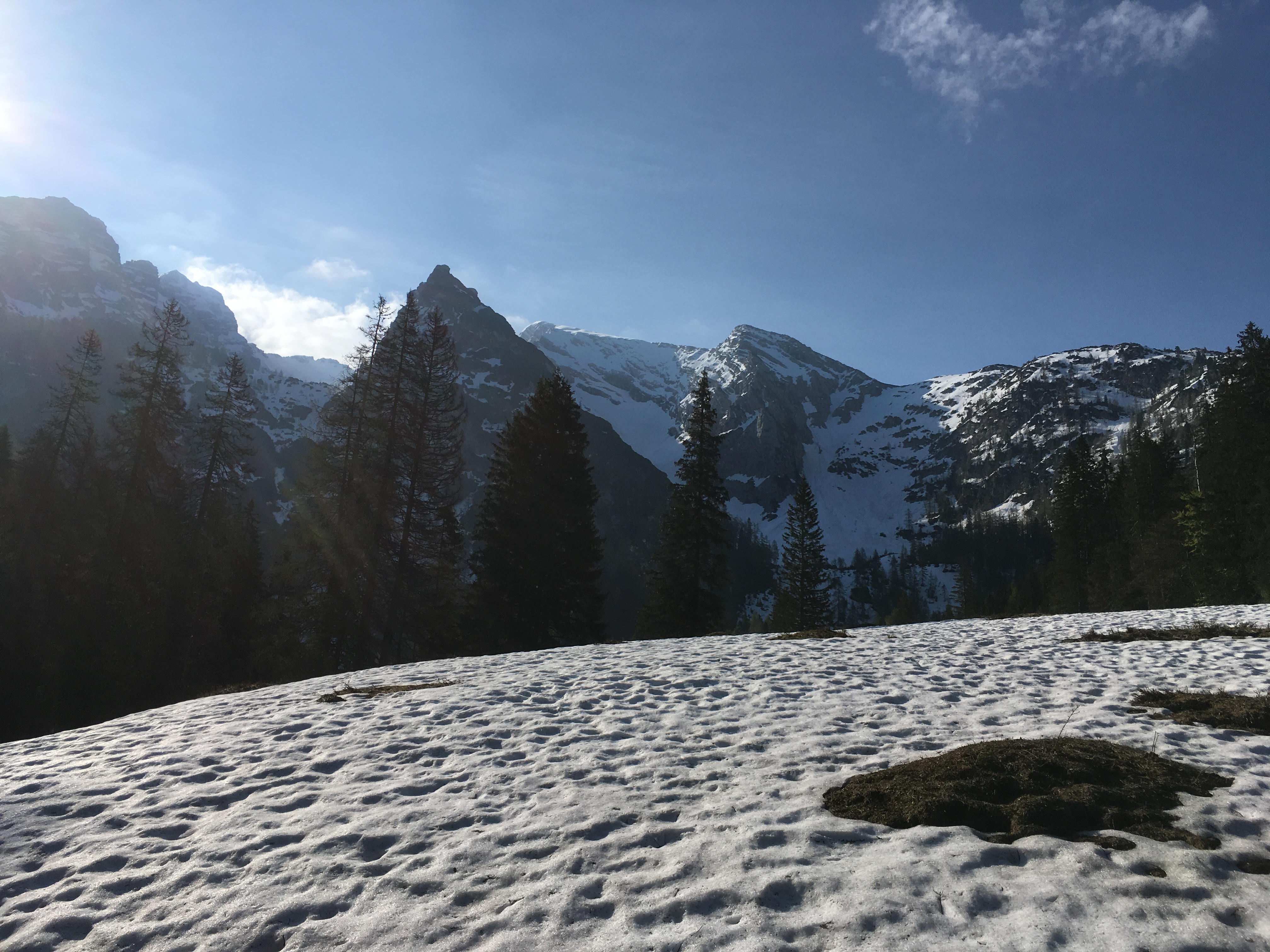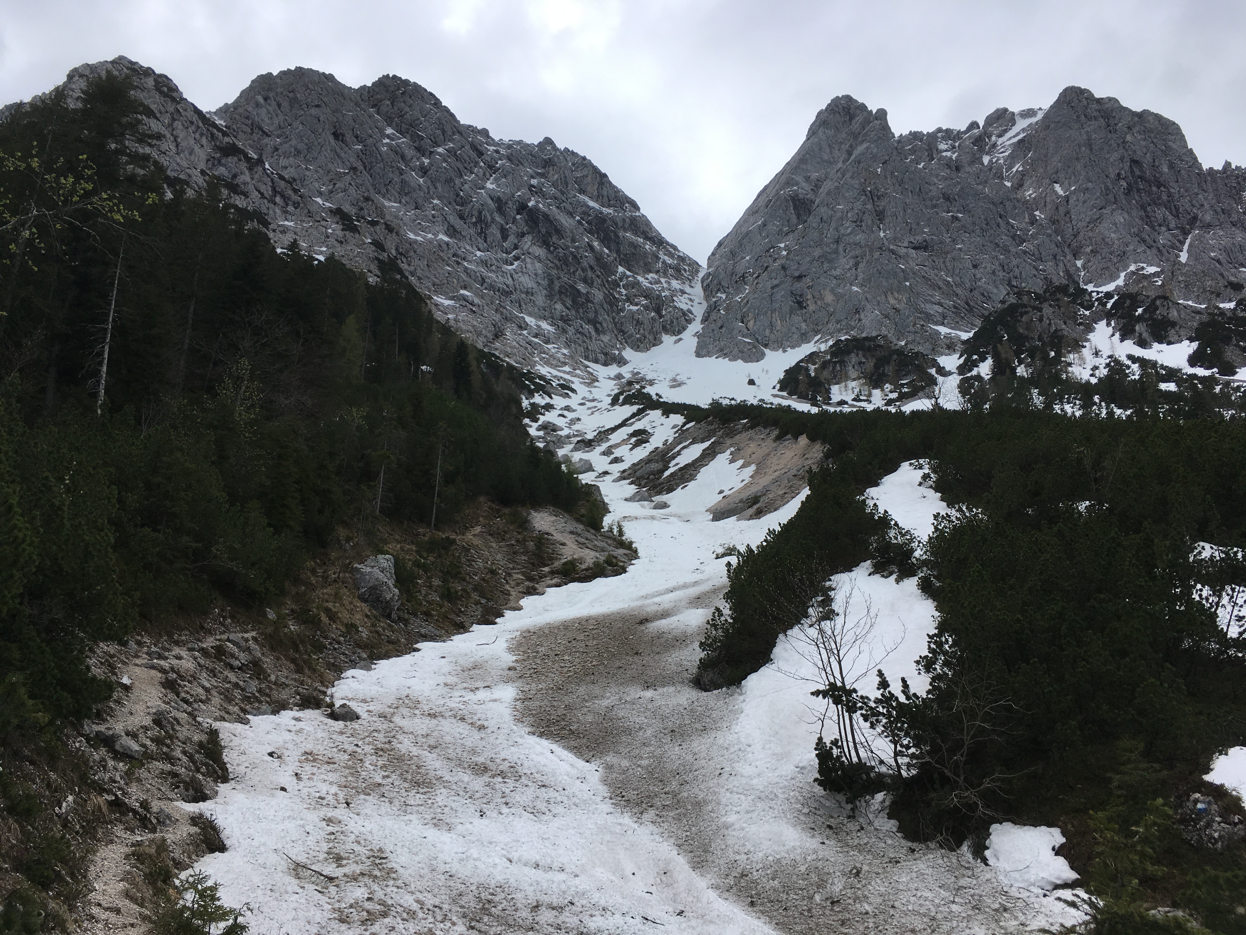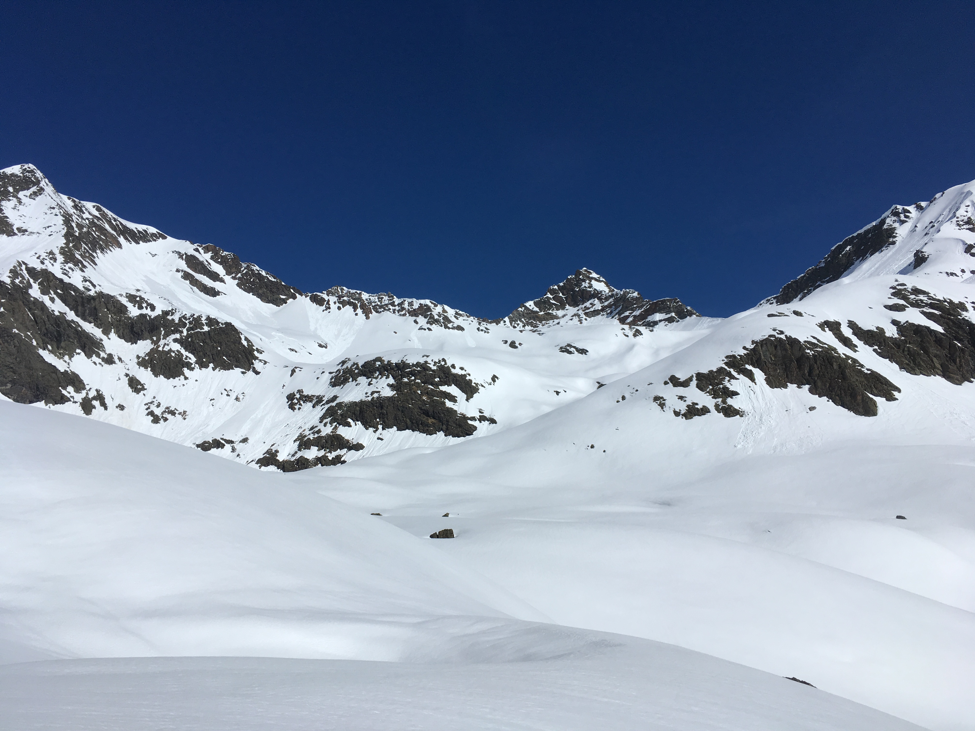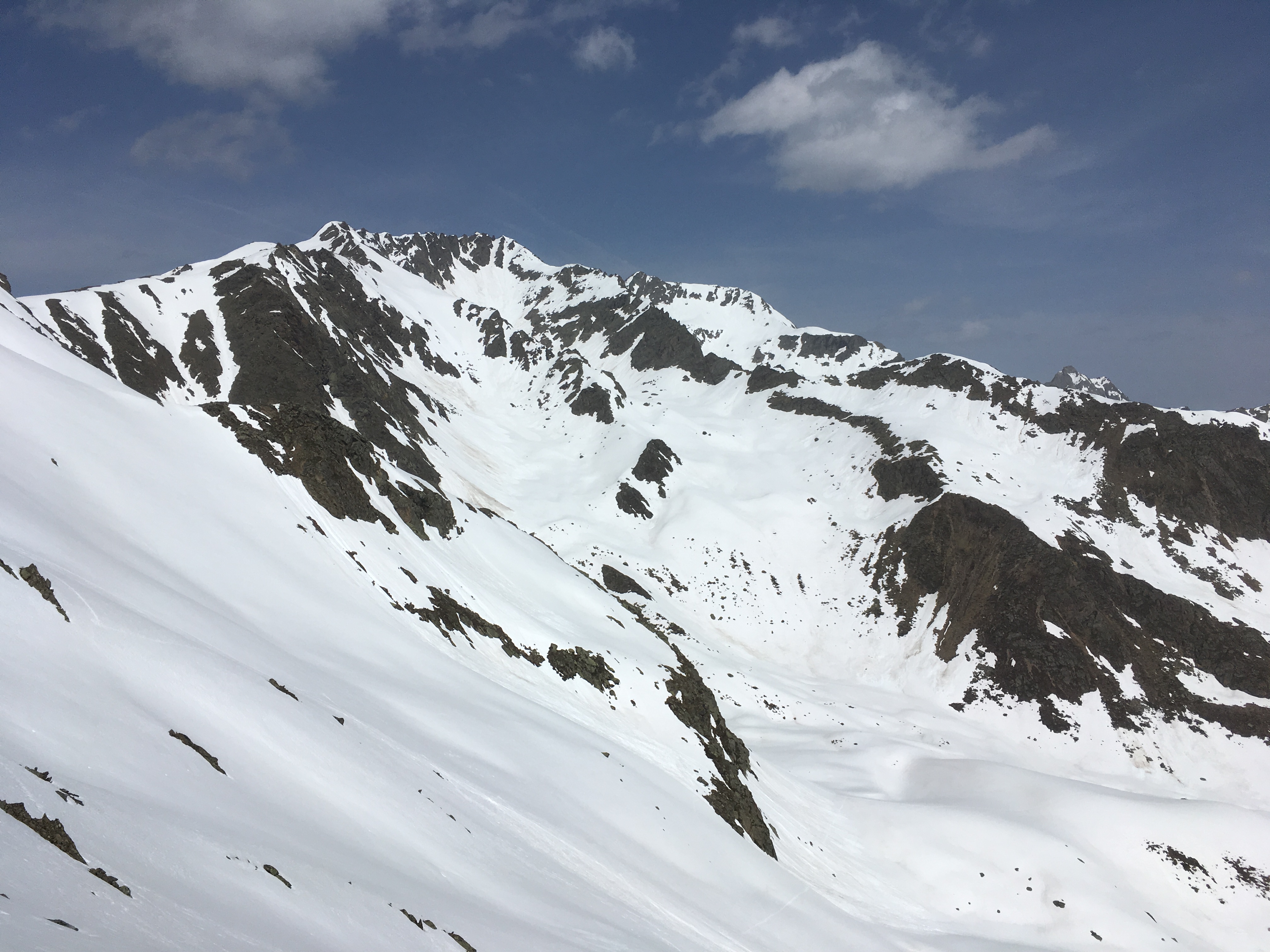 Tourenverhältnisse: Schnee ab der Gamsgrube (ca. 2.500 m), aber noch einige Male unterbrochen - durchgehend ab ca. 2.600 m