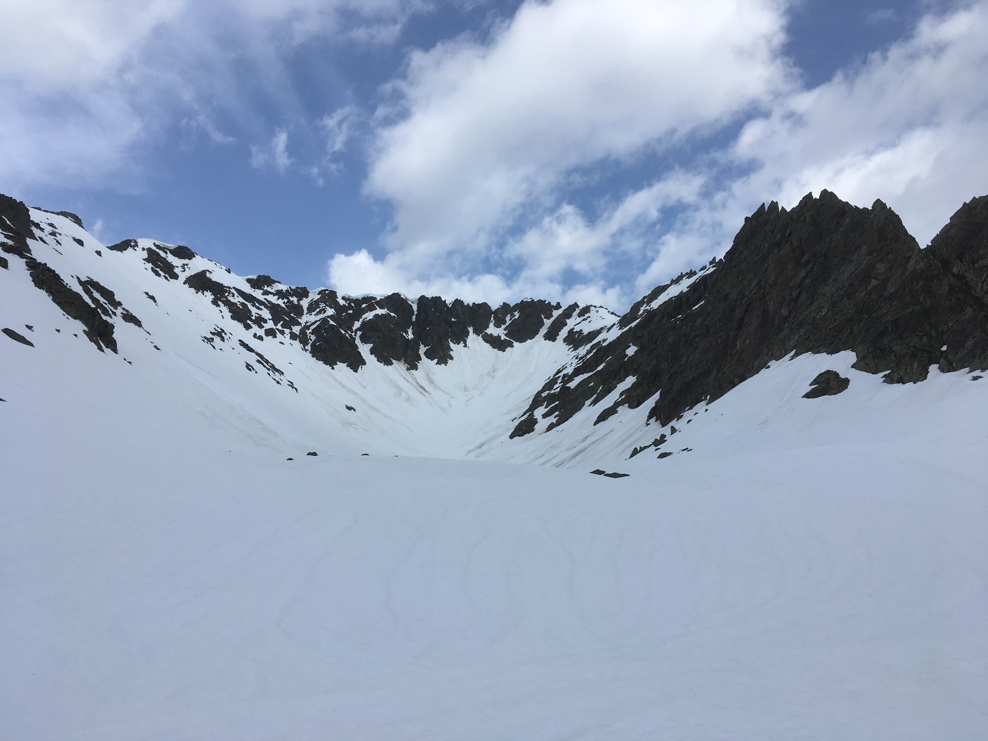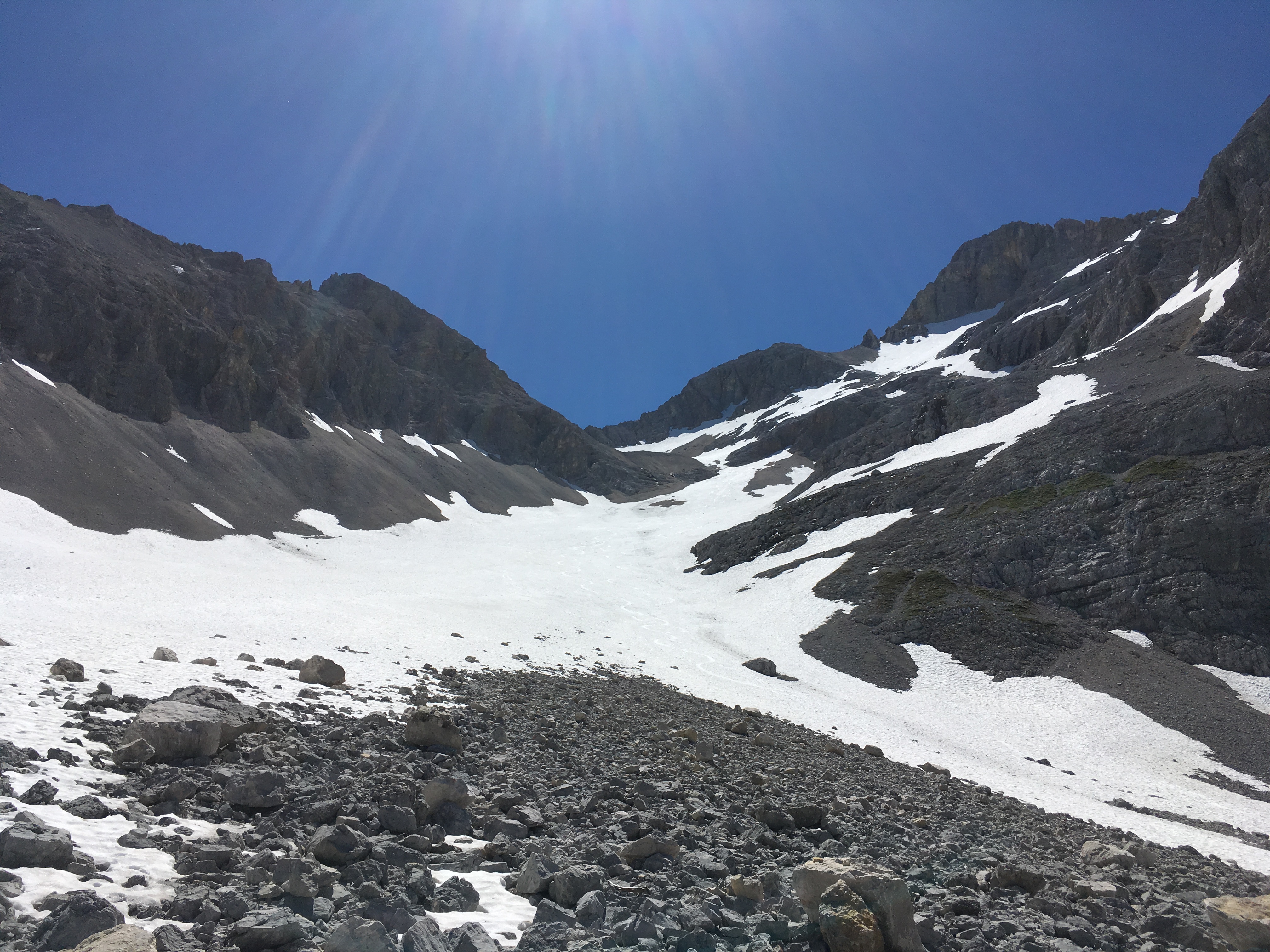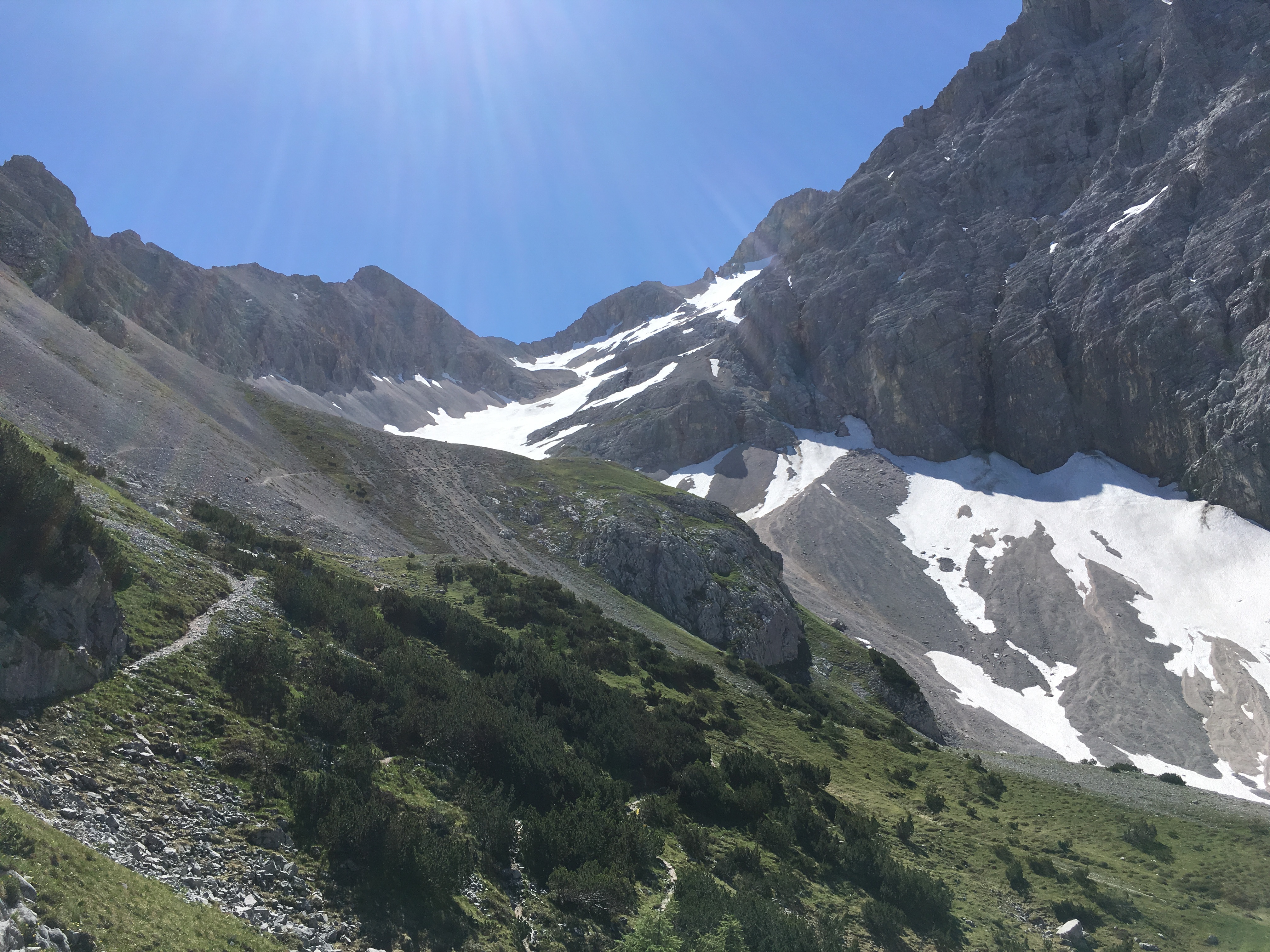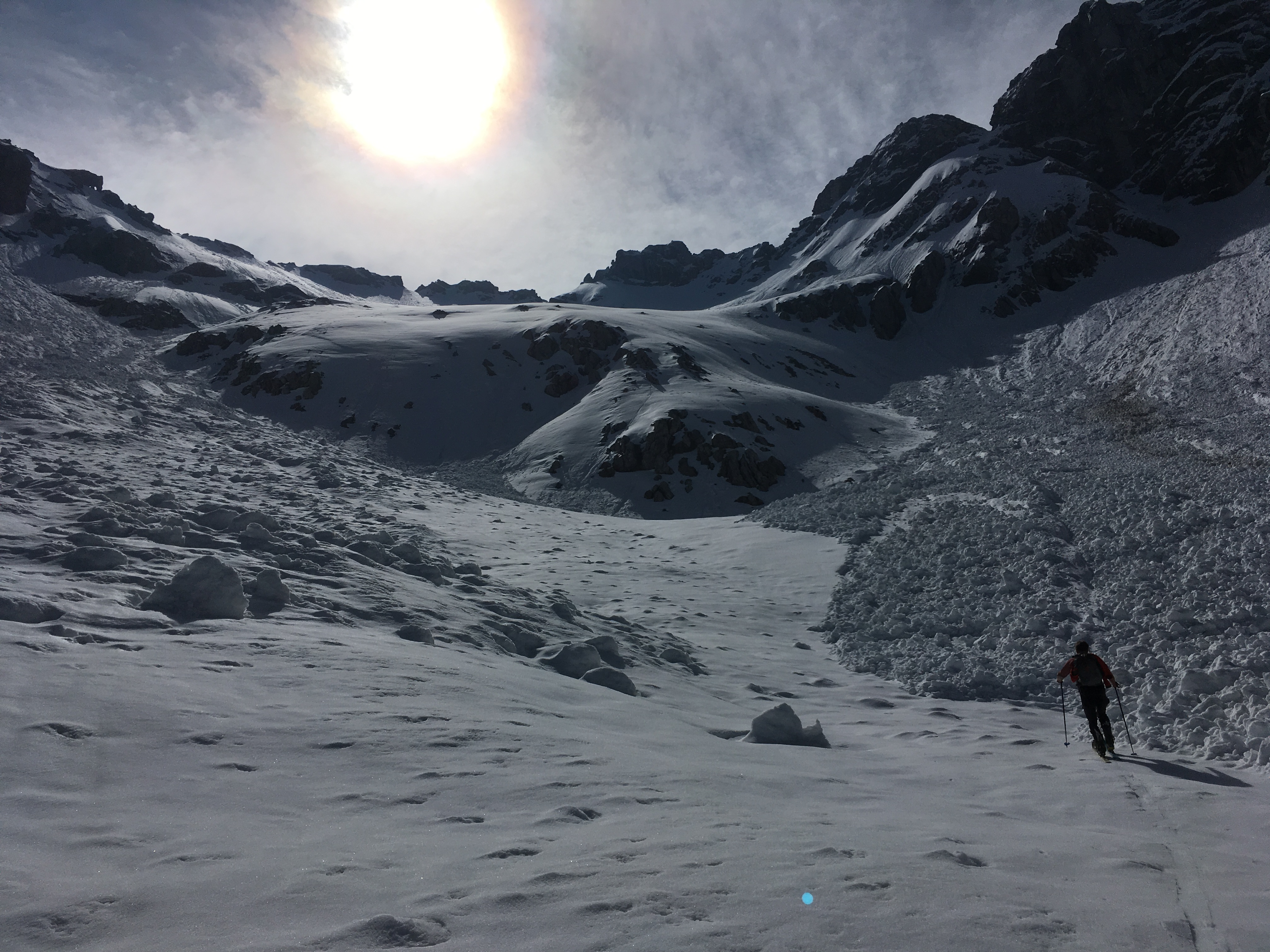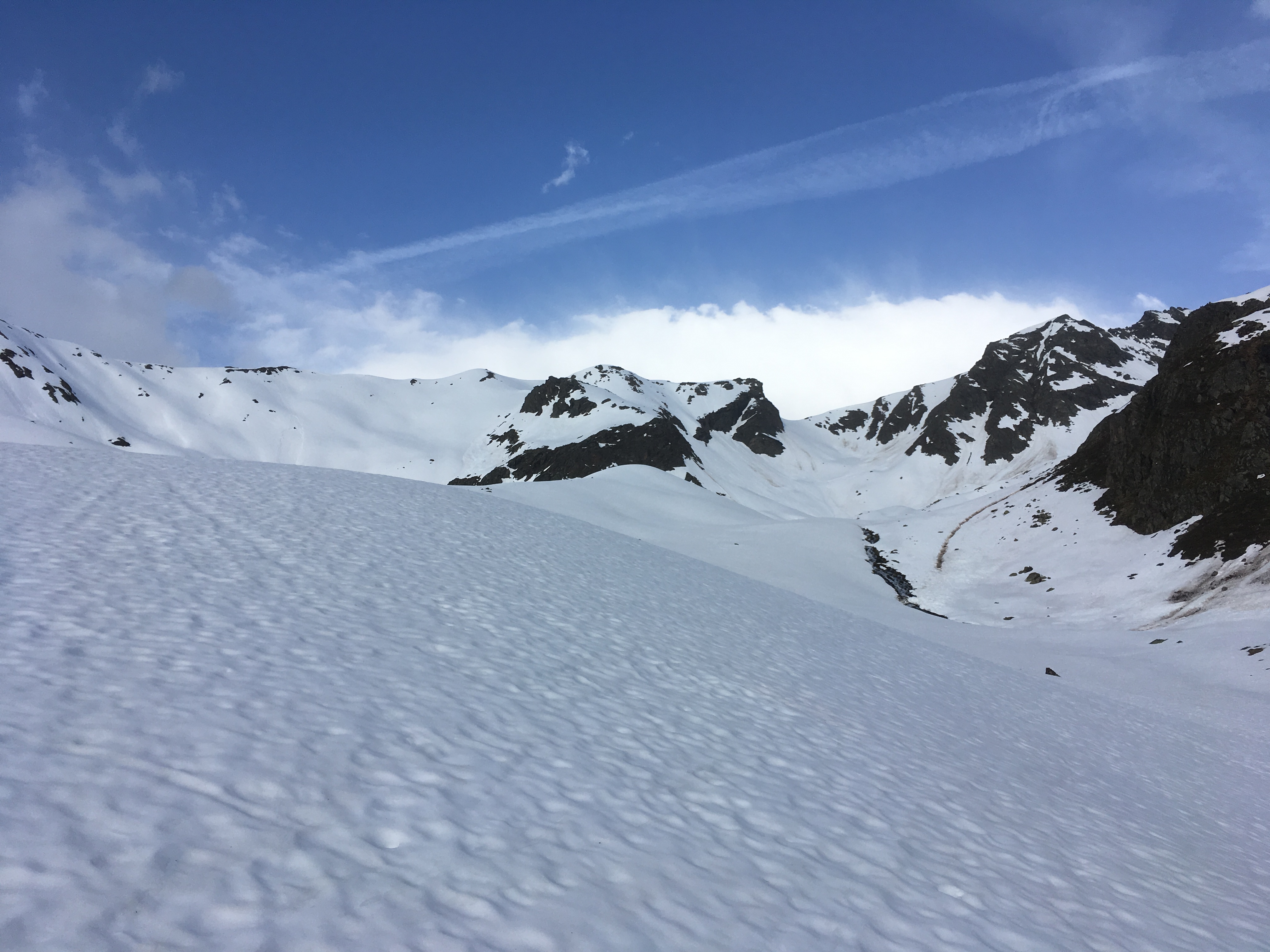Tourenverhältnisse: Schnee ab der Gamsgrube (ca. 2.500 m), aber noch einige Male unterbrochen - durchgehend ab ca. 2.600 m
