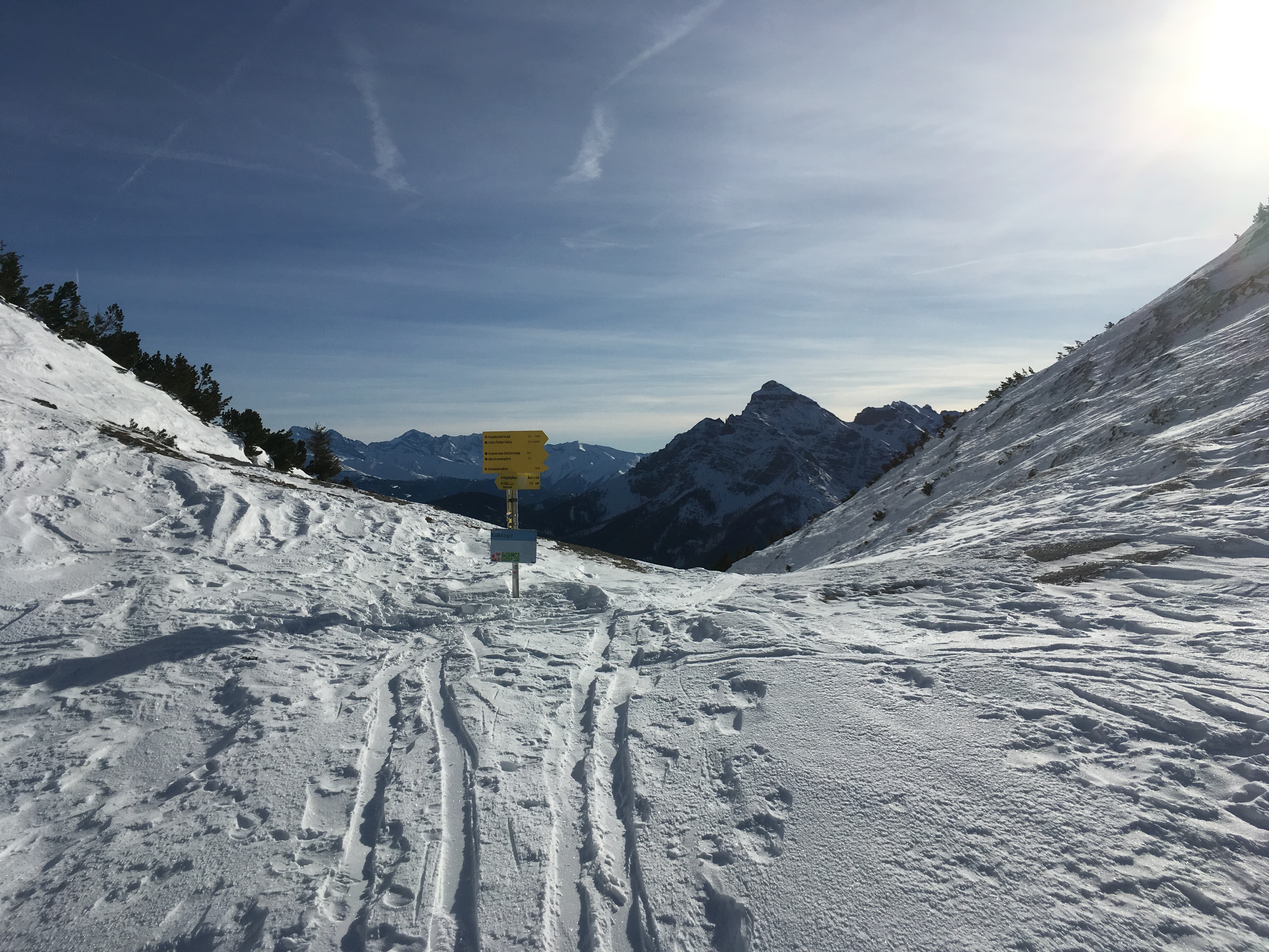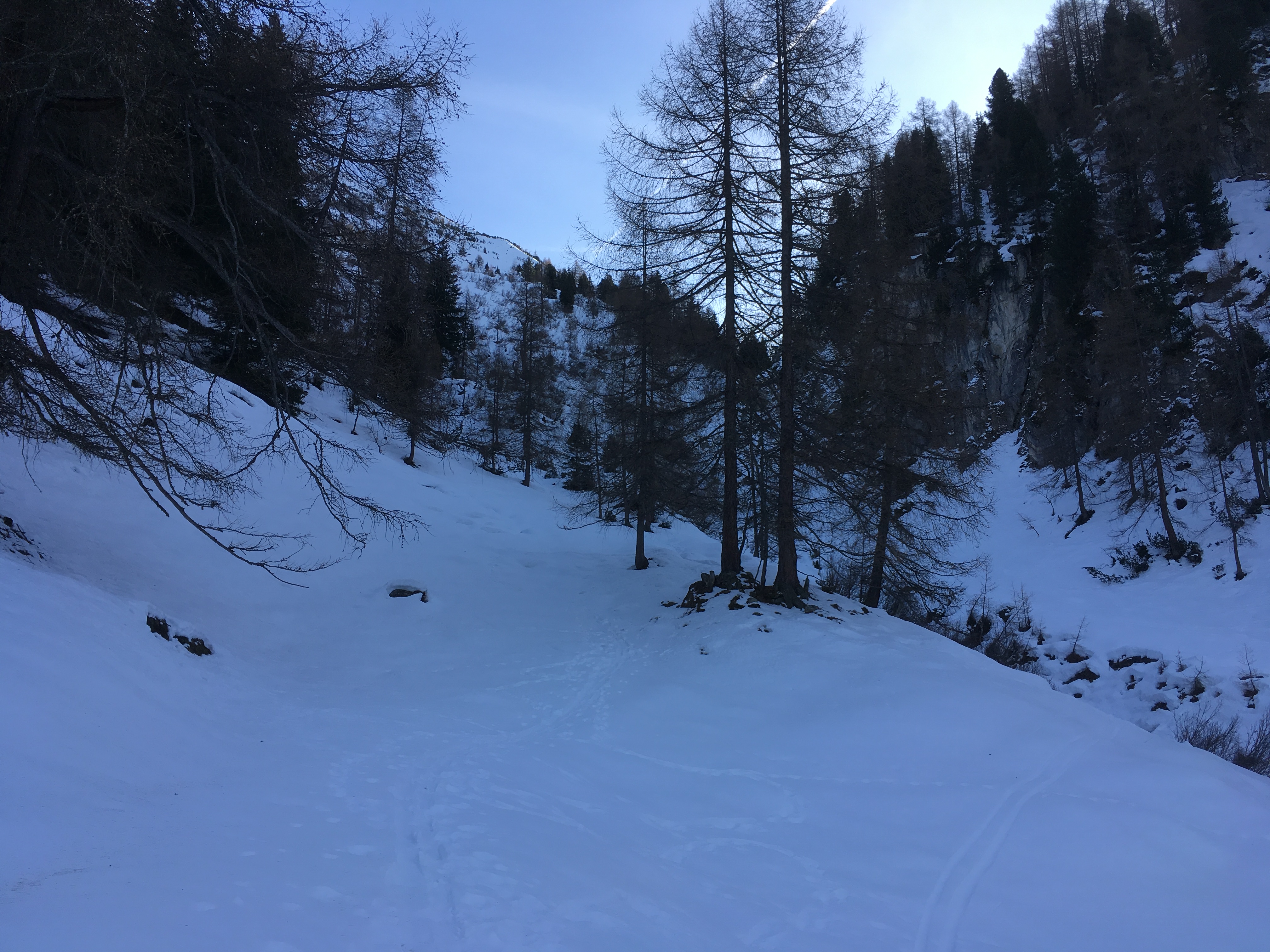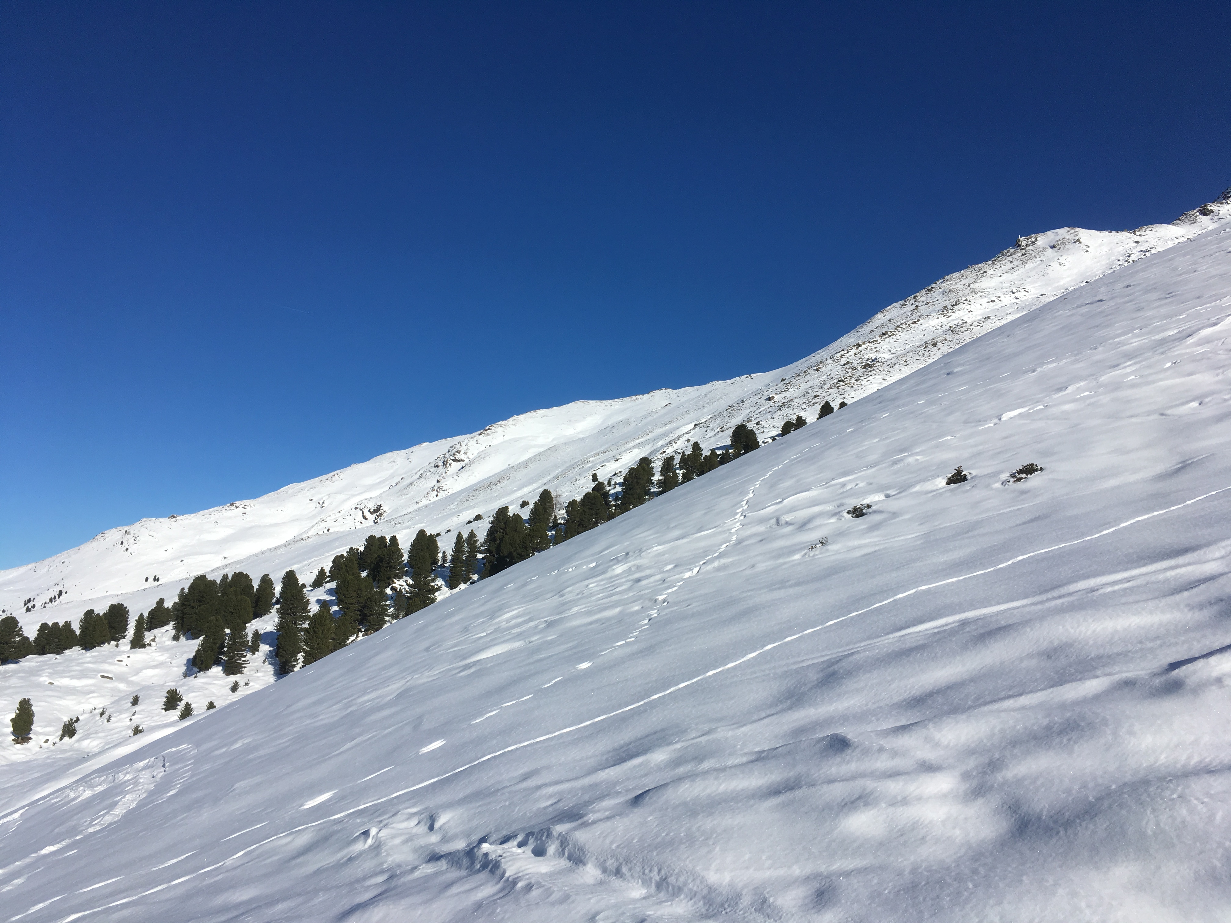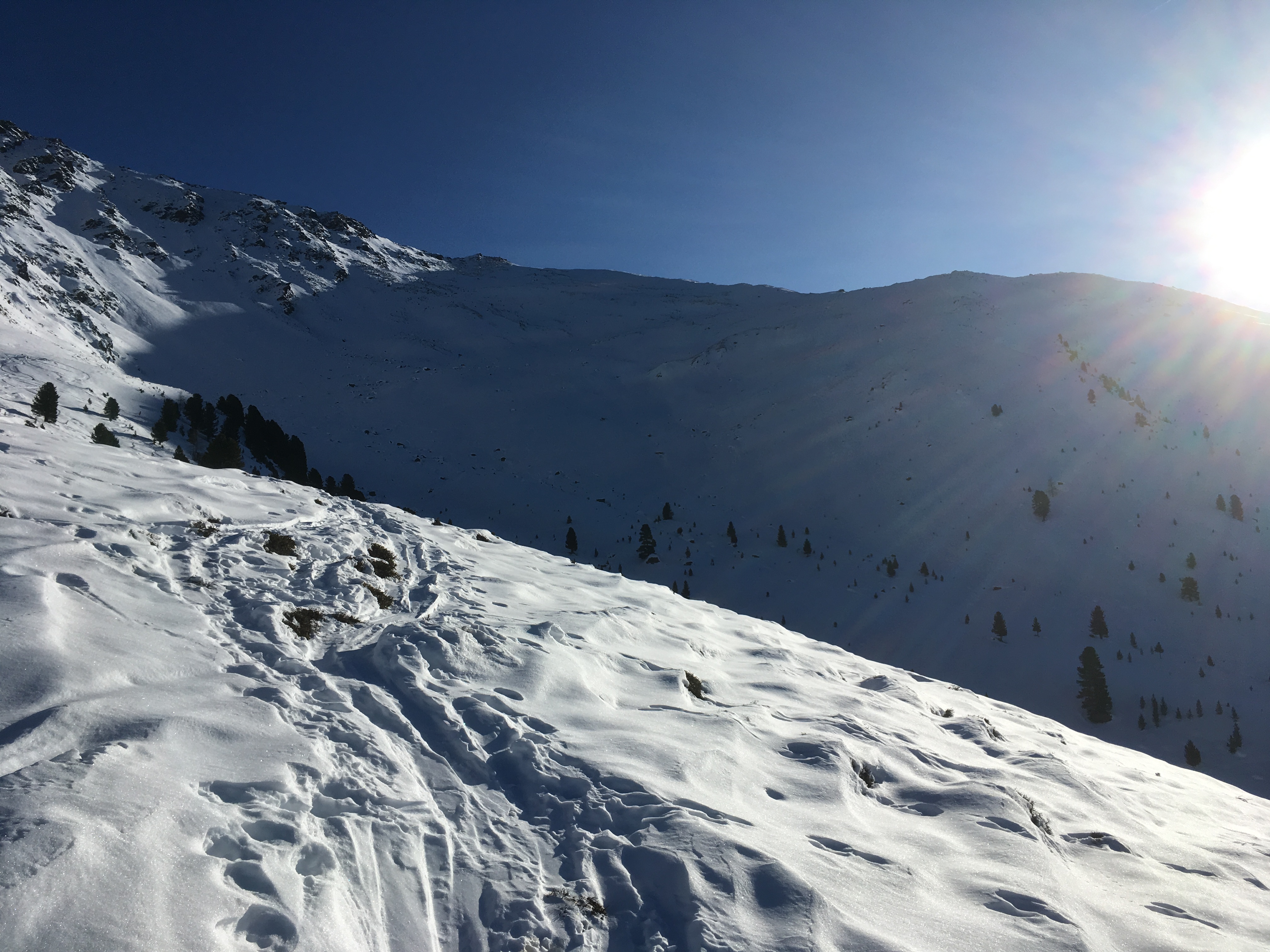 Nach der Querung im Bröselfels wieder im guten Skigelände zwischen den Burgställen: