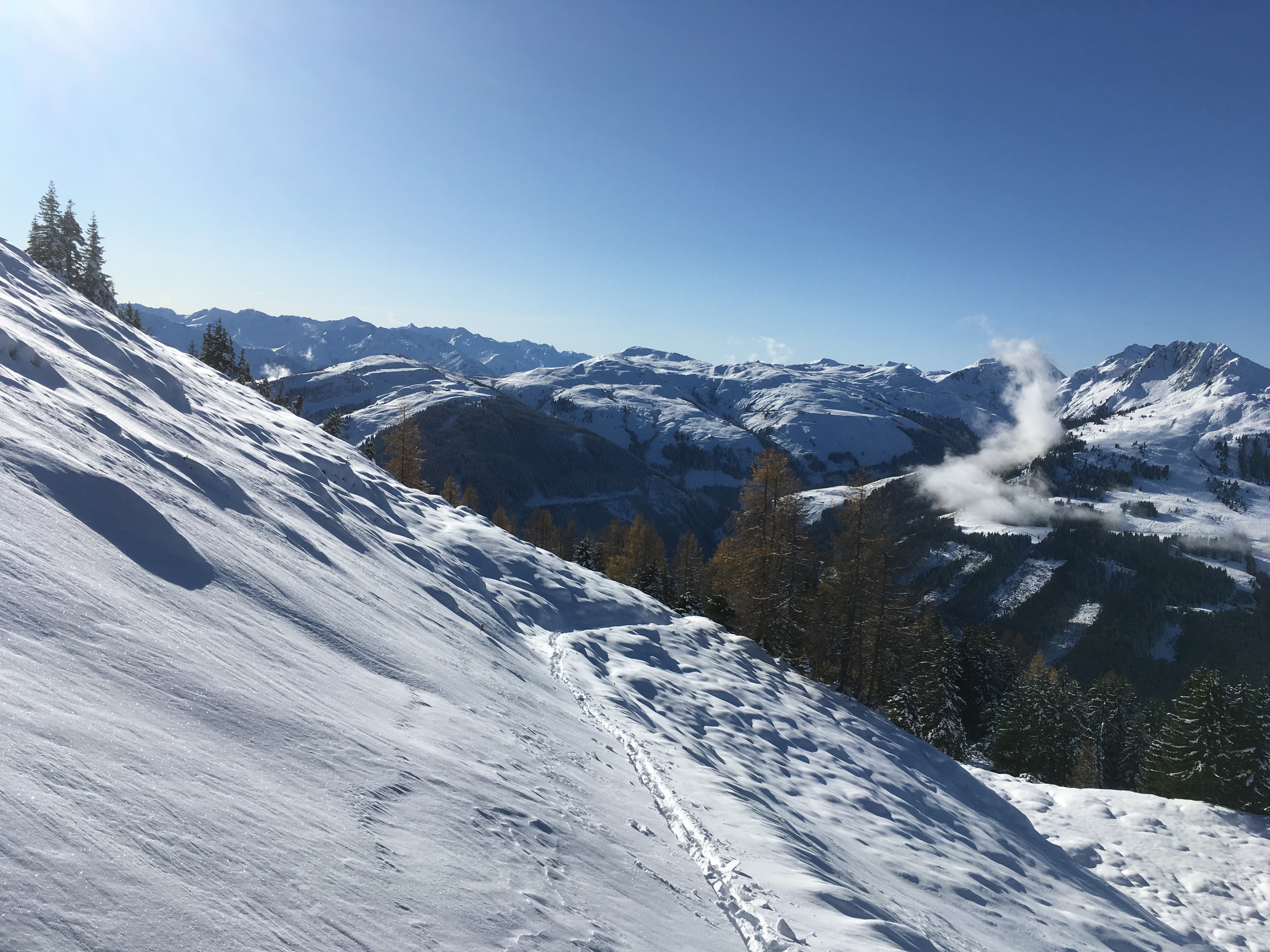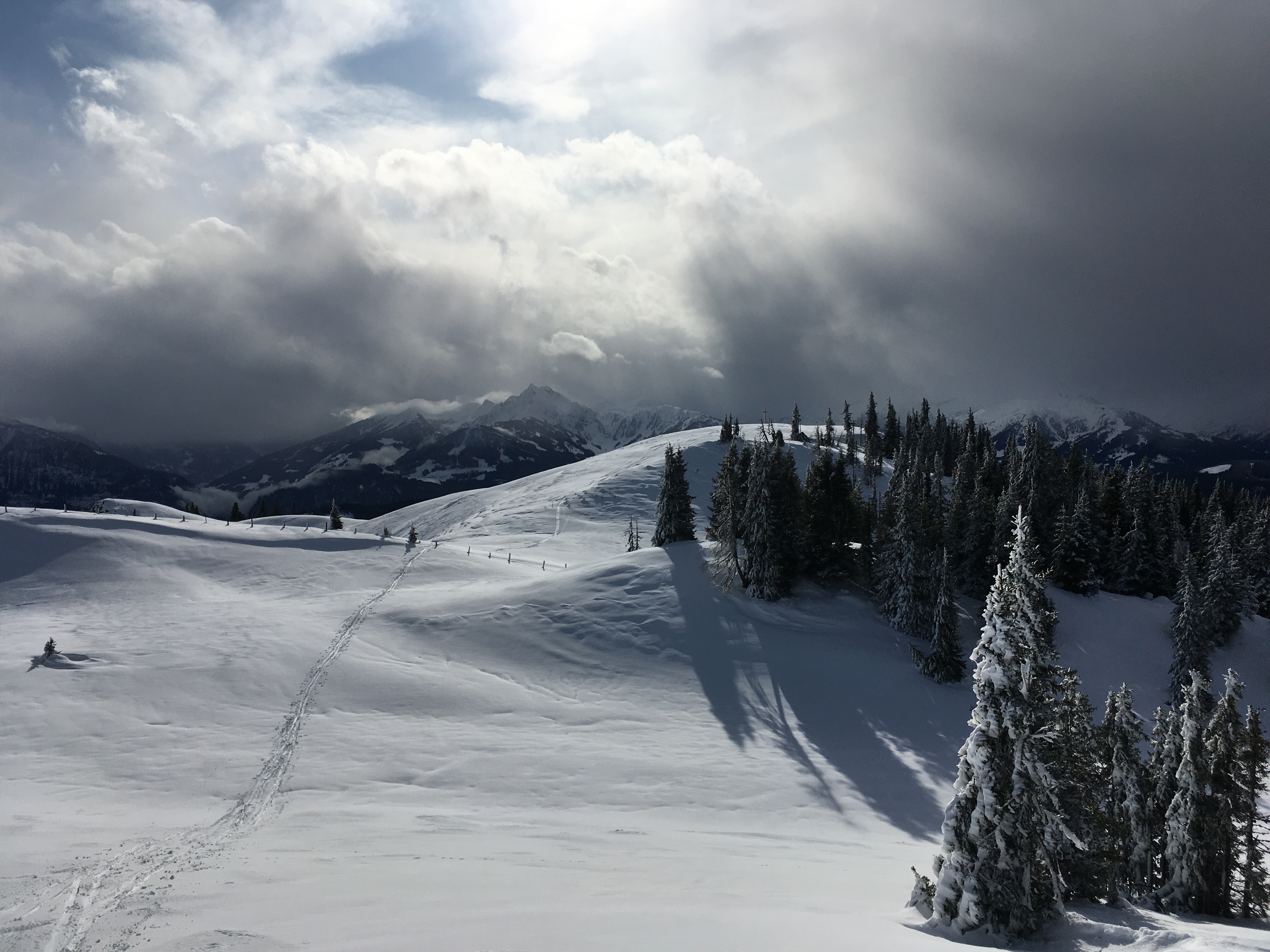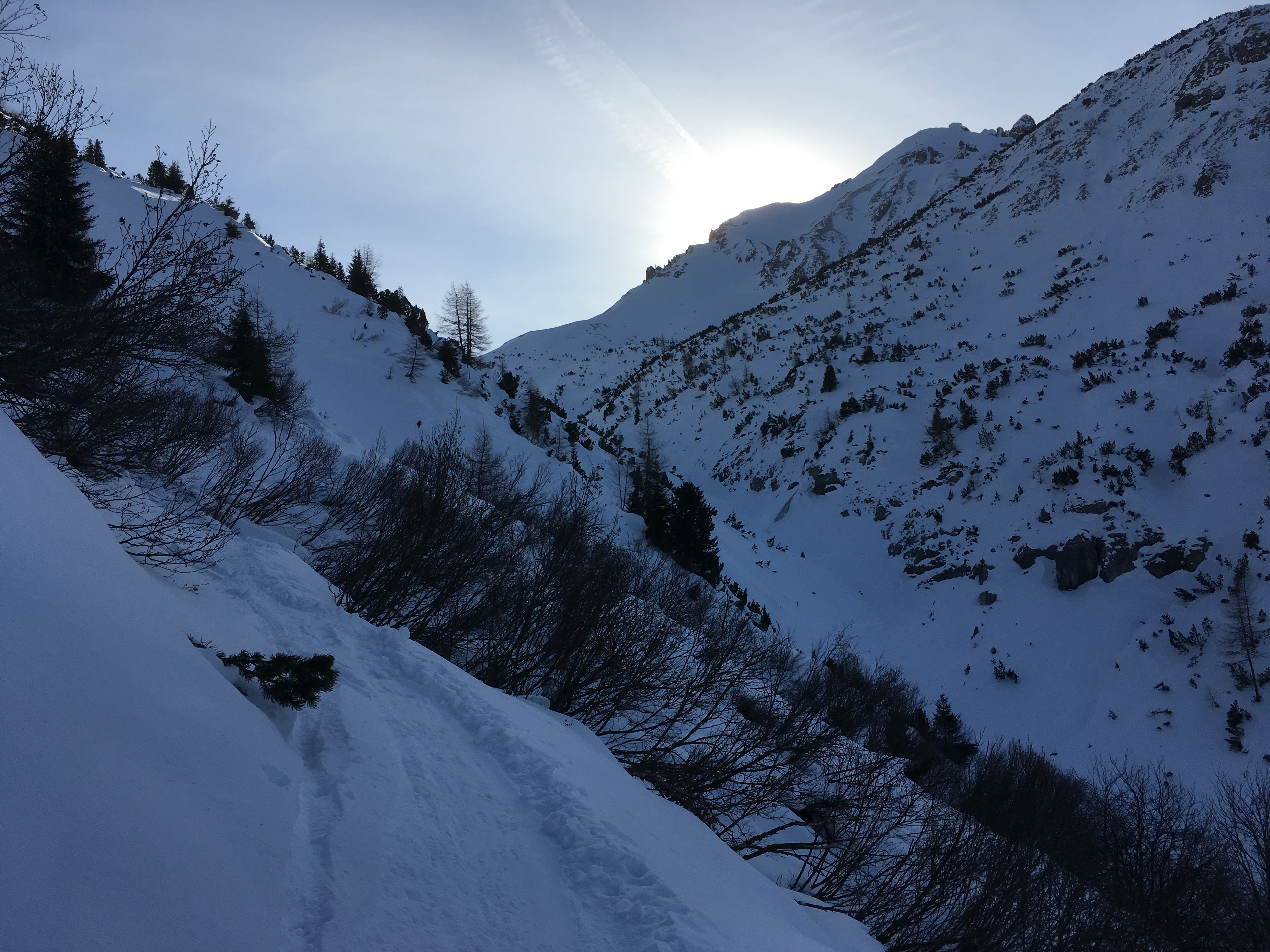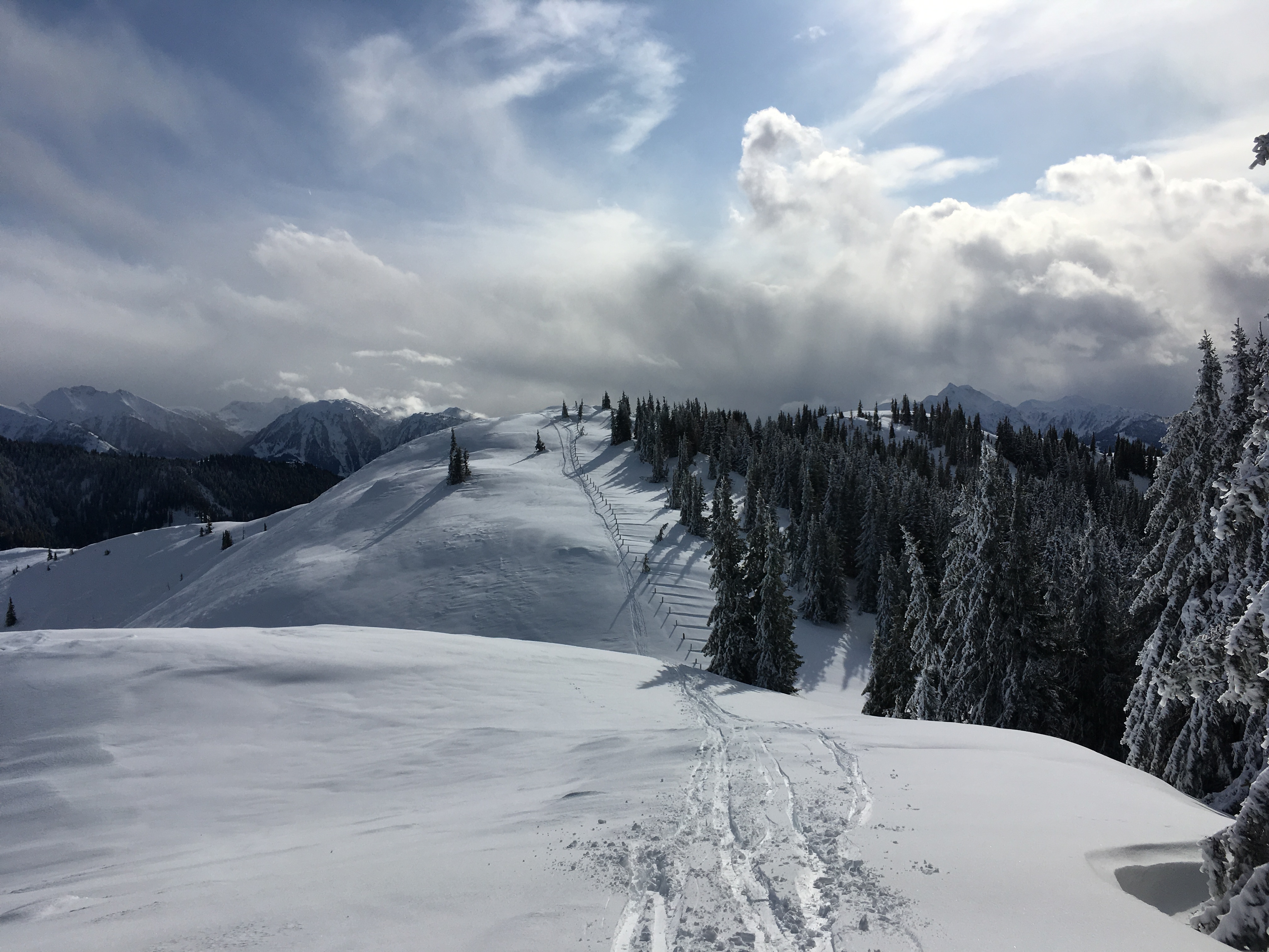Nach der Querung im Bröselfels wieder im guten Skigelände zwischen den Burgställen: