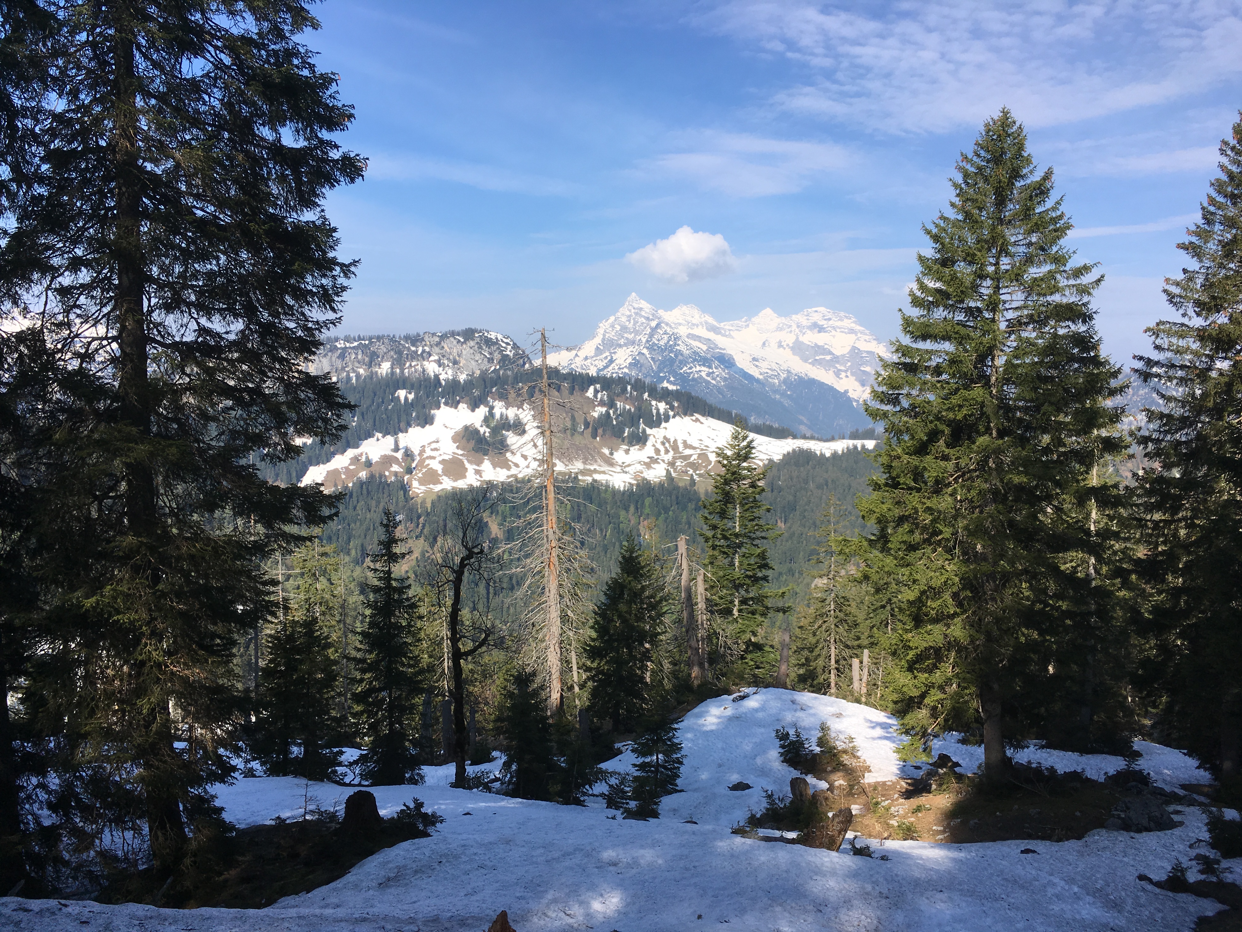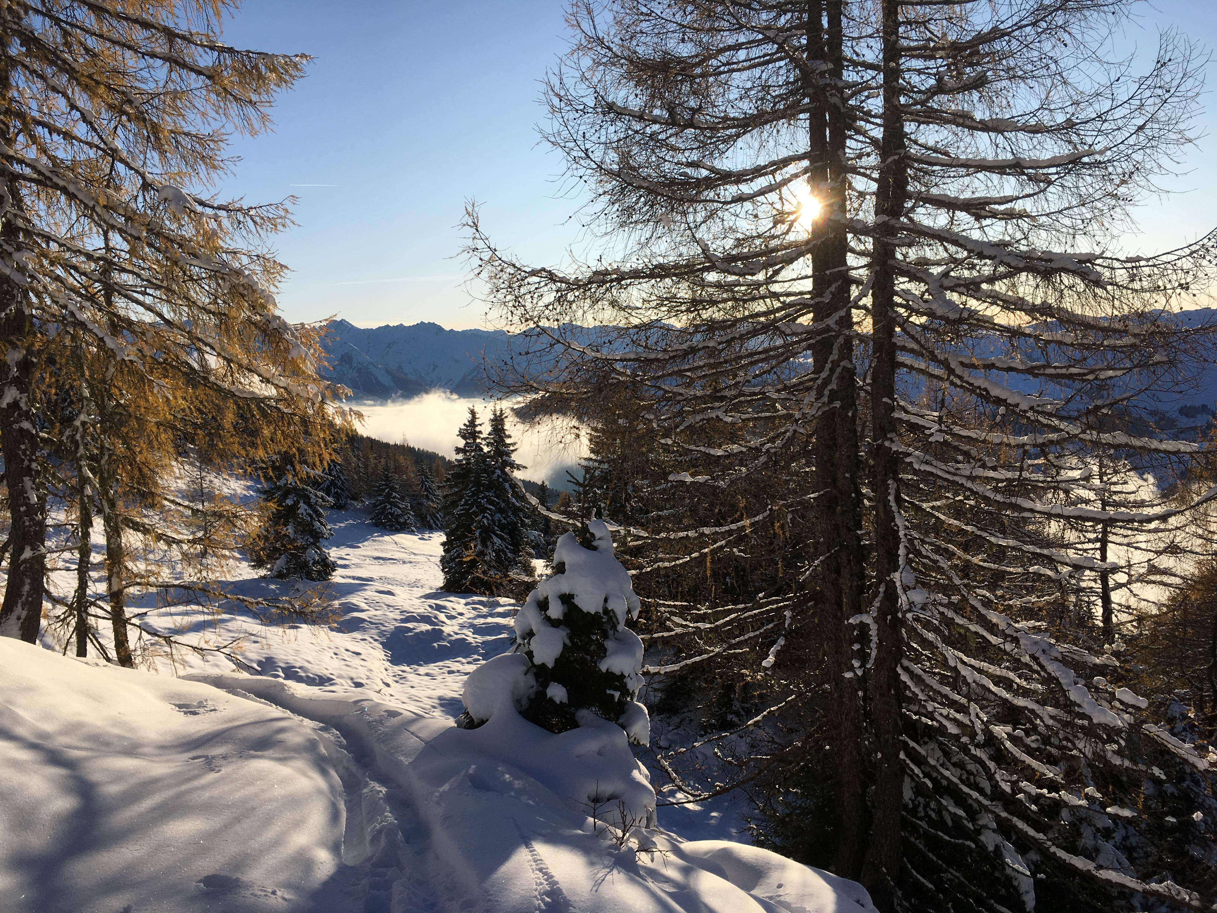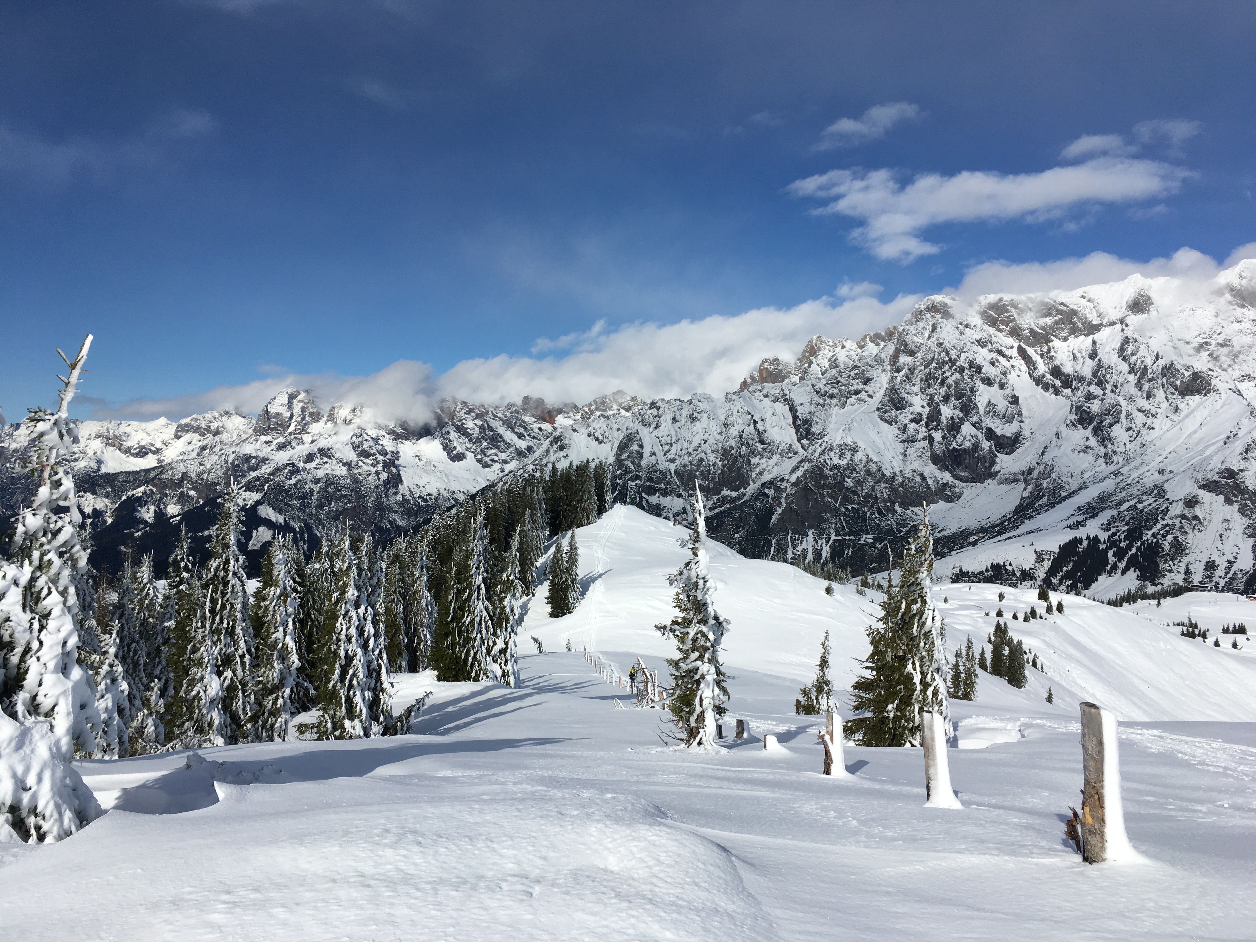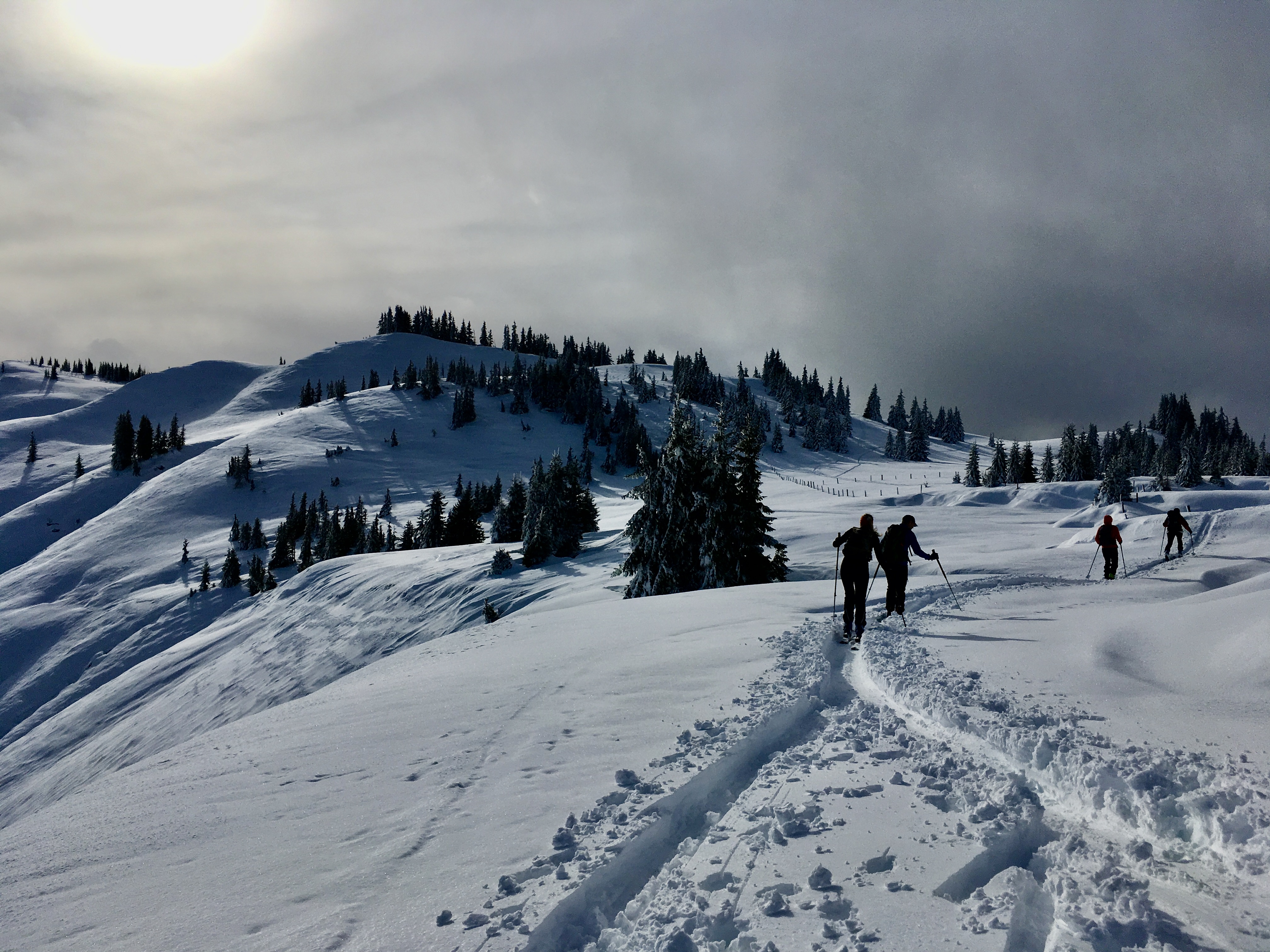 Nach der Querung im Bröselfels wieder im guten Skigelände zwischen den Burgställen:
