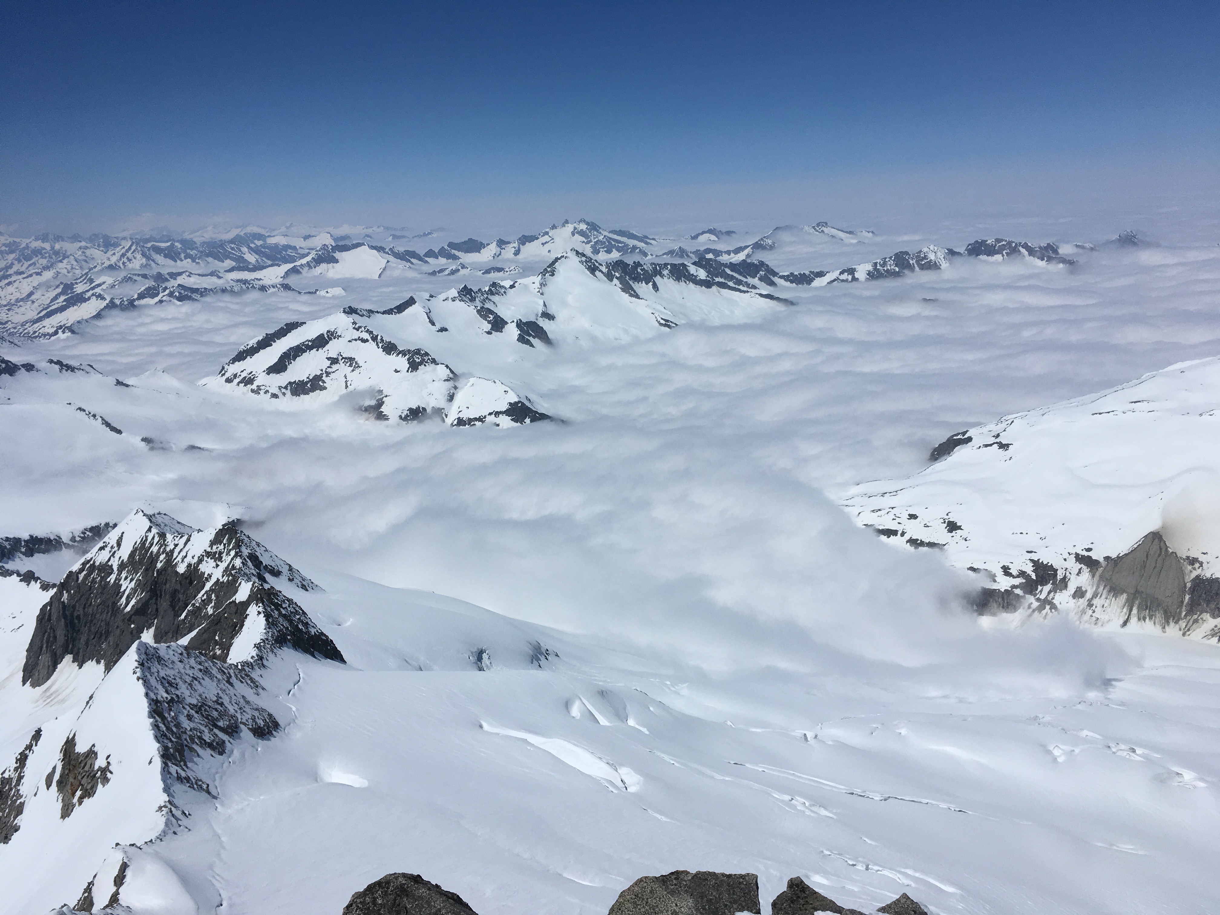 Prognose: geht mit Skiern schon noch ein paar Tage - so langsam beginnt auch dort die Zeit, wo Hochtouren ohne Skier gegangen werden, zur Zeit dürfte es mit Skiern aber noch angenehmer sein (insbesondere wer auf der geöffneten Oberwalderhütte übernachtet)