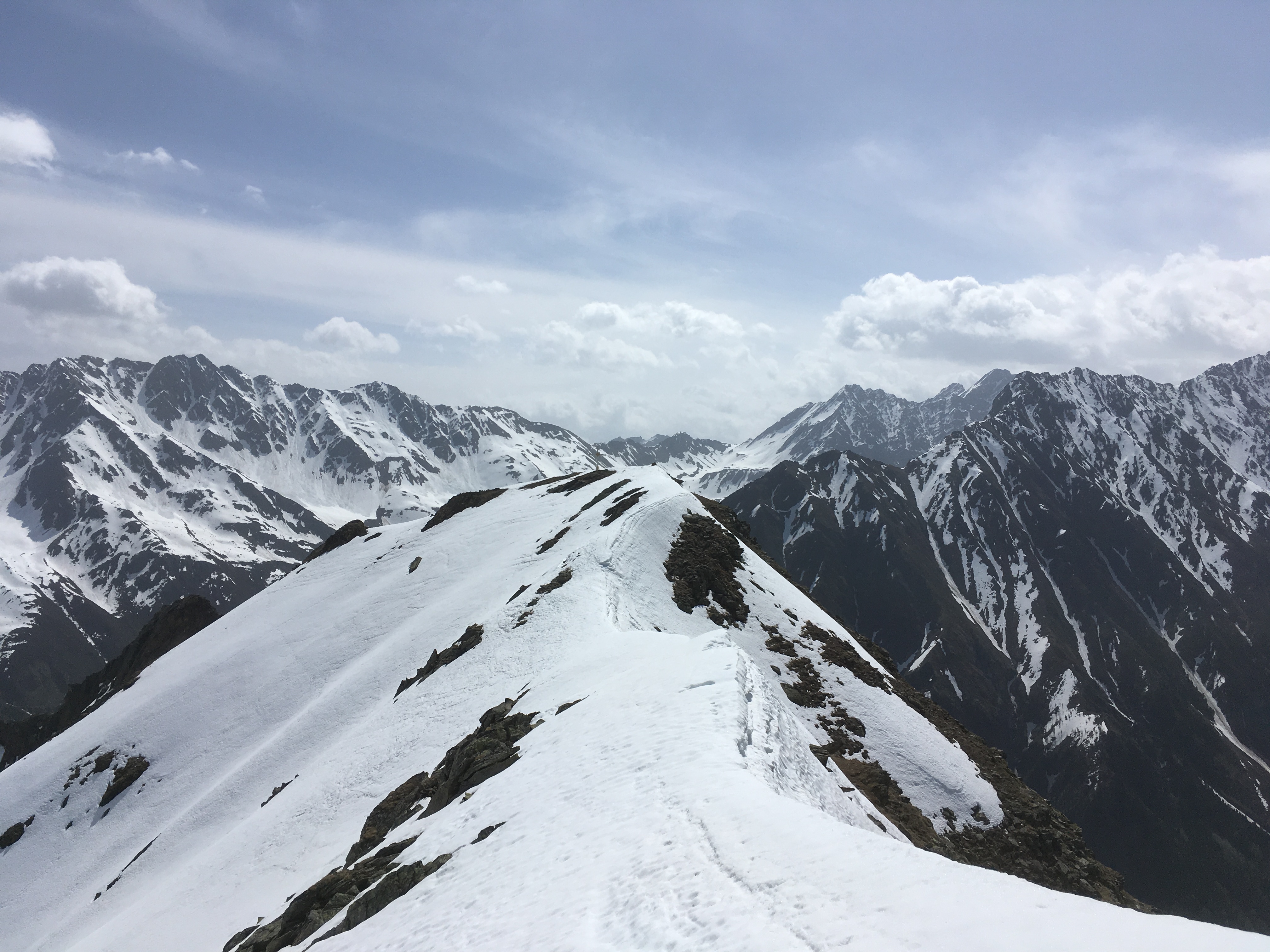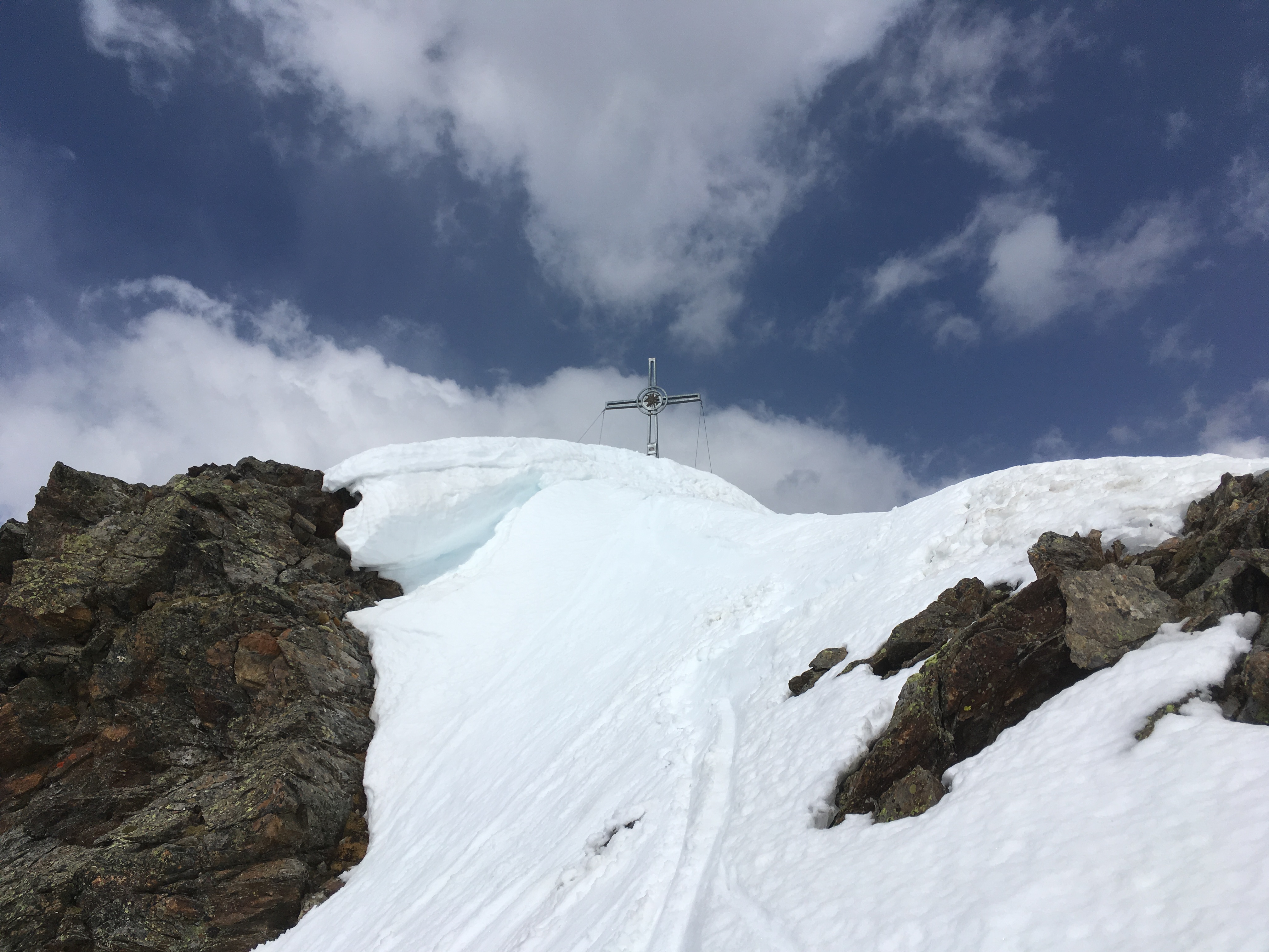 Johannisberg-Nordwand: Noch viel Schnee, Bergschrund kaum sichtbar (durchgehend Schnee), eine Spalte offen im oberen rechten Teil. Ich bin durchgehend mit Skiern aufgestiegen, es wird aber im mittleren Teil und in der Querung zum Nordgrat sehr steil. Problem ist, dass sich kleinräumig sehr hartes Blankeis unter ca. 5 cm Schnee befindet, der sofort abrutscht. Ich querte daher vorsichtig zum N-Grat - wer die Nordwand-Direttissima machen will, sollte unbedingt schon recht weit unten auf Steigeisen (keine Leichtsteigeisen) und Eisgeräte wechseln, auch wenn da noch keine Veranlassung dafür ist; weiter oben ist es zu steil für einen angenehmen Materialwechsel. Ab Erreichen des N-Grates ging es problemlos mit Skiern etwas unter diesem zum Gipfel. Man könnte auch unschwierig im Fels hochkraxeln.
