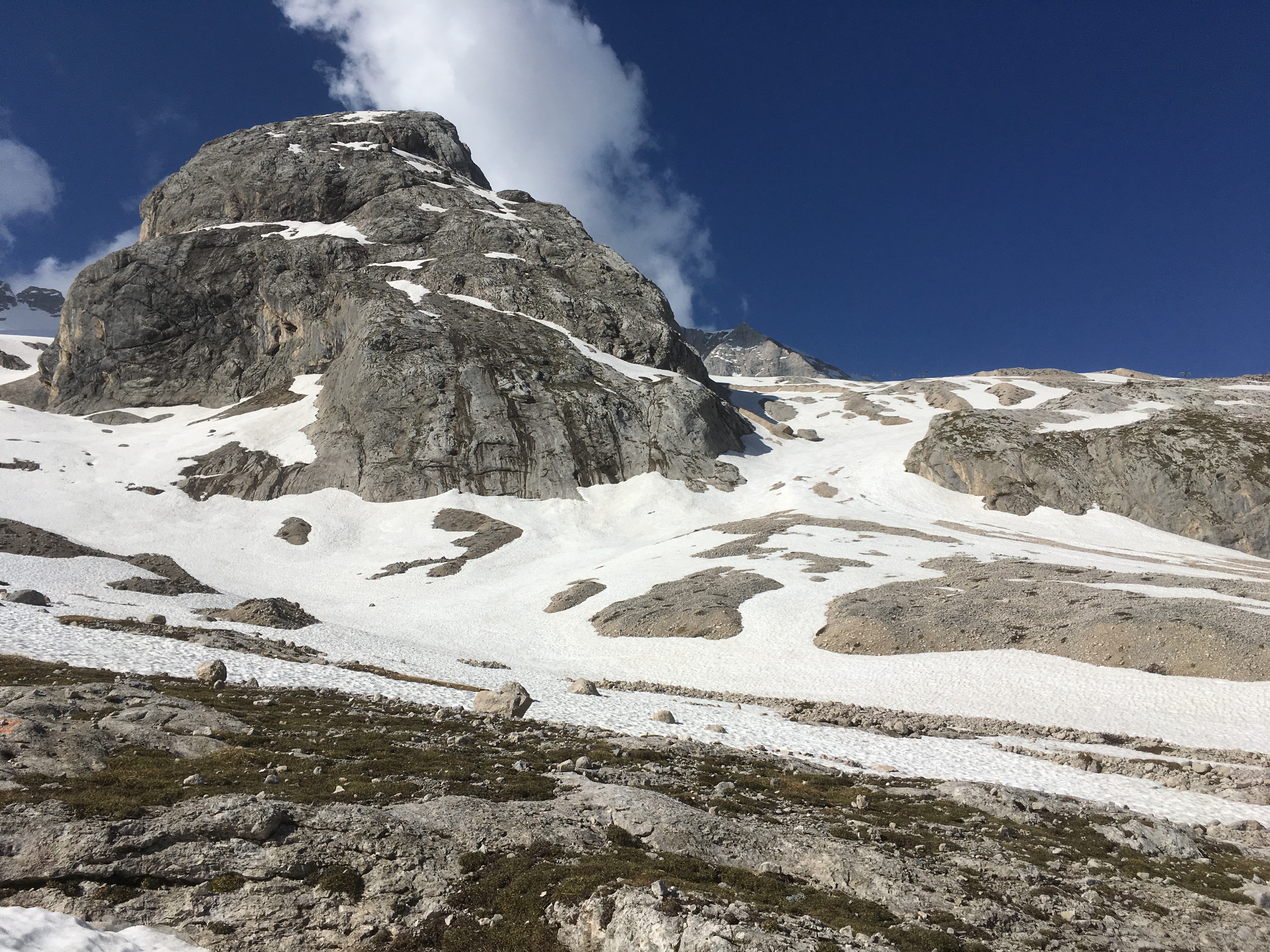 Sonstiges: Gestern gab es noch einmal eine Skihochtour in dem in diesen Frühsommer nicht sehr schneereichen Glocknergebiet (Oberer Pasterzenboden noch ordentlich Schnee, ansonsten Untere Pasterze und Hofmannskees schon recht aper - soweit sichtbar auch das Leitl am Großglockner). Die Route über den Gamsgrubenweg zieht sich, es ist auch der letzte Tunnel noch nicht geöffnet und dadurch muss ein steiles Schneefeld umgangen werden (gute Tritte). Wir sind zum Oberen Pasterzenboden unter den Felsen des Großen Burgstall gequert, aber so muss man ca. 20 Hm abklettern / queren im bröseligen Gelände. Besser ist es wohl, sich schon am Ende des Gamsgrubenweges über die Schneefelder zu dem Einschnitt zwischen Mittlerem und Großem Burgstall zu orientieren und ca. 50 Hm Höhenverlust in Kauf zu nehmen (so unser Rückweg, durchgehend mit Skiern). Am Gletscher sind außerhalb des Gletscherbruchs noch kaum Spalten zu sehen, es ging aber über einige drüber - angesichts der Jahreszeit und der warmen Temperaturen seit langem gingen wir durchgehend angeseilt, würde ich auch anraten, wenn möglich.