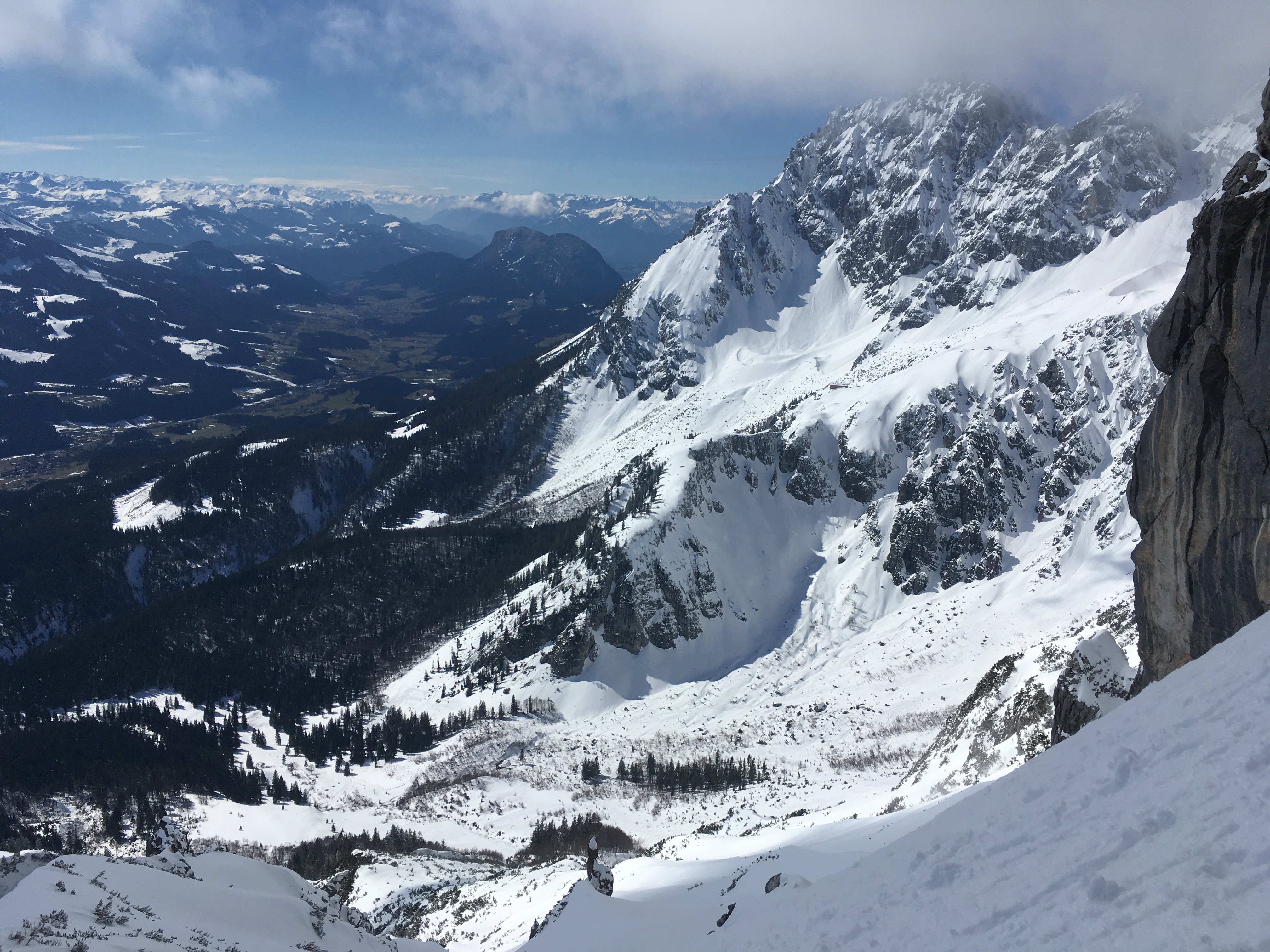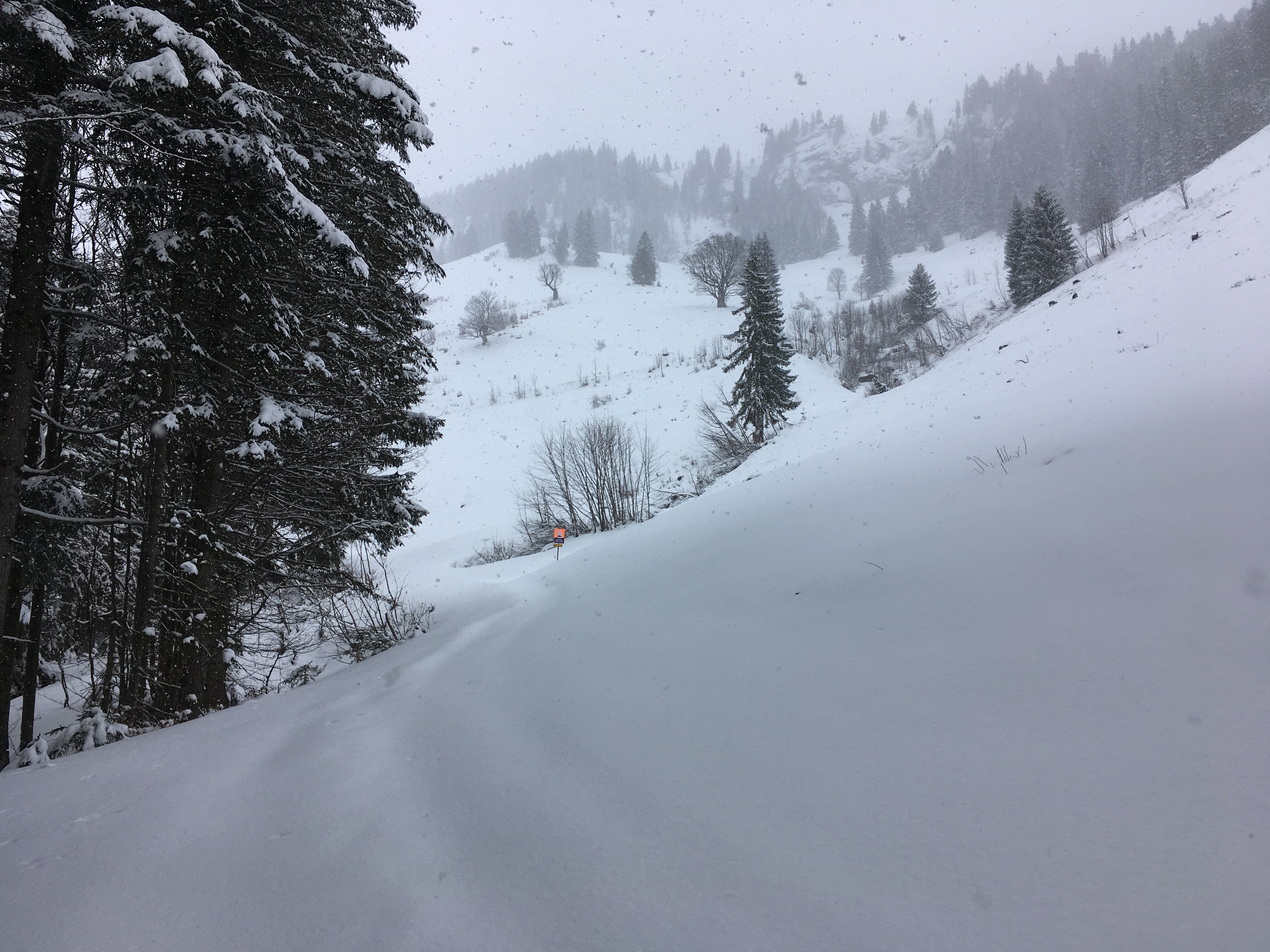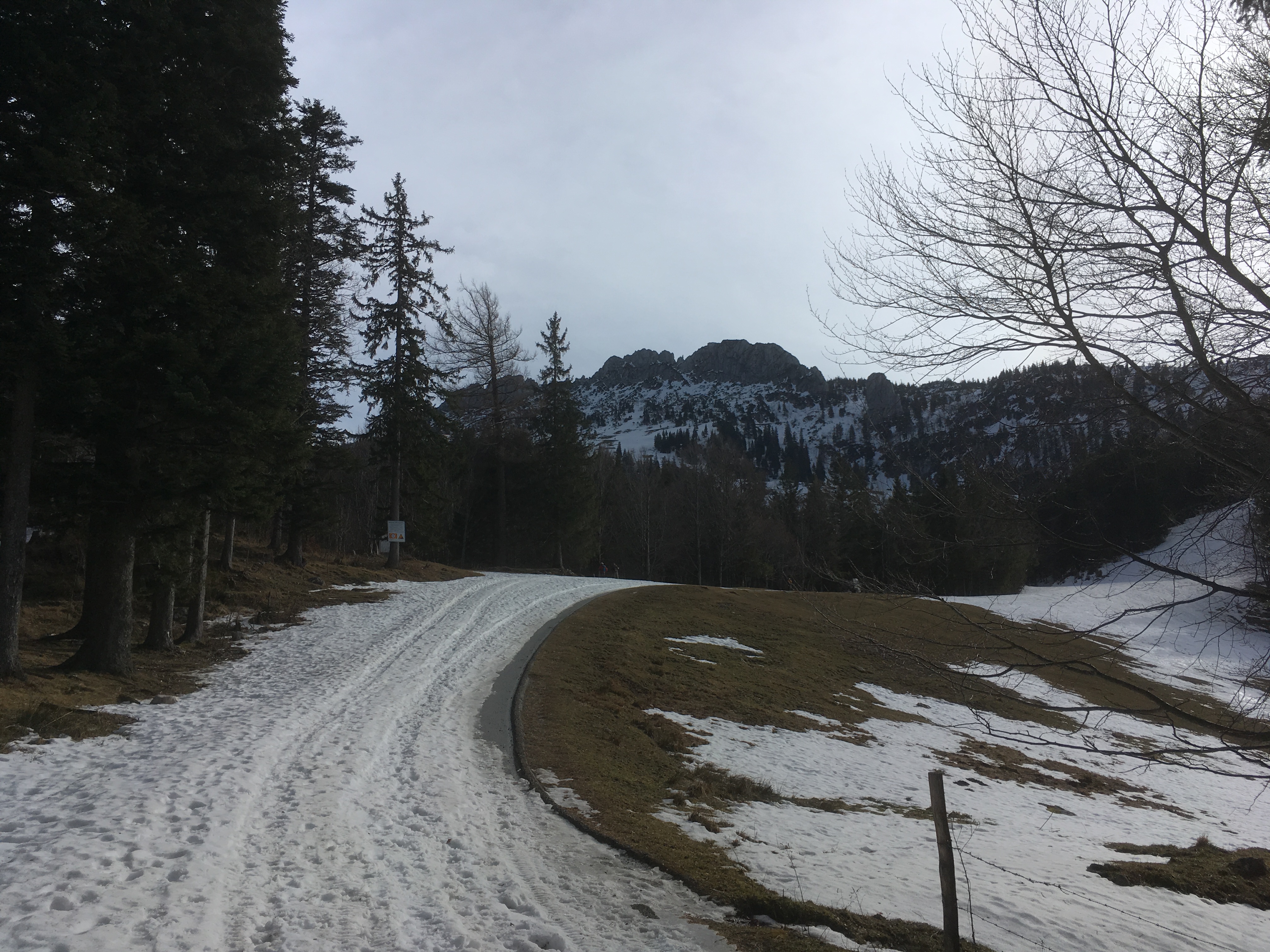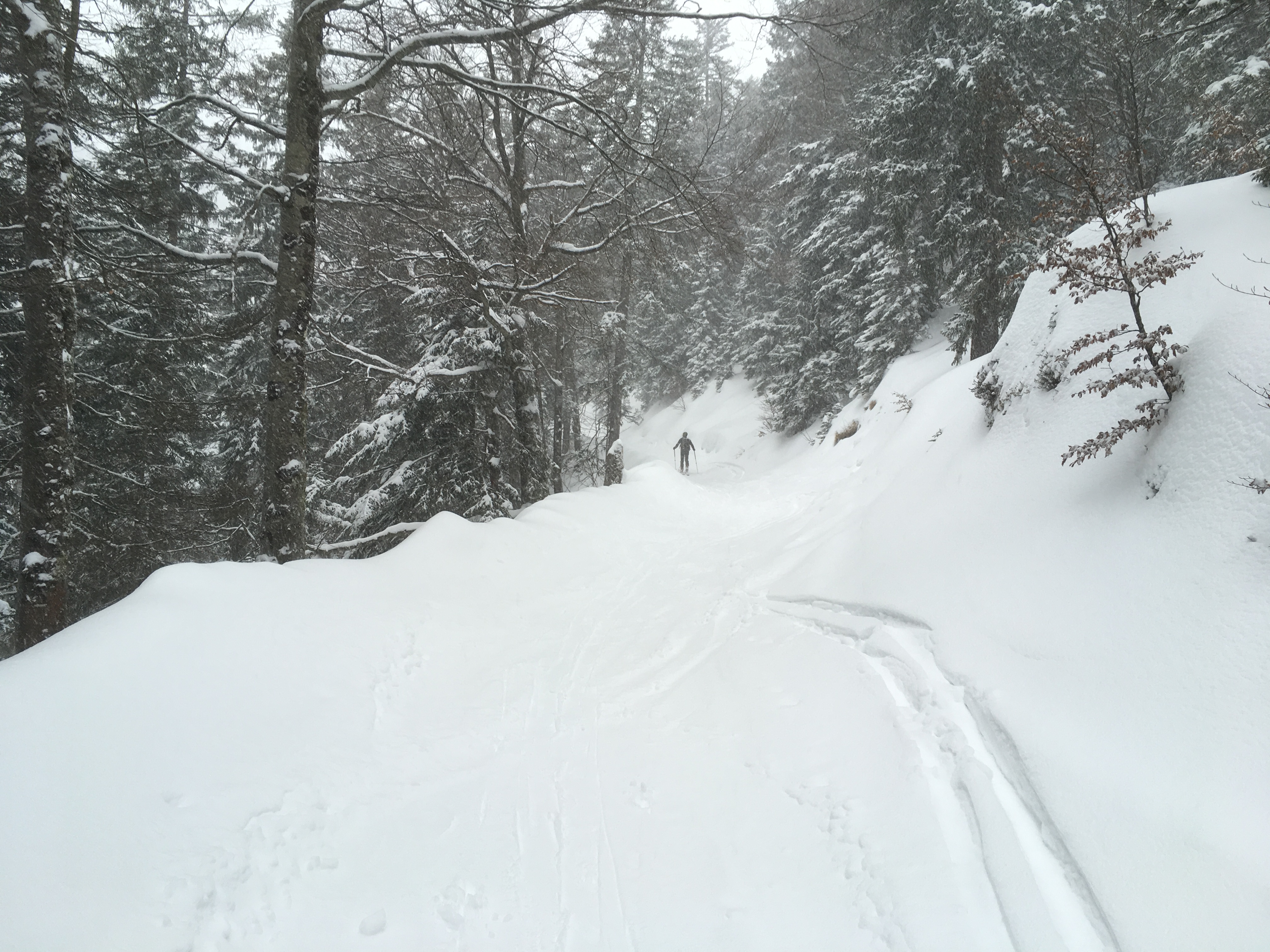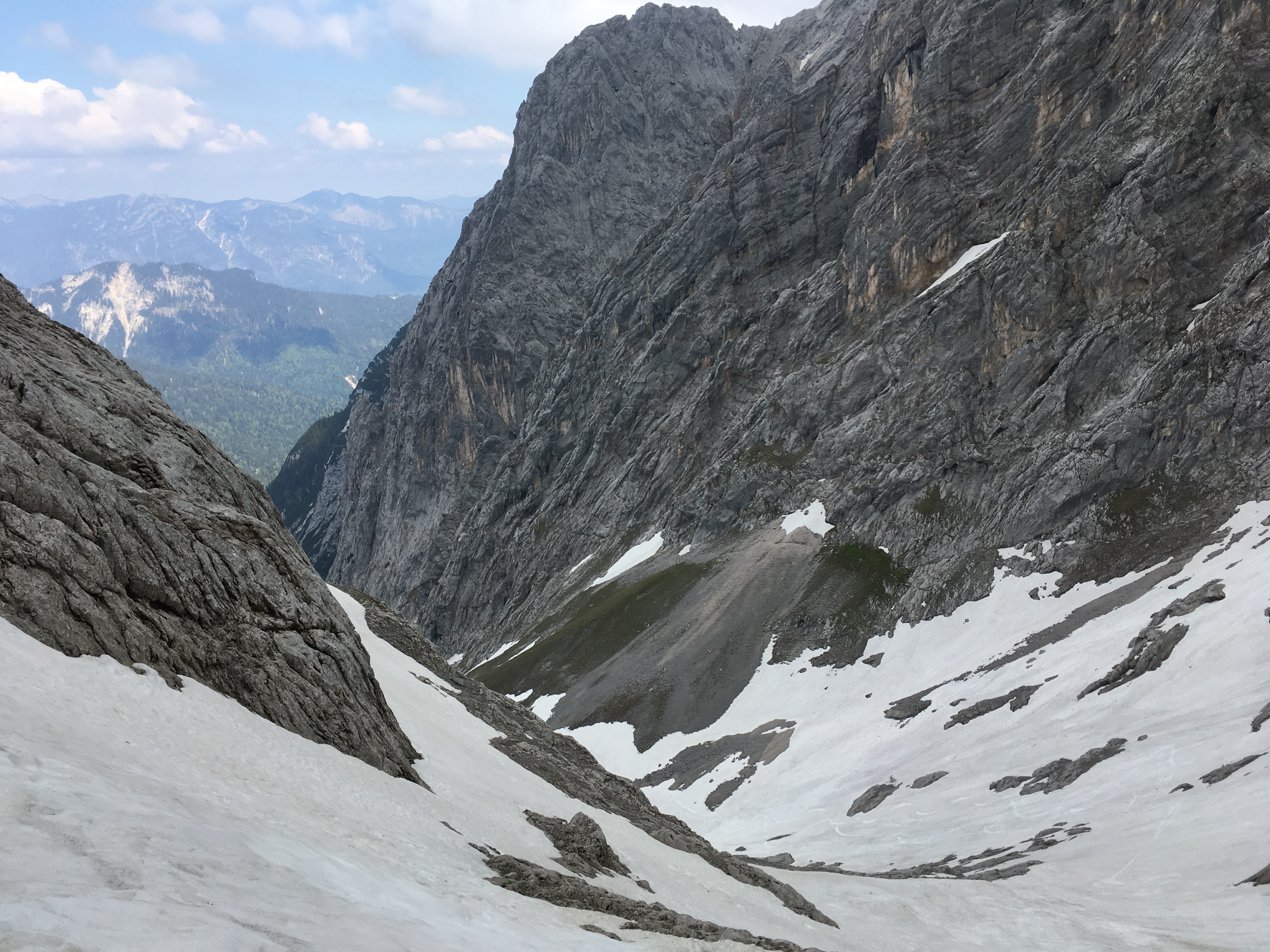 Typisches Gelände I im ersten Teil des Mainzer Höhenwegs: Eine Kombination aus Schneefeldern und Felsstufen: