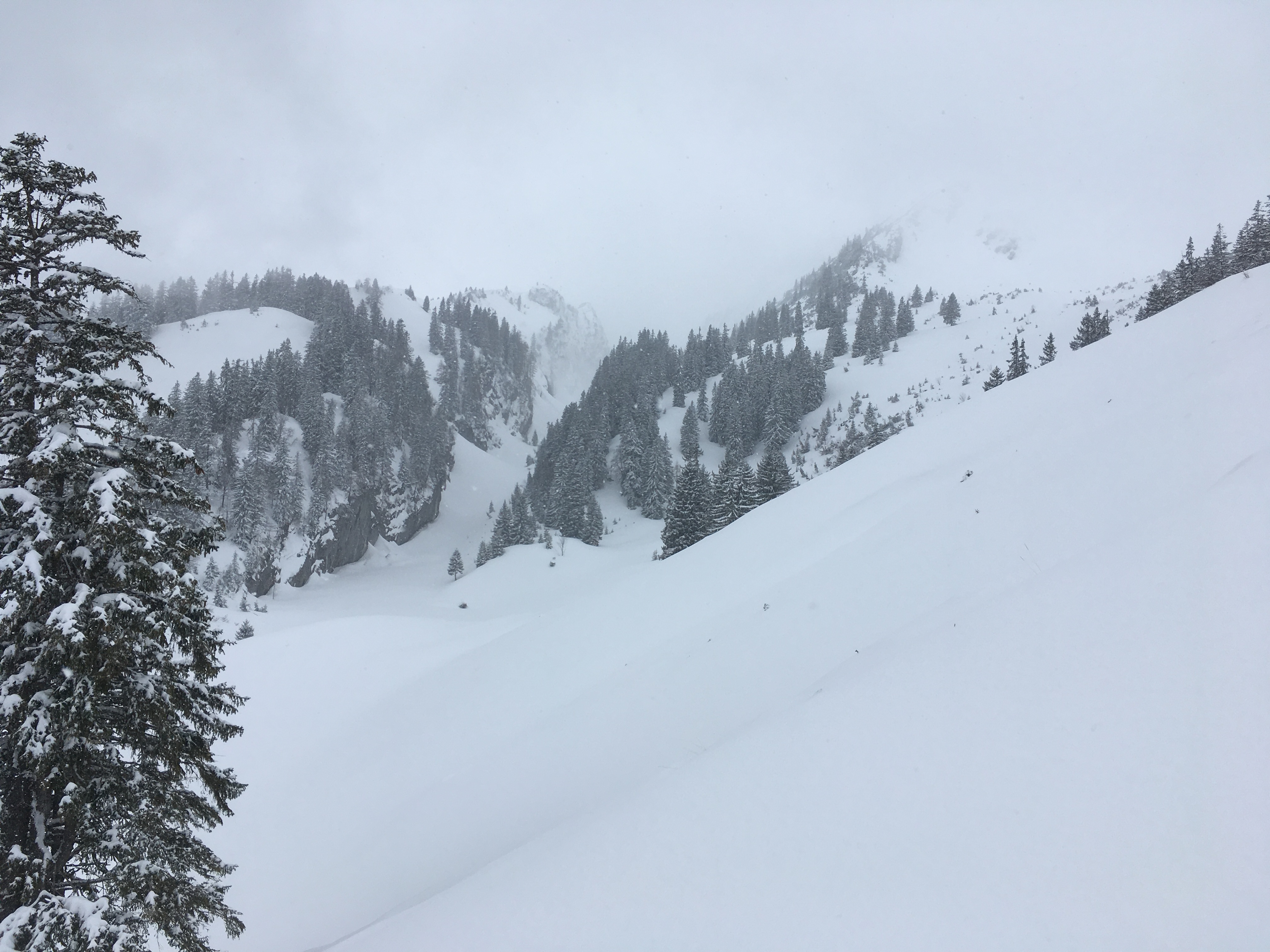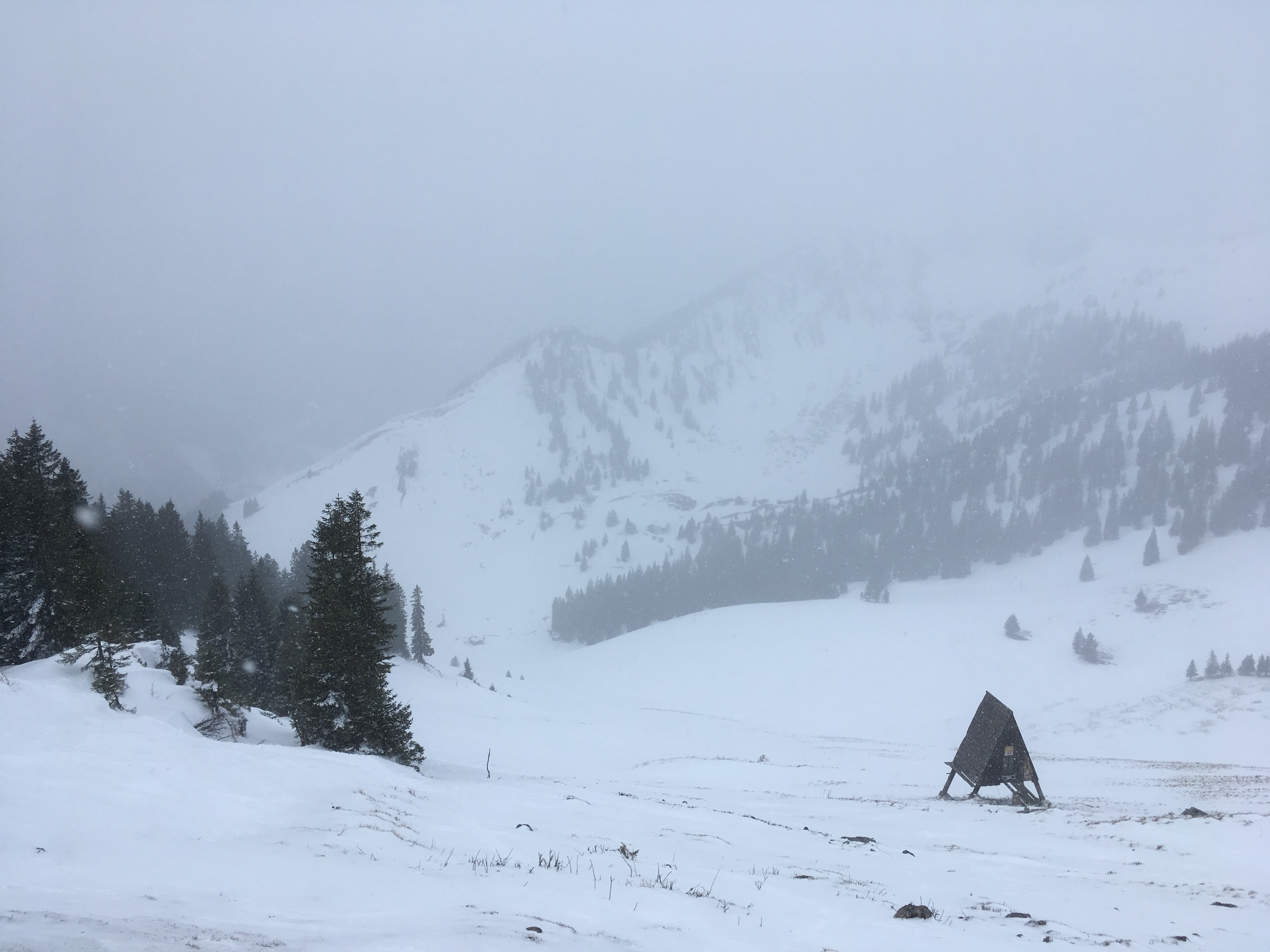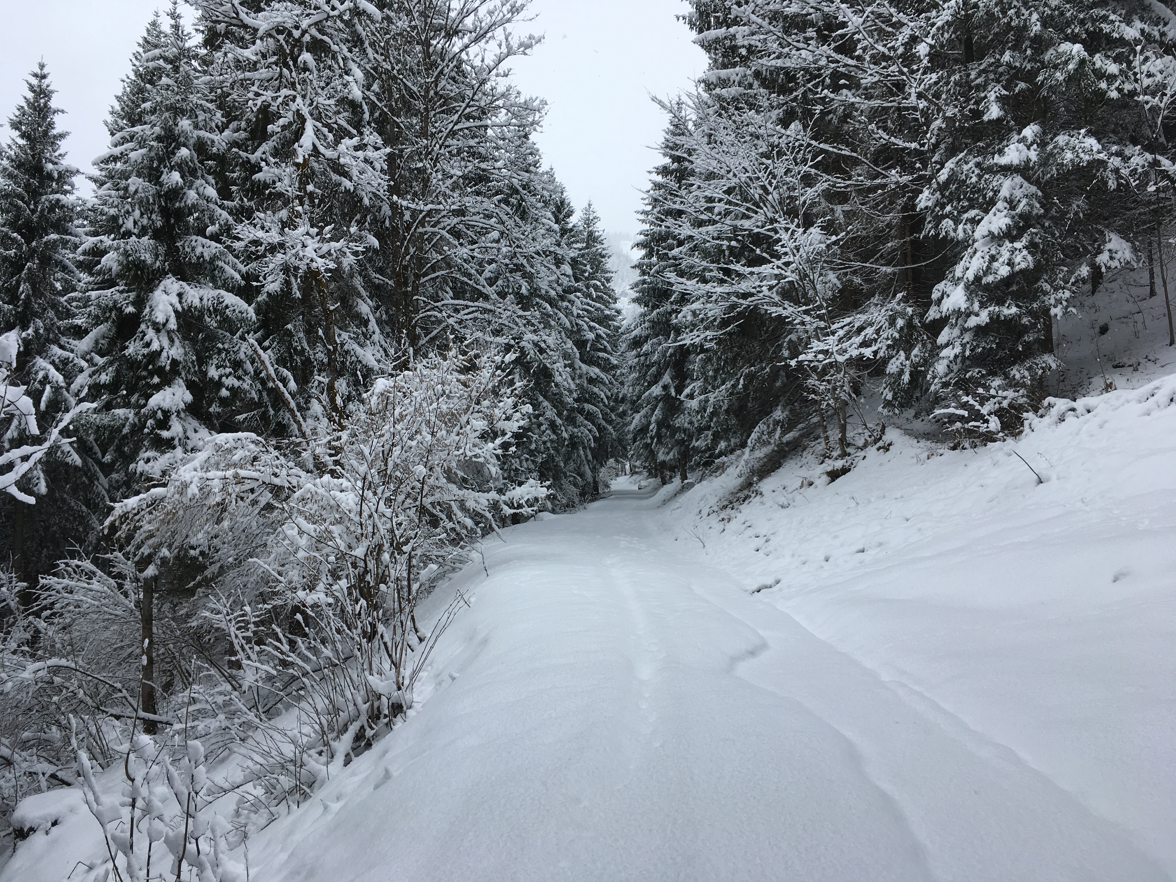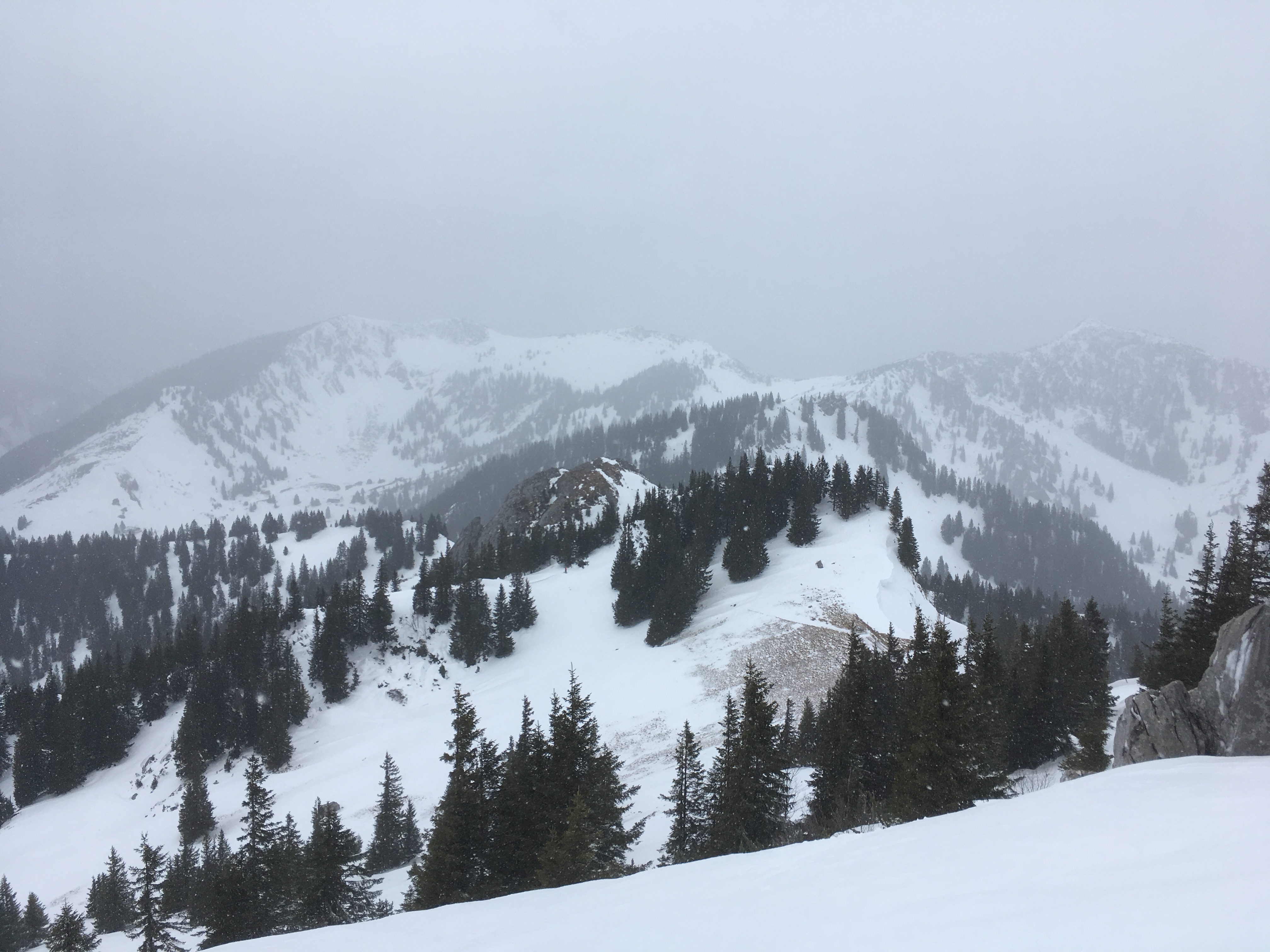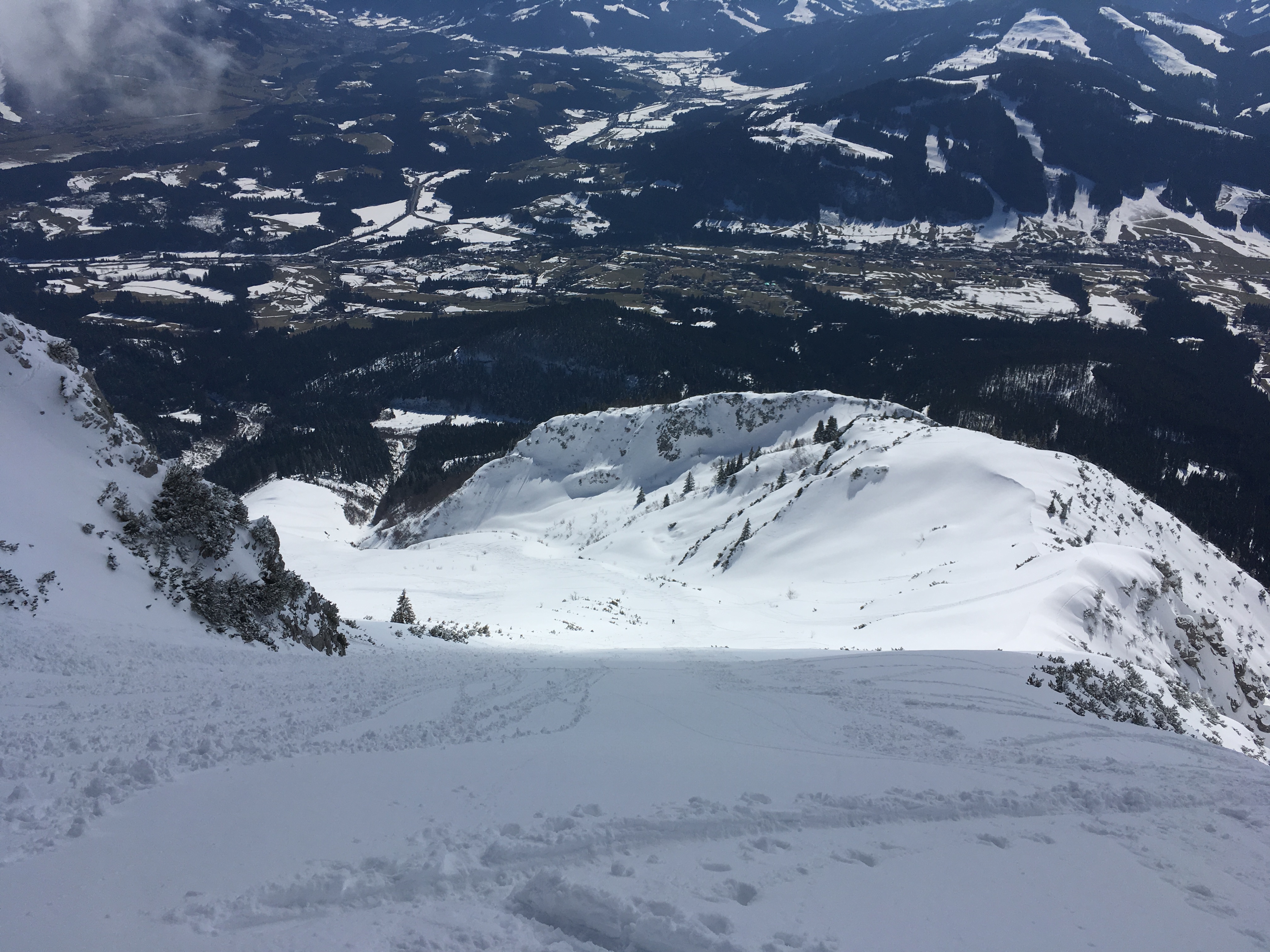 Typisches Gelände I im ersten Teil des Mainzer Höhenwegs: Eine Kombination aus Schneefeldern und Felsstufen: