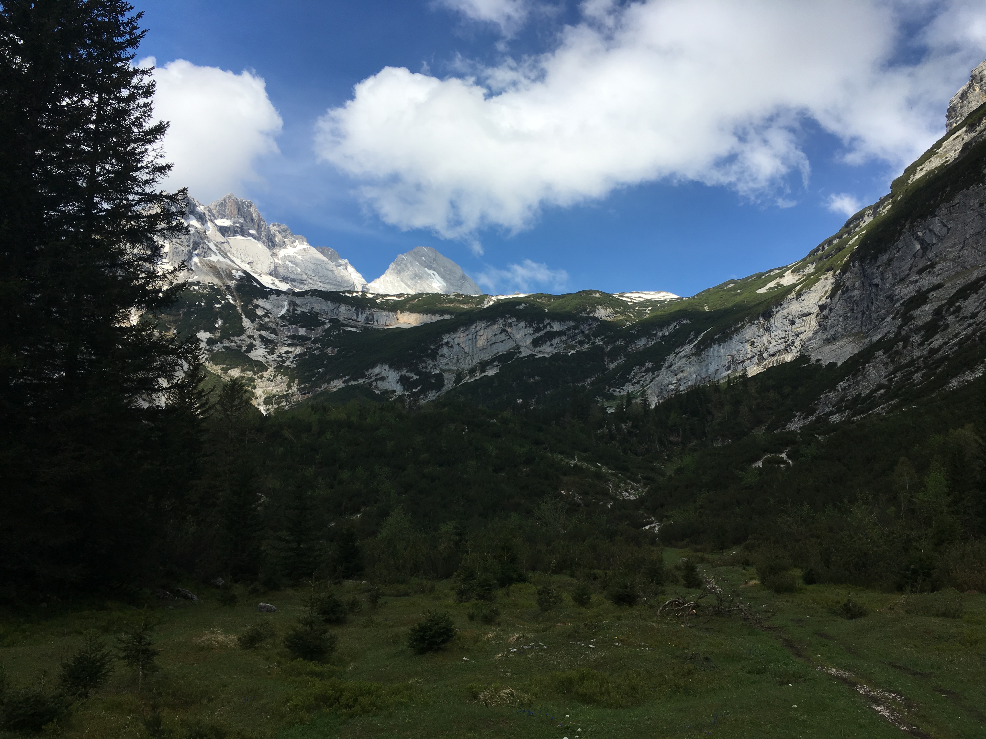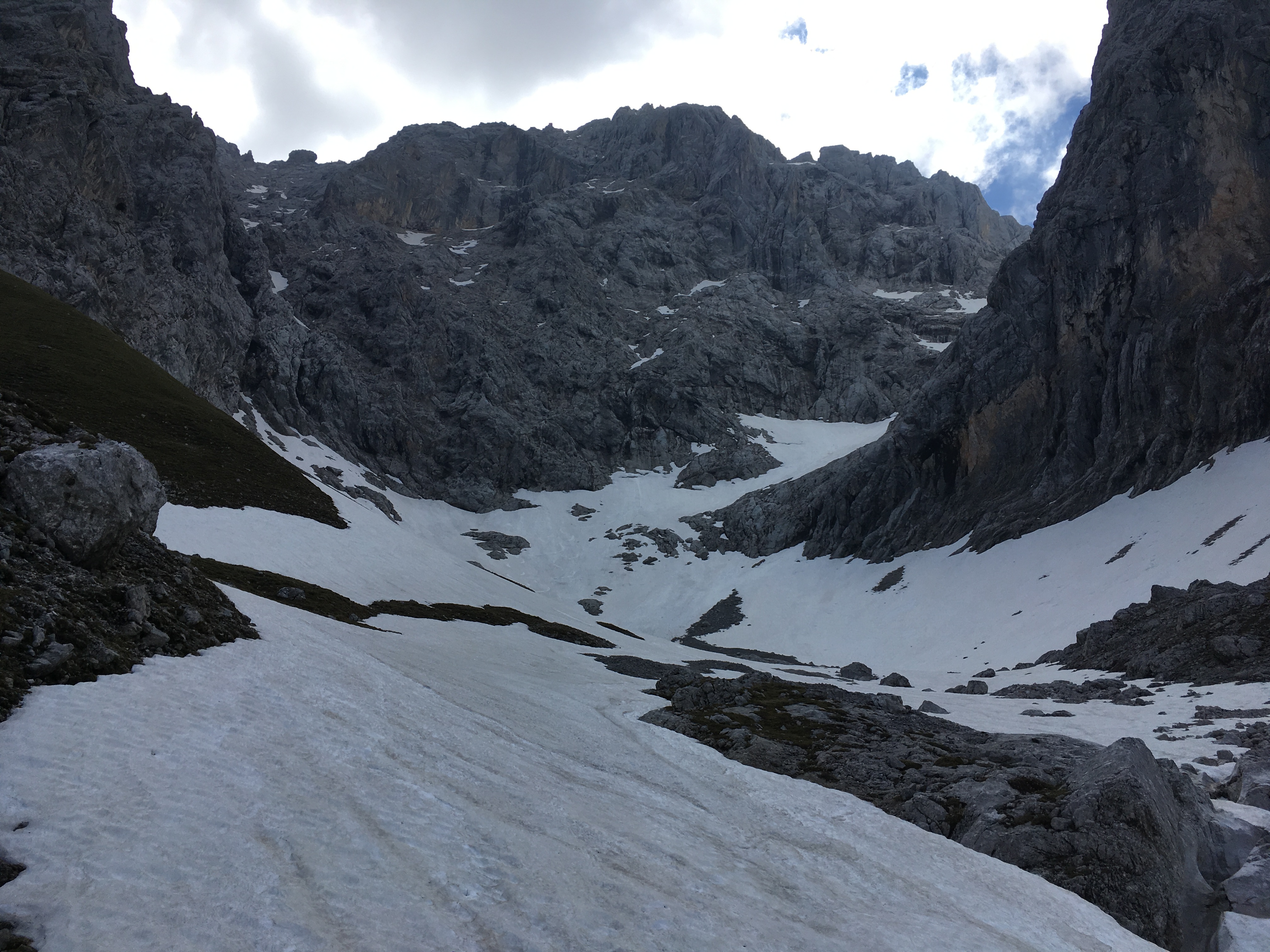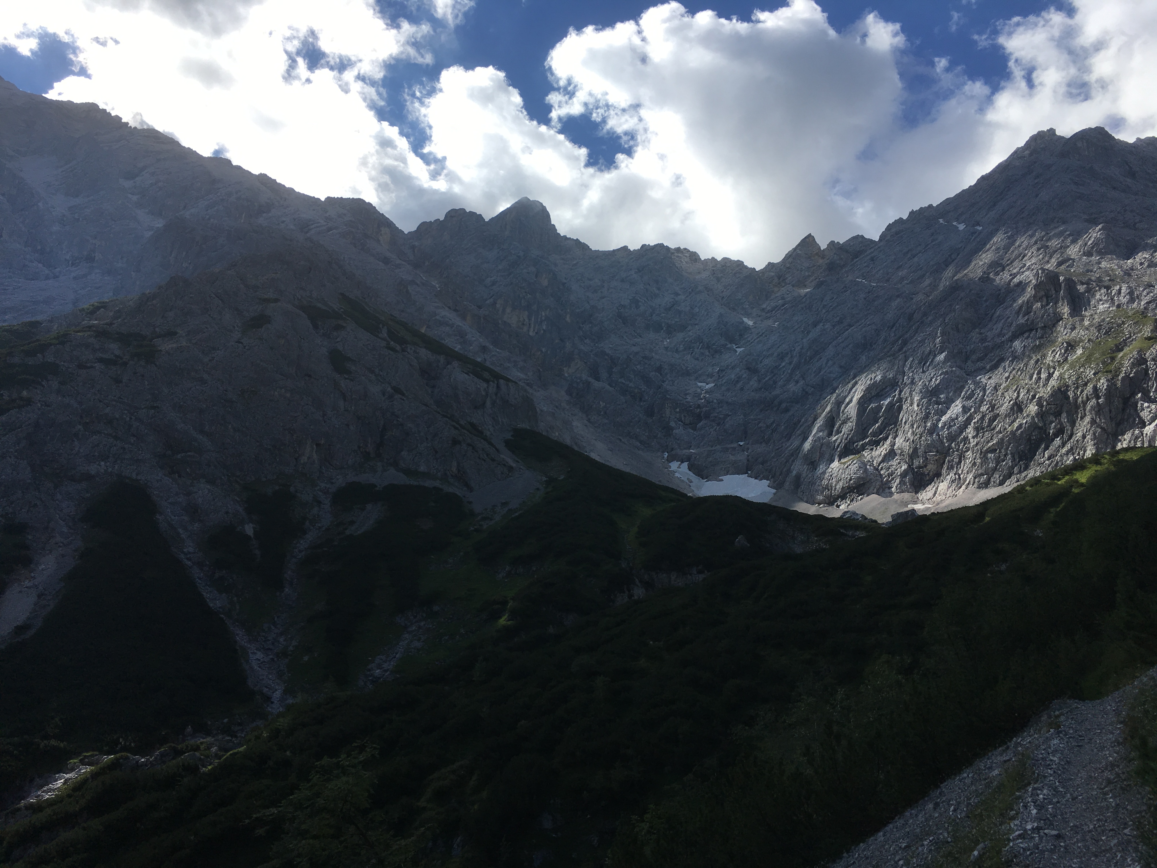 Ab dem Radldepot hinter der Hinteren Pollesalm geht es auf einer markierten Route (meistens kein angelegter Steig) hoch zum Weißmaurachjoch. Der eigentliche Mainzer Höhenweg ist auf der Seite der DAV-Sektion Mainz sehr gut beschrieben - ich verweise darauf. Vor dem Anstieg zum Wassertalkogel gäbe es auch noch einen Zwischenabstieg zurück in das Pollestal. Ich bin aber die Route durchgegangen und vom Abzweig des Normalwegs hinab in das Pollestal noch etwas weiter Richtung Polleskogel, den Rest kannte ich ohnehin schon. Trotz eines ausgebauten Weges (bis ca. 2.250 m) bietet das Pollestal eine recht wilde Umgebung.