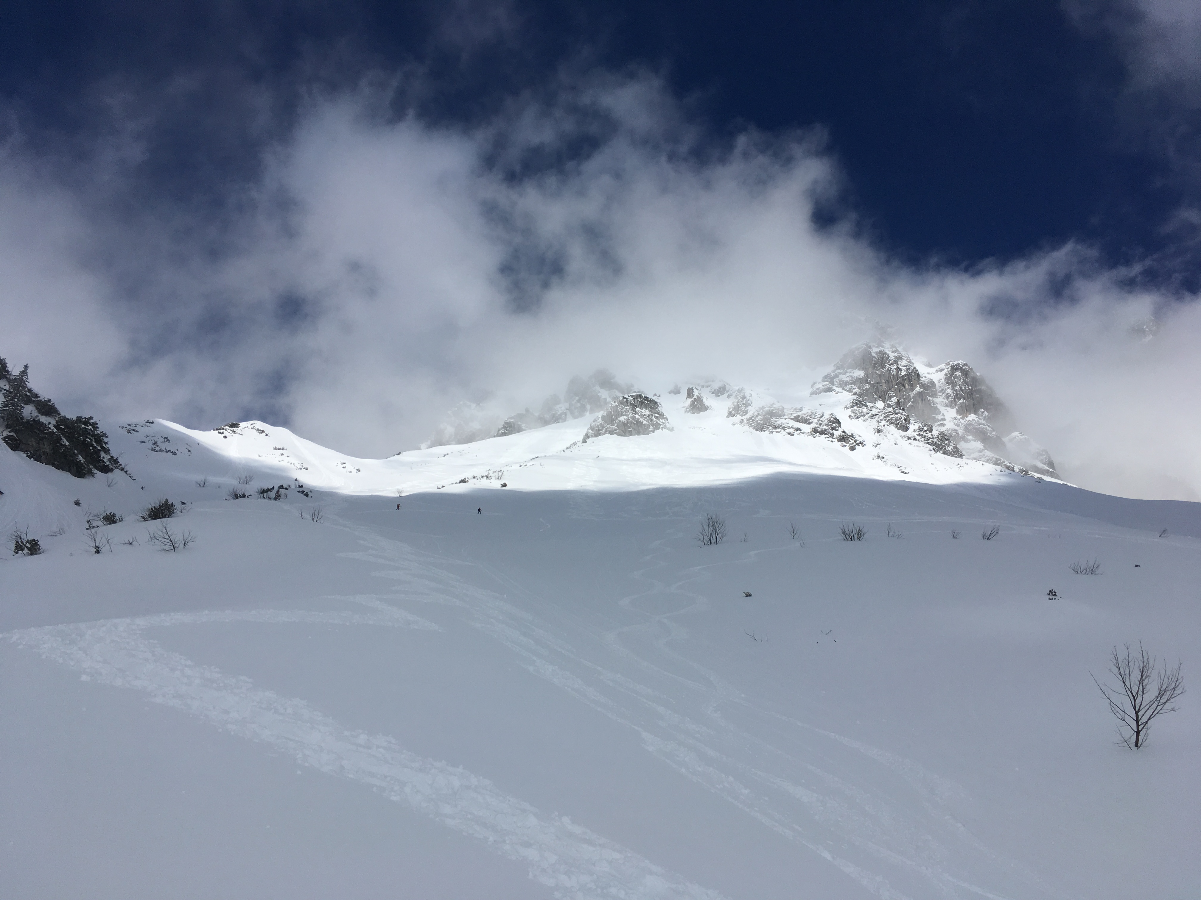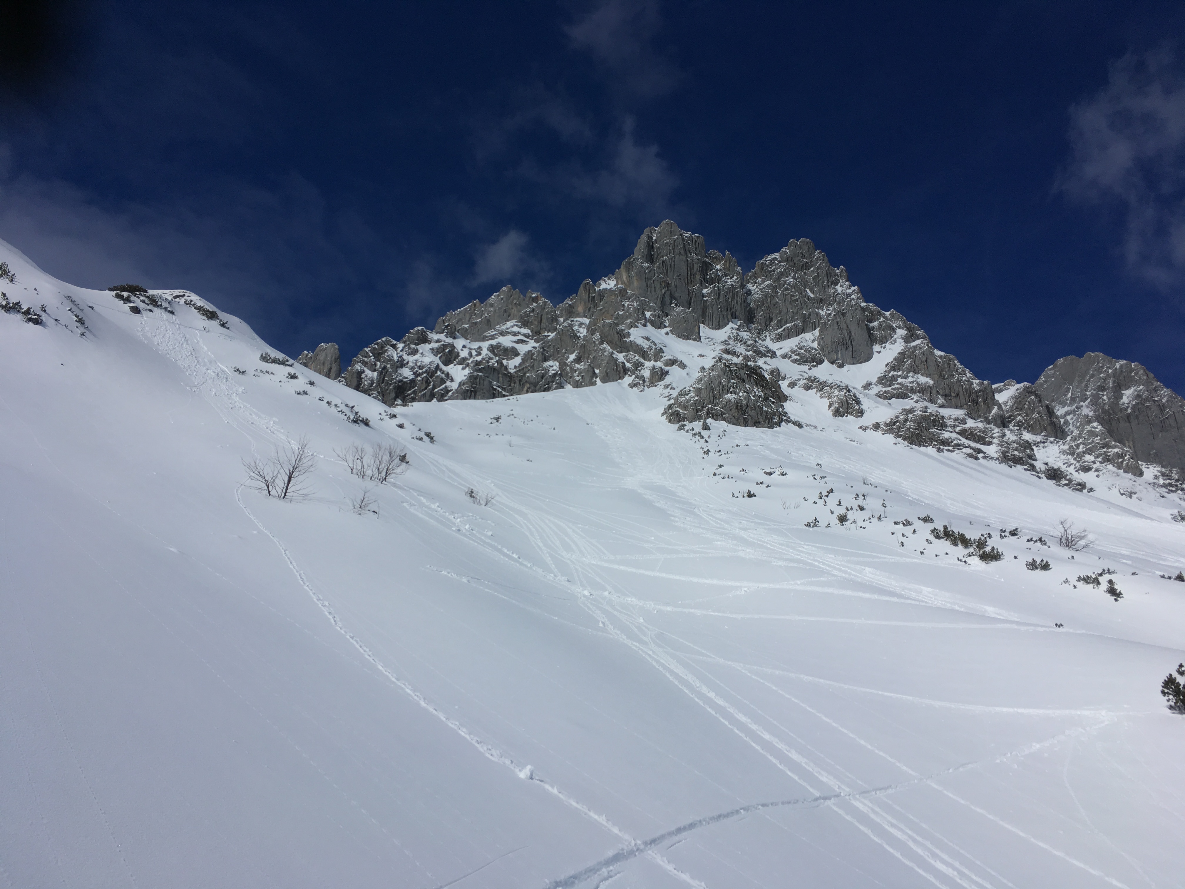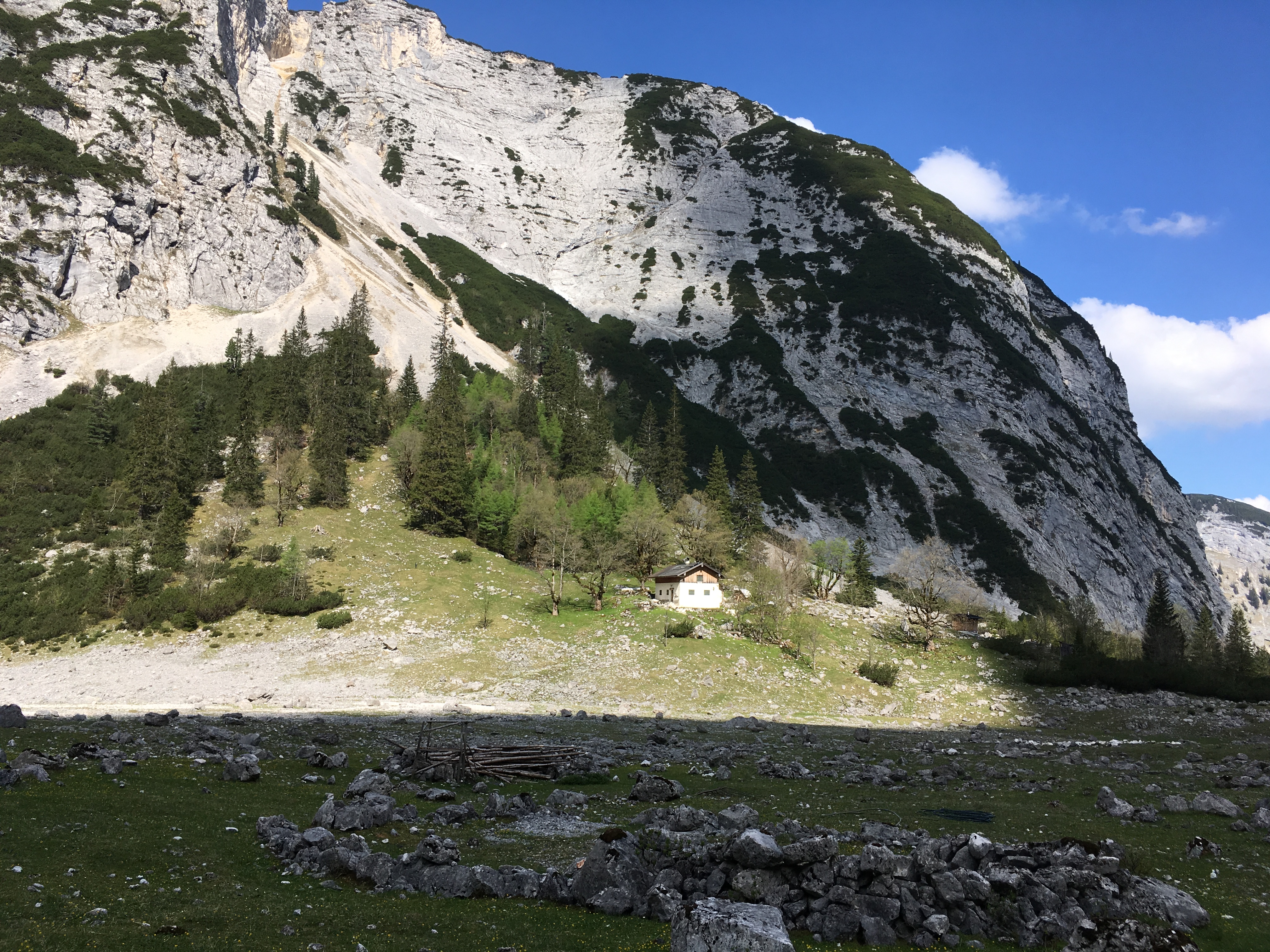 Ab dem Radldepot hinter der Hinteren Pollesalm geht es auf einer markierten Route (meistens kein angelegter Steig) hoch zum Weißmaurachjoch. Der eigentliche Mainzer Höhenweg ist auf der Seite der DAV-Sektion Mainz sehr gut beschrieben - ich verweise darauf. Vor dem Anstieg zum Wassertalkogel gäbe es auch noch einen Zwischenabstieg zurück in das Pollestal. Ich bin aber die Route durchgegangen und vom Abzweig des Normalwegs hinab in das Pollestal noch etwas weiter Richtung Polleskogel, den Rest kannte ich ohnehin schon. Trotz eines ausgebauten Weges (bis ca. 2.250 m) bietet das Pollestal eine recht wilde Umgebung.