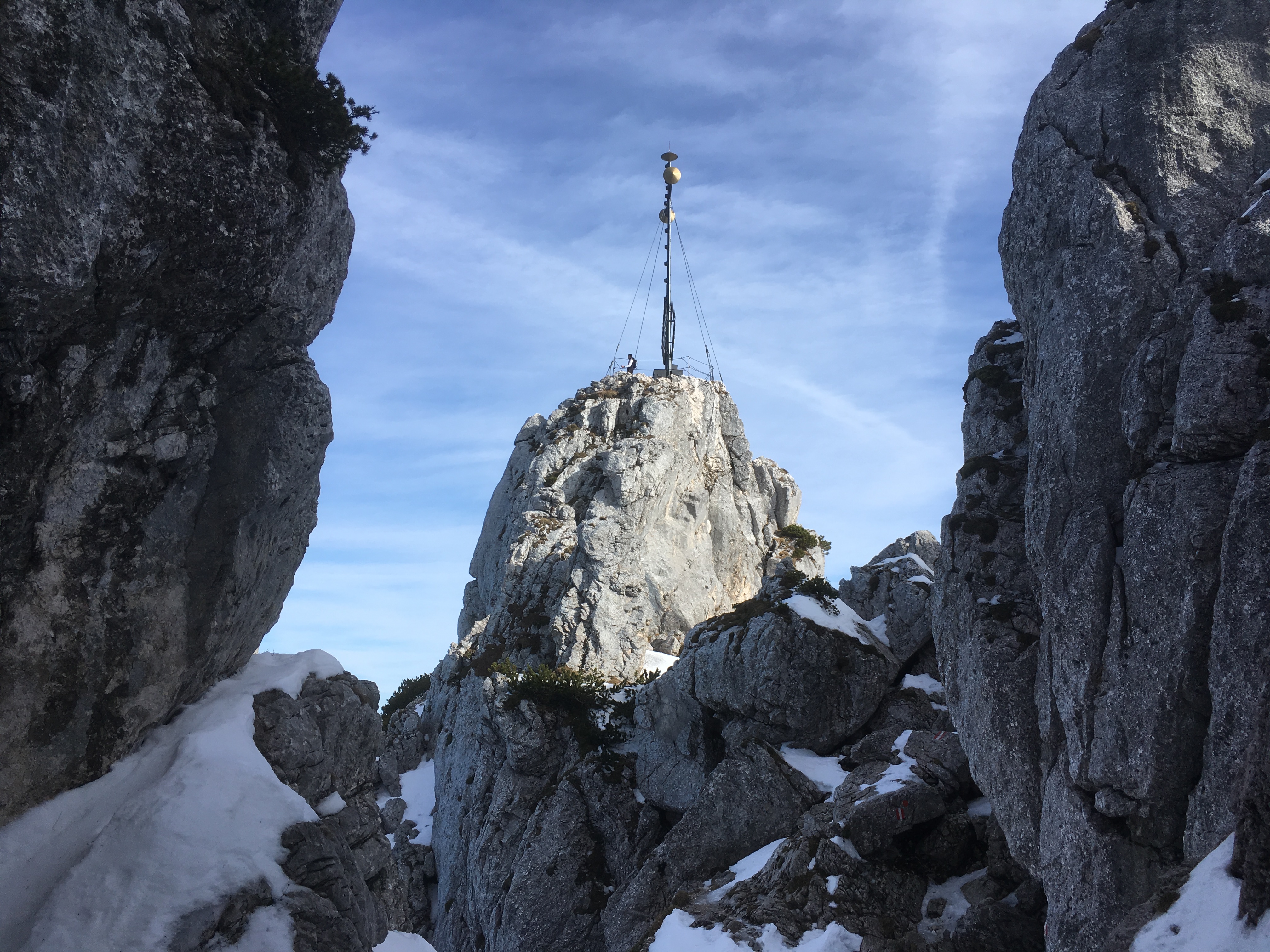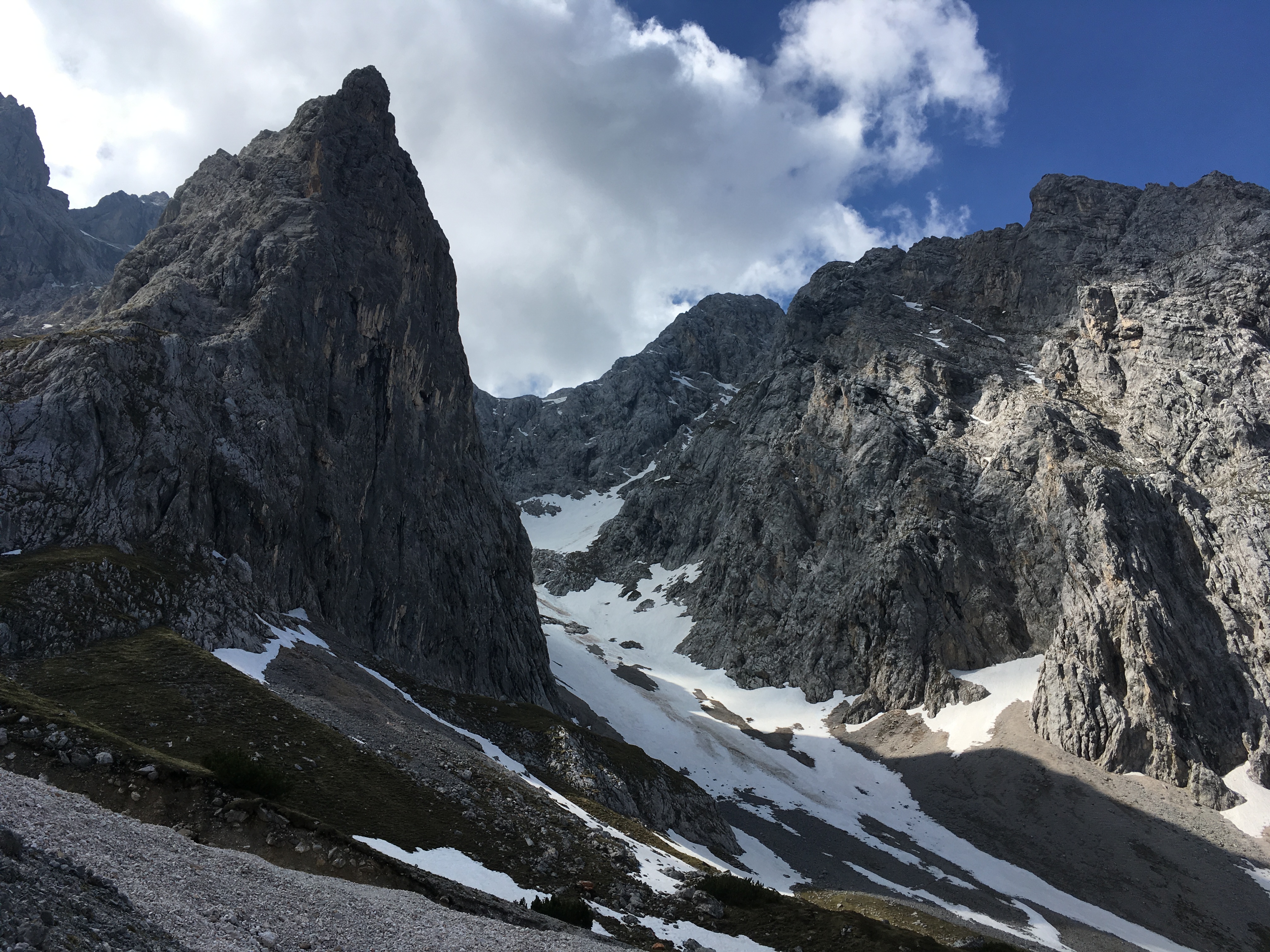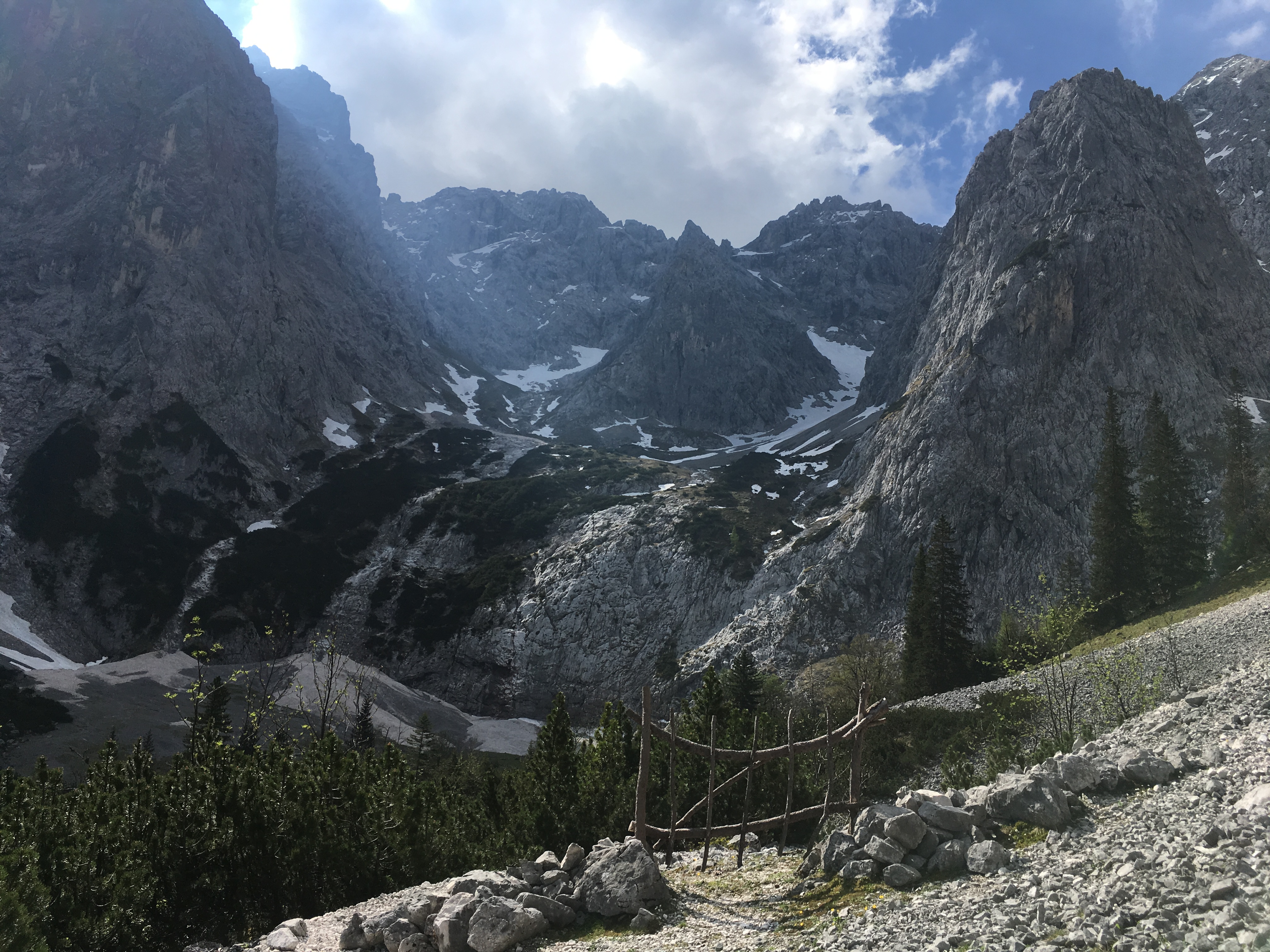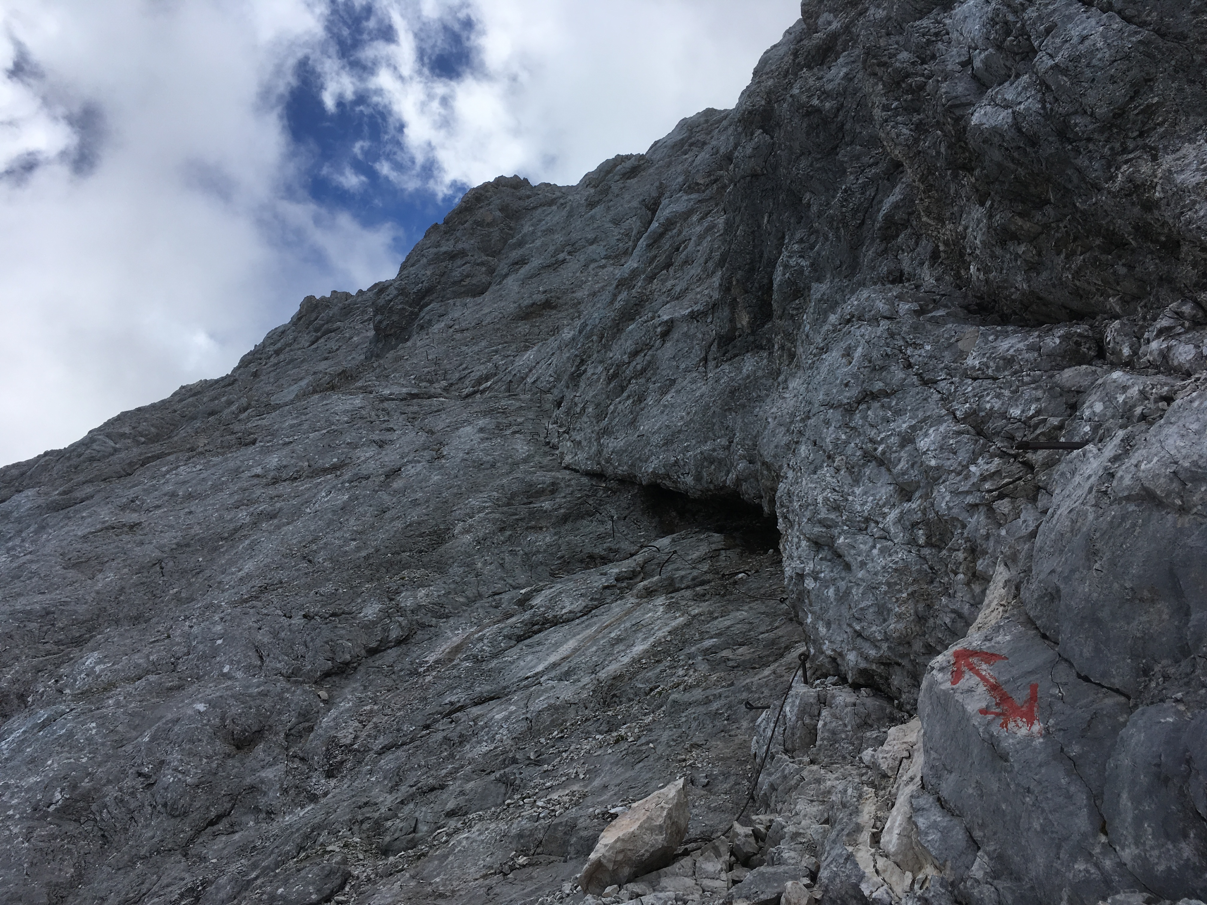Hinweis (2): Auf dem Mainzer Höhenweg sind einige Sicherungen beschädigt bzw. fehlen. Man muss sich durchaus auf brüchiges und steinschlägiges Gelände einstellen (insbesondere zwischen Weißmaurachjoch und Querung unter dem Sonnenkogel). Ein Helm ist dringend anzuraten.