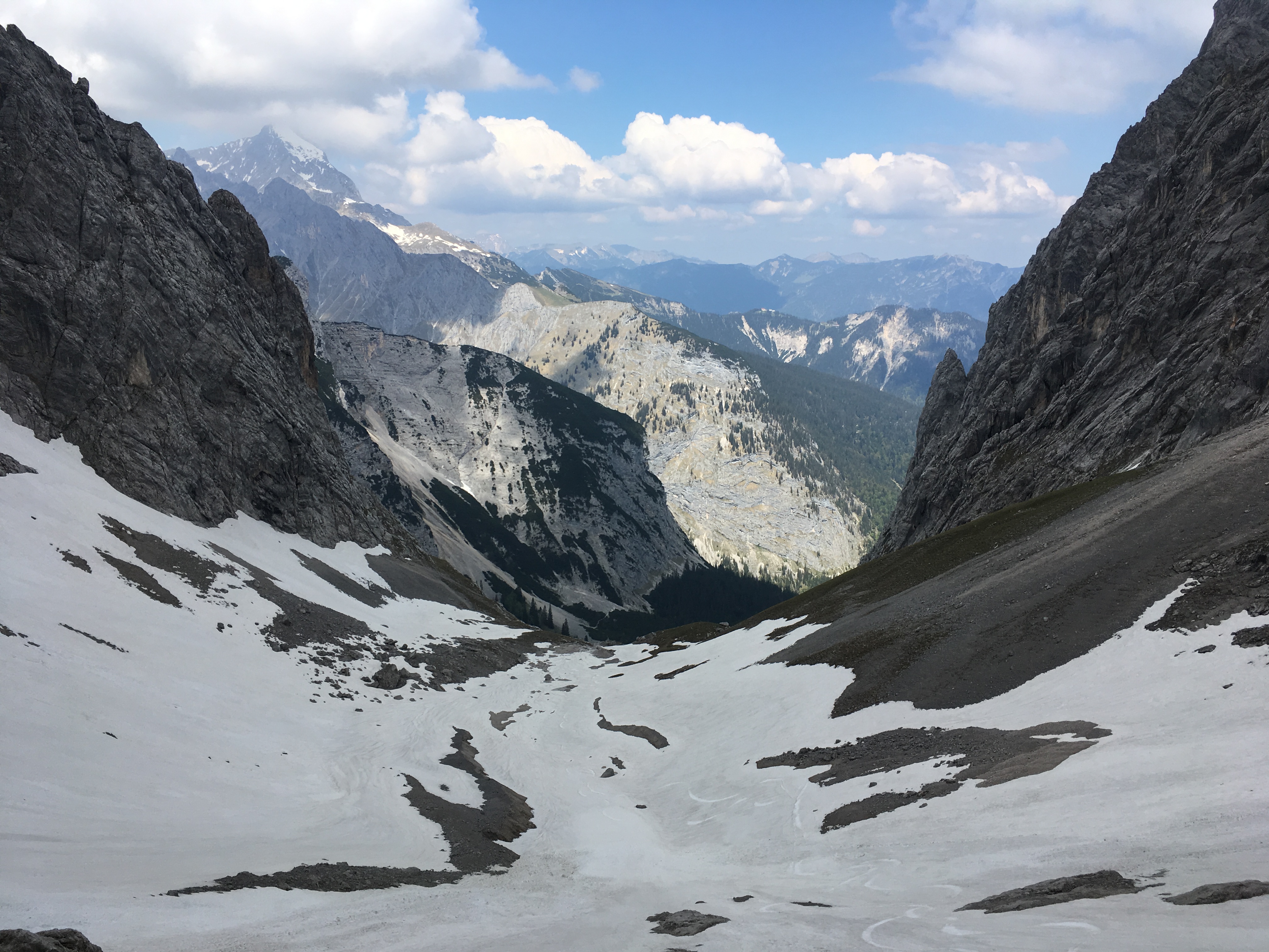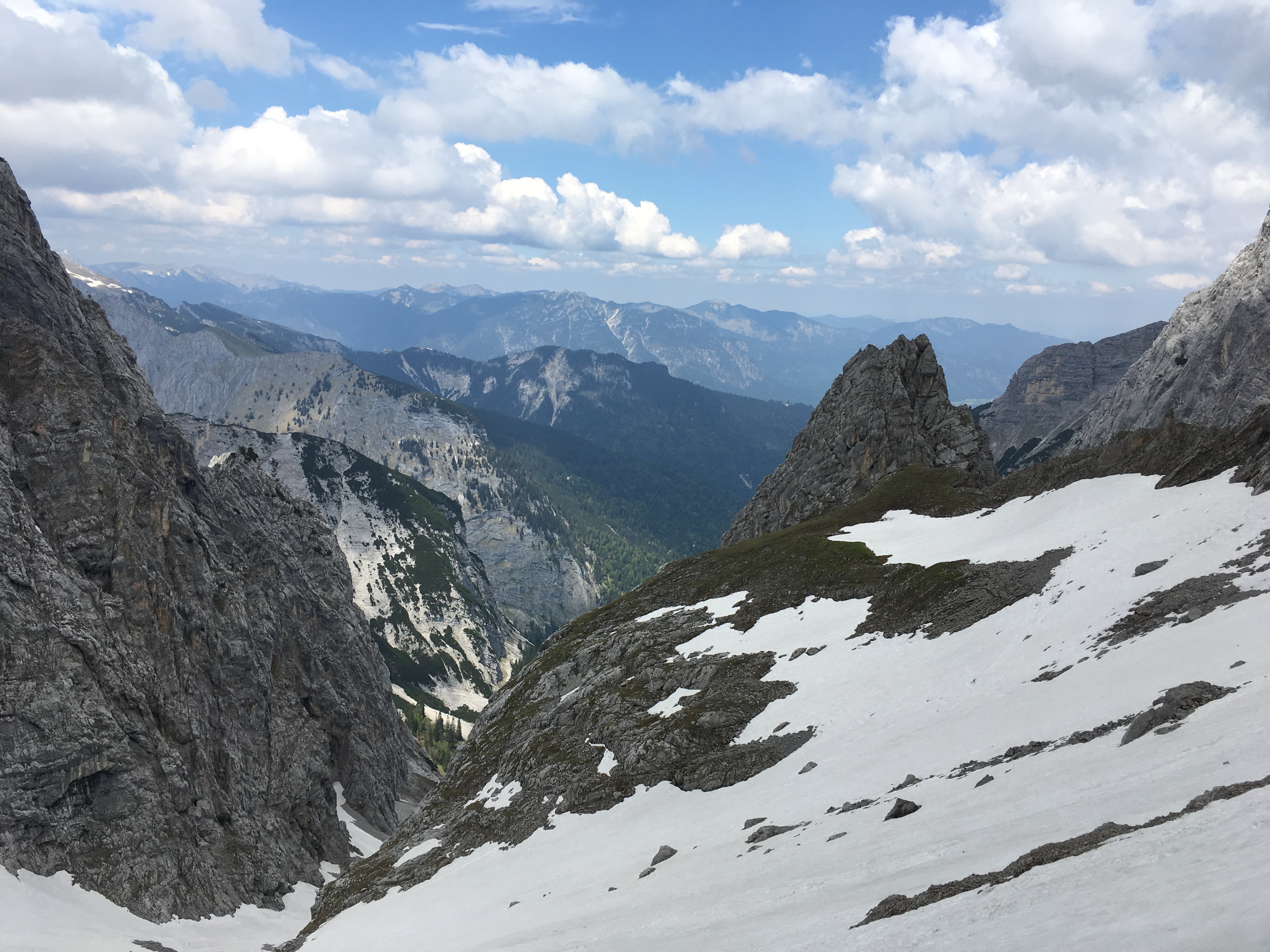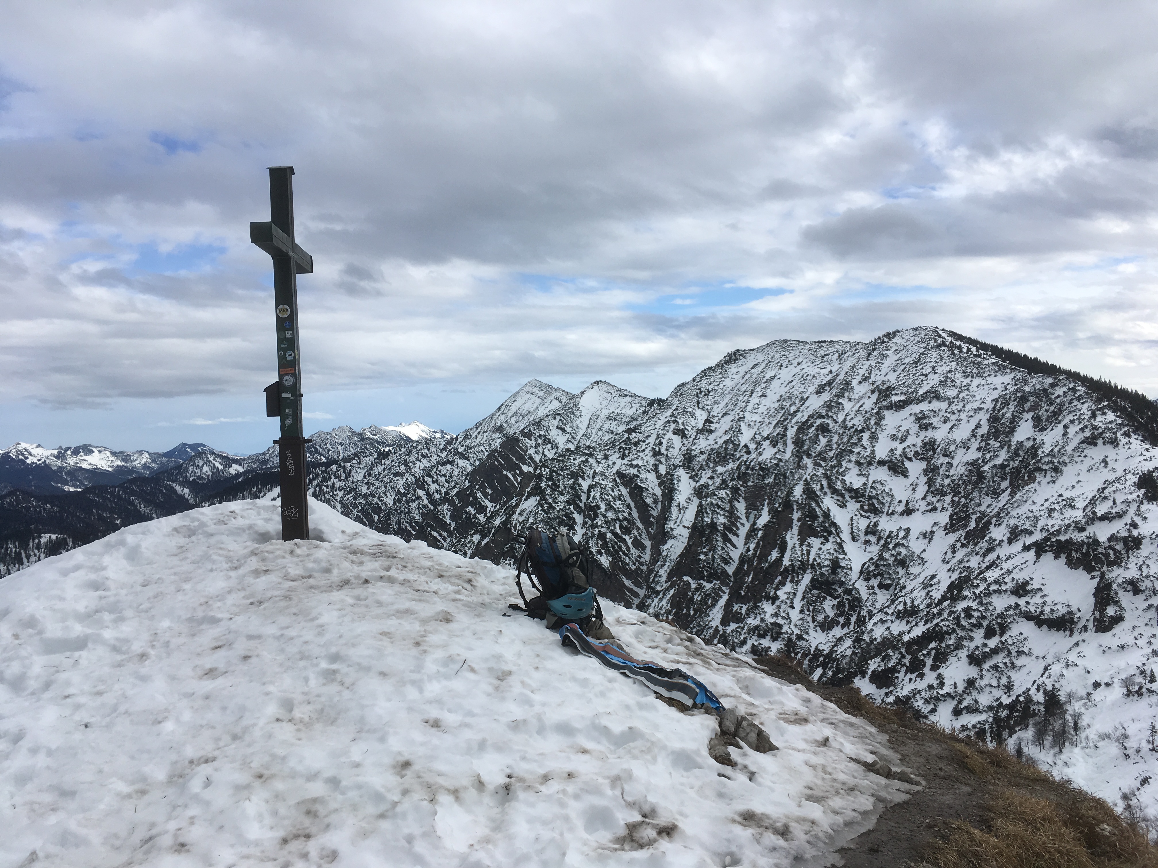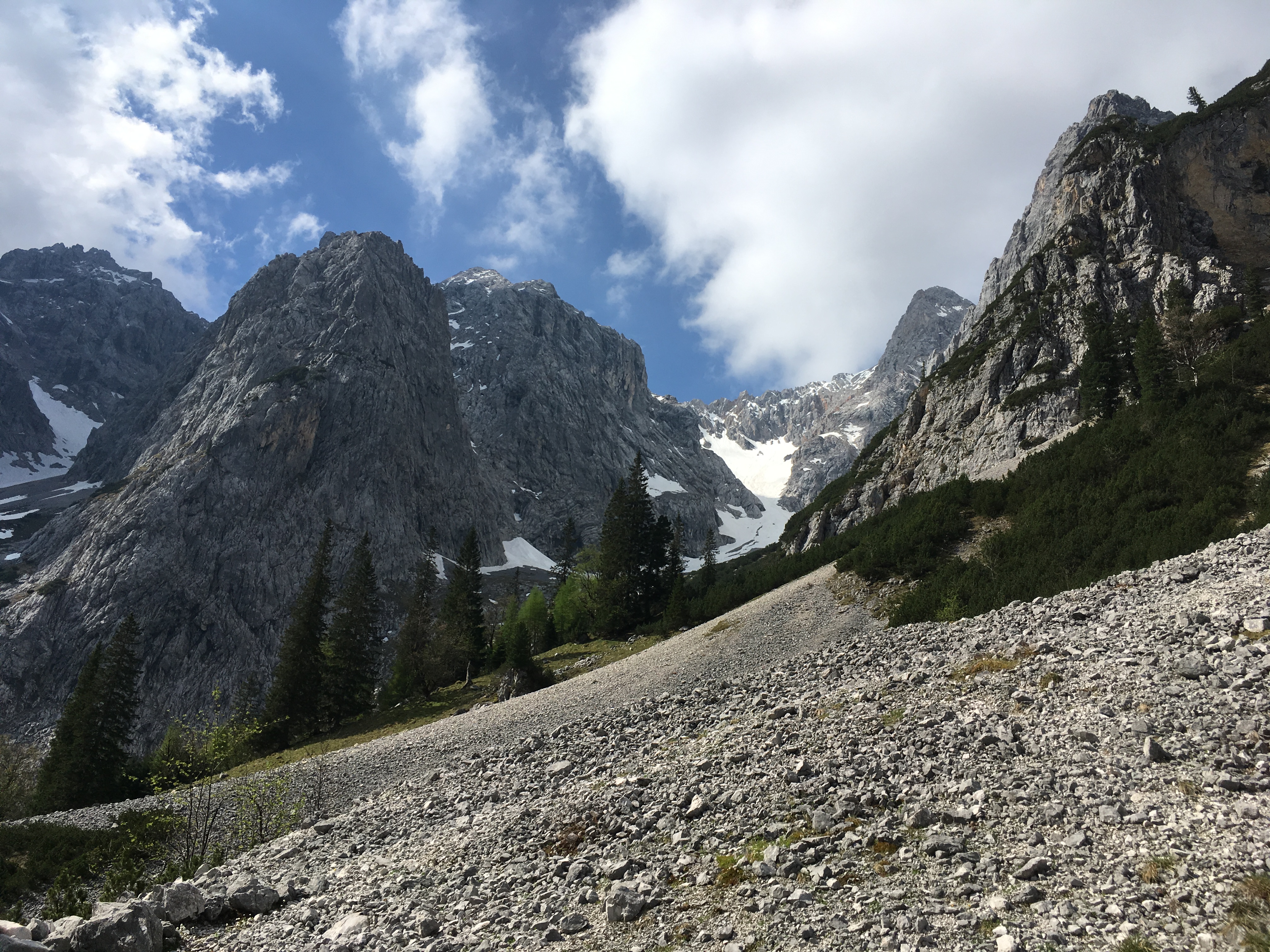 Hinweis (2): Auf dem Mainzer Höhenweg sind einige Sicherungen beschädigt bzw. fehlen. Man muss sich durchaus auf brüchiges und steinschlägiges Gelände einstellen (insbesondere zwischen Weißmaurachjoch und Querung unter dem Sonnenkogel). Ein Helm ist dringend anzuraten.