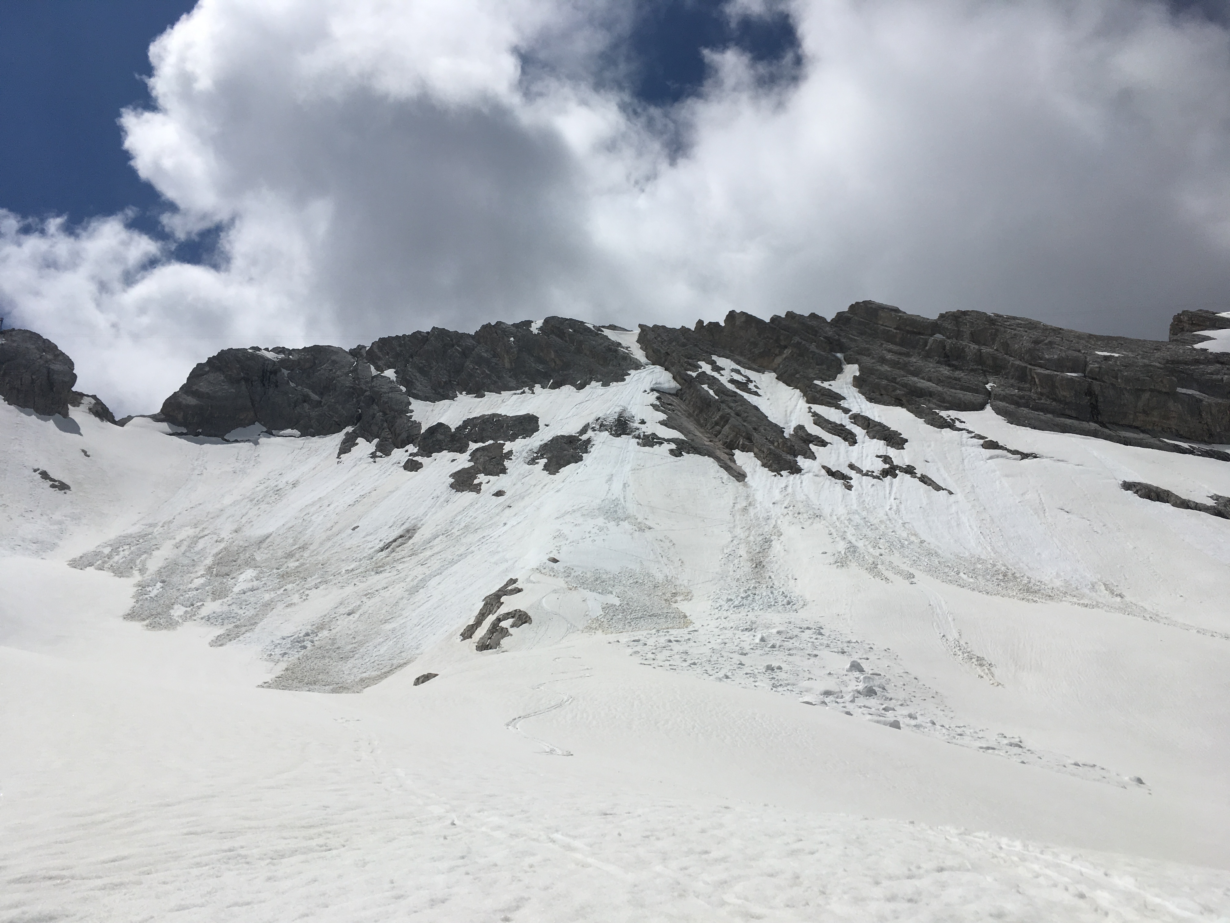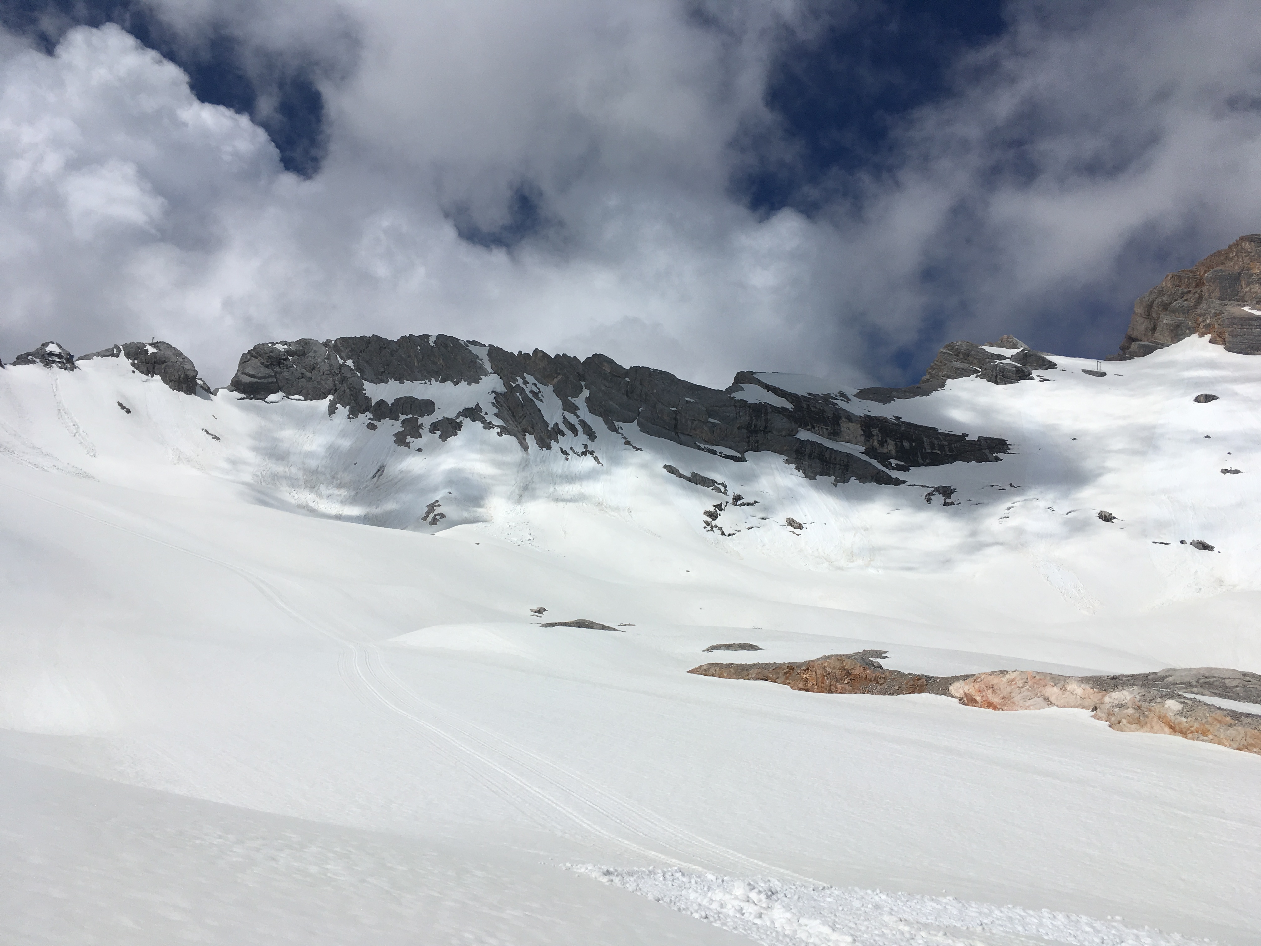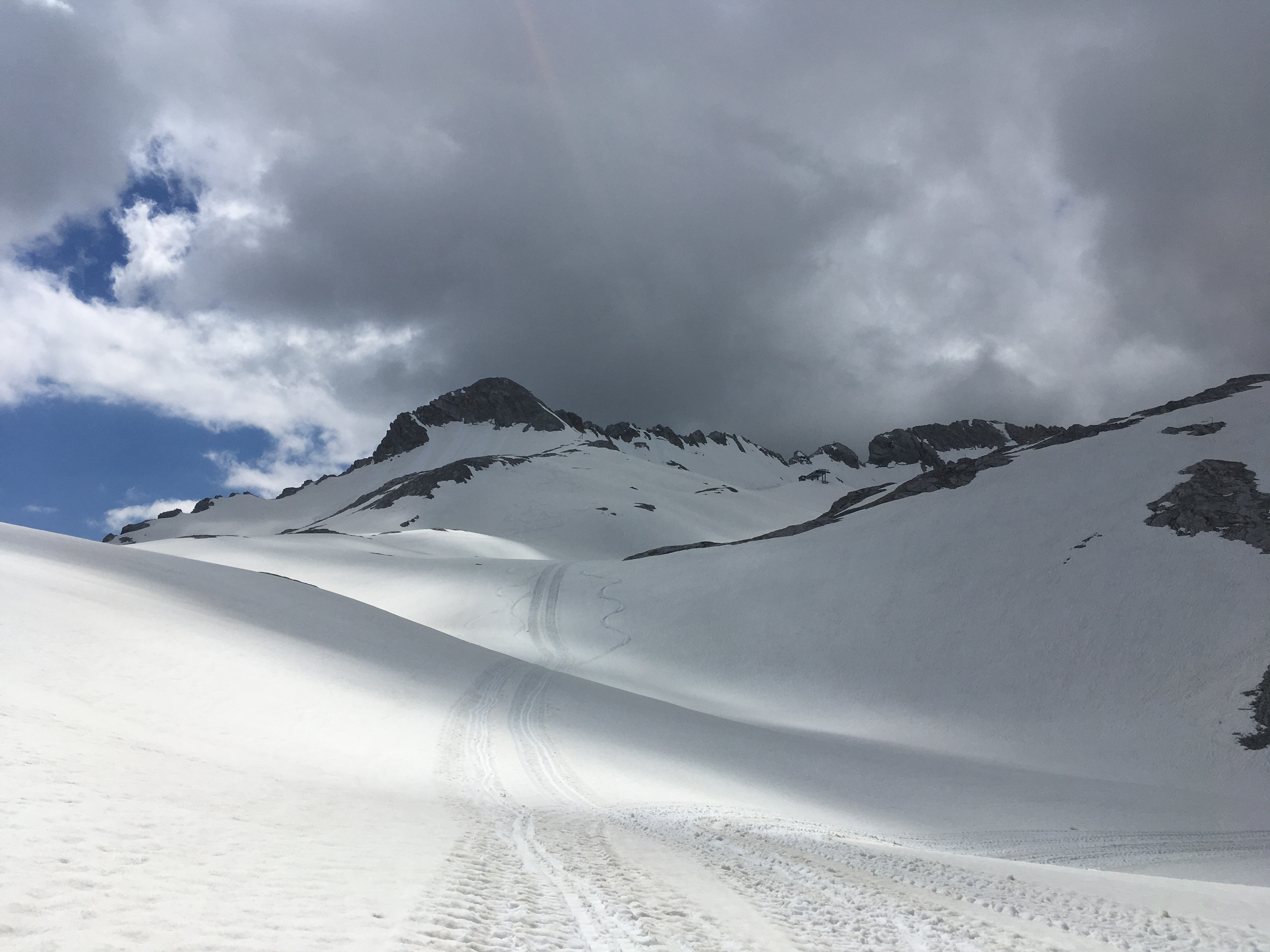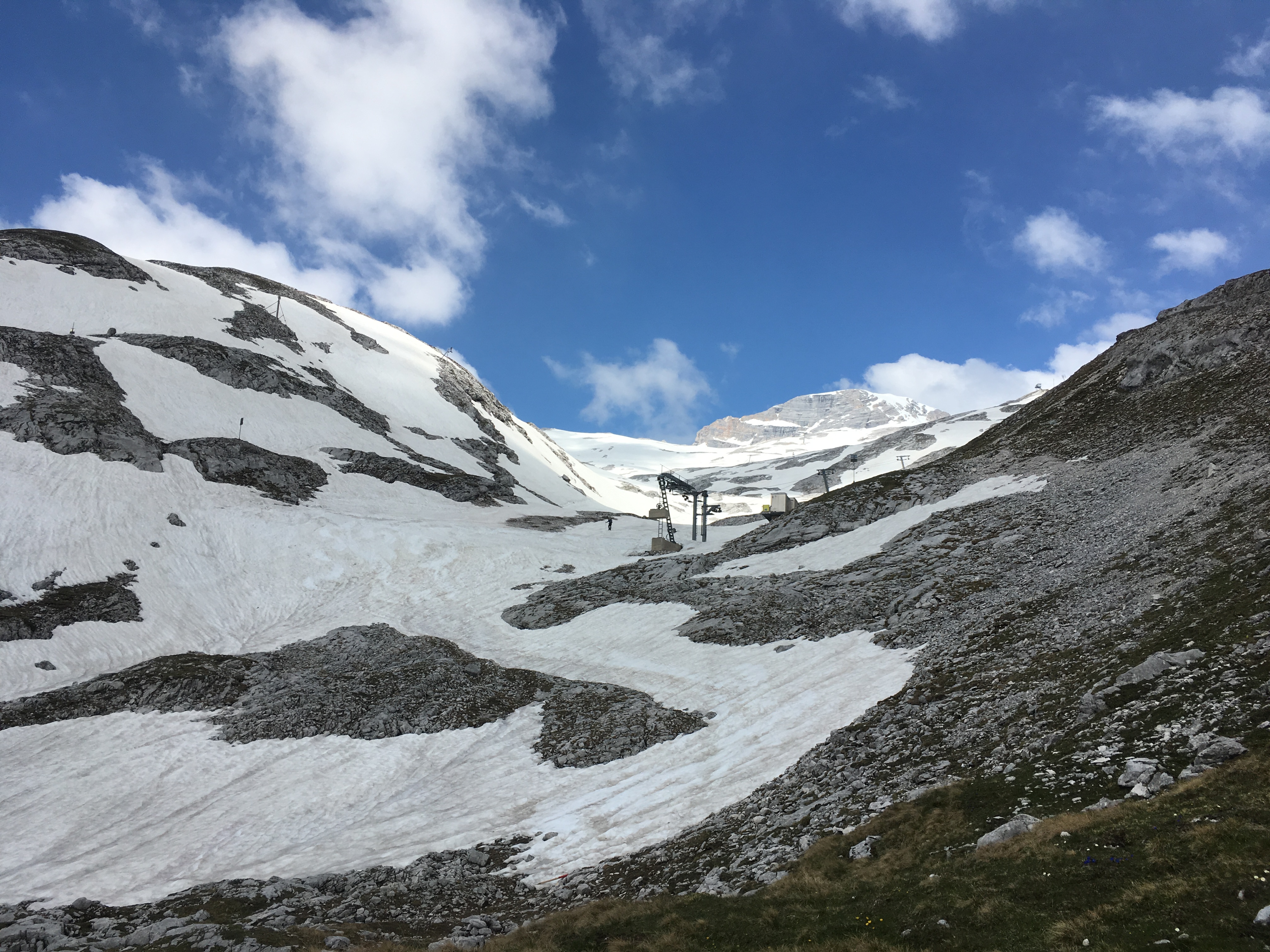 Tourenverhältnisse: einige Restschneefelder, der Südliche Pollesferner ist noch überwiegend schneebedeckt und bei den sehr hohen Temperaturen war der Schnee weich - Steigeisen und Pickel daher nicht gebraucht (alle Beschreibungen empfehlen aber ihre Mitnahme, woran ich mich brav gehalten habe)