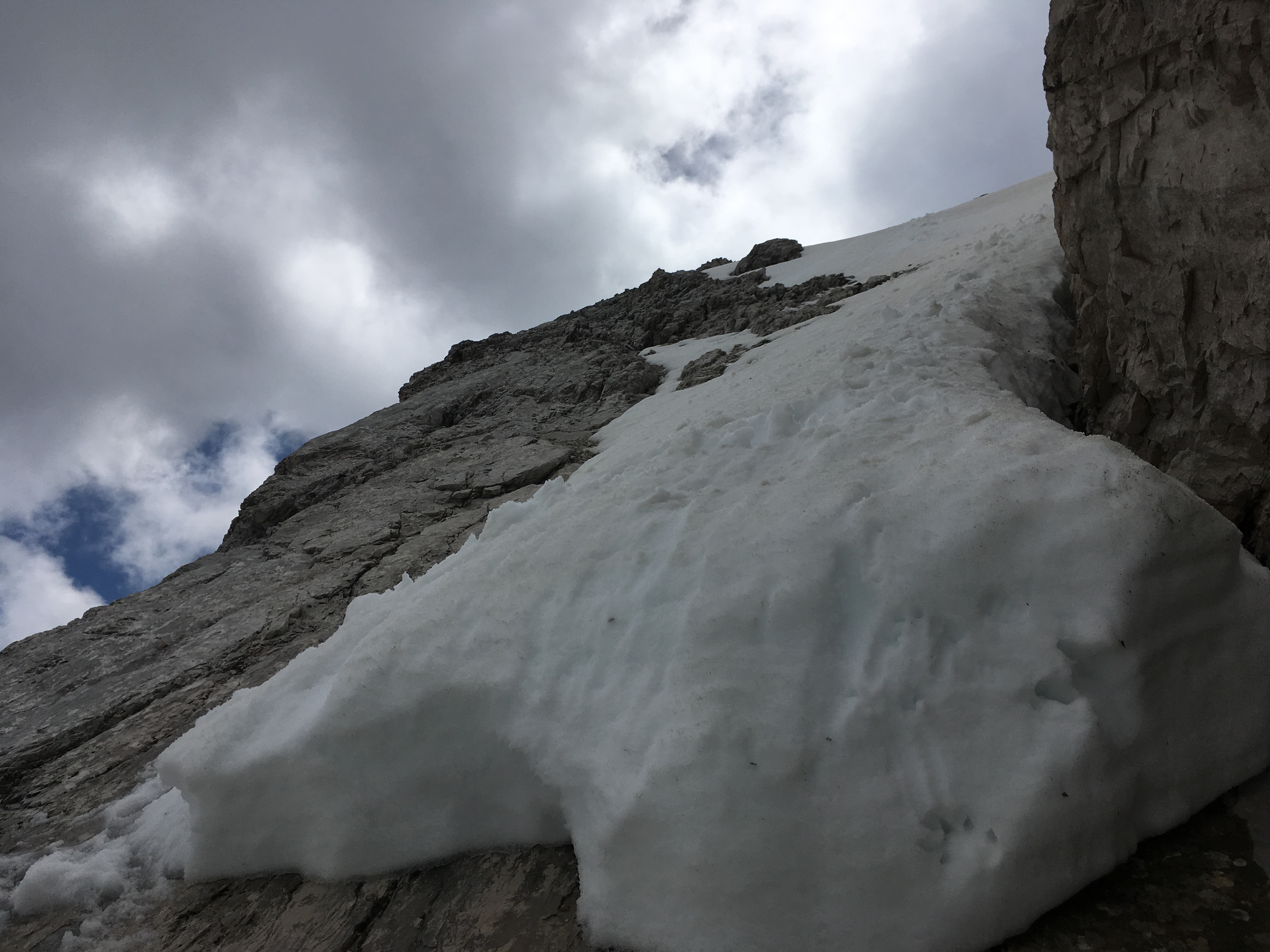 Hinweis (1): Auf der Nordseite des Puitkogel gab es gestern massiven Steinschlag. Möglicherweise die Kombination aus den sehr hohen Temperaturen, viel Niederschlag zuvor und auftauendem Permafrost. Der Anstieg von der Rüsselsheimer Hütte zum Weißmaurachjoch geht da vorbei, möglichst weit weg von dem steinschlägigen Gebiet halten. Im Bereich des Weißmaurachjochs bröckelt ohnehin beidseits viel (unangenehmes Gelände).