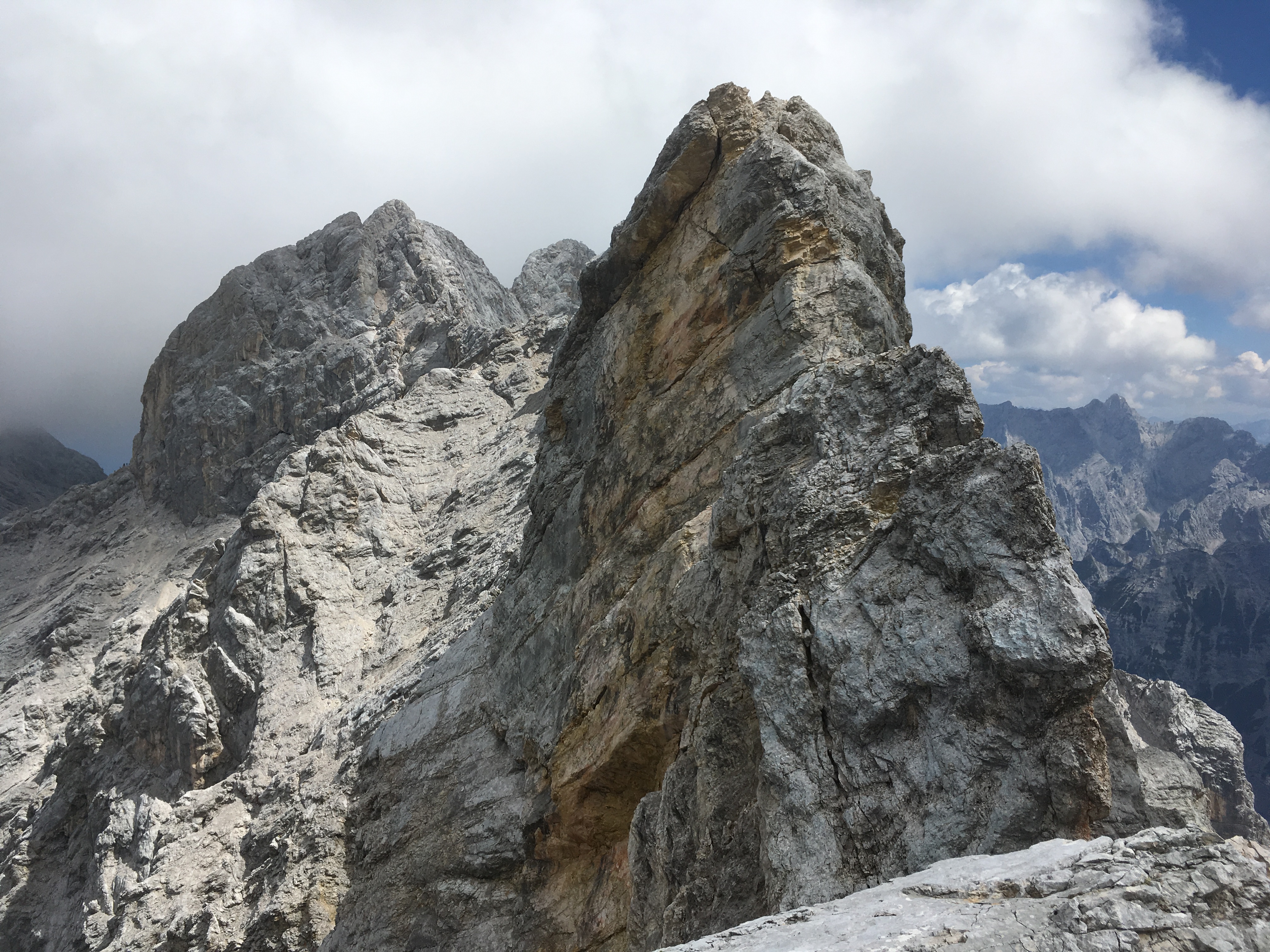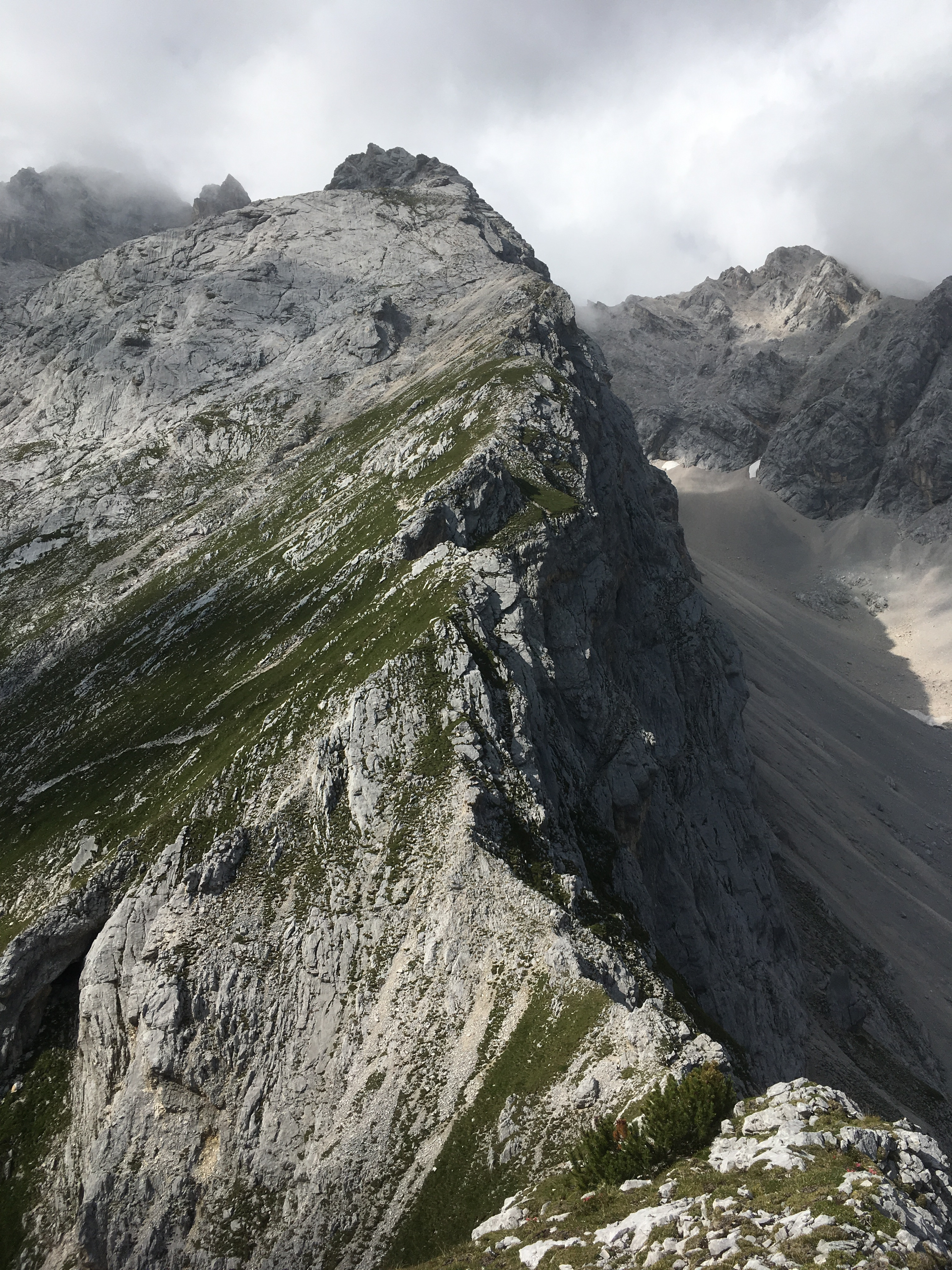 Gefahreneinschätzung: v.a. Steinschlag und Verletzungsgefahr am Bröselfels - insbesondere der erste Teil ab dem Weißmaurachjoch hat häufig keine gute Felsqualität und ist teilweise sehr sandig
