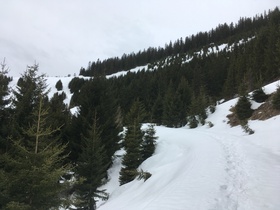 Tourenverhältnisse: Ca. 50 m Wegstrecke hinter dem Parkplatz beginnt der Schnee, der aber bis zur Erichhütte noch mehrfach unterbrochen ist. Ab dort noch ordentlich Schnee, allerdings recht schwer - mit gewisser Geschwindigkeit aber recht passabel zu fahren.