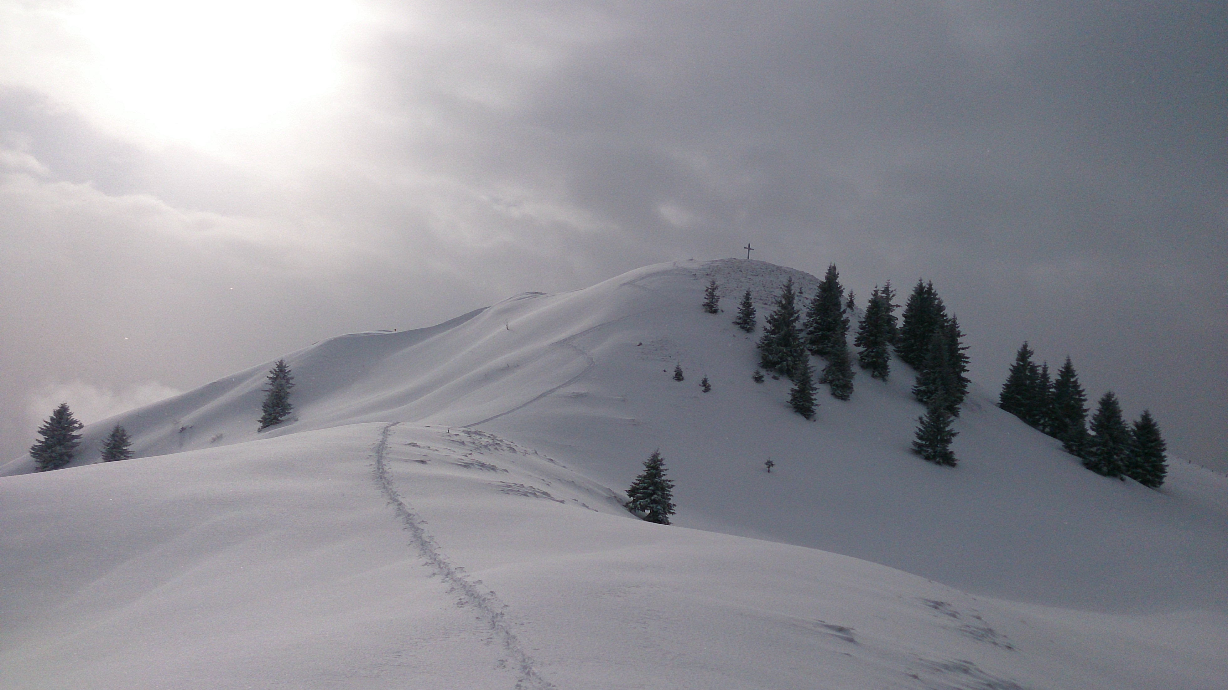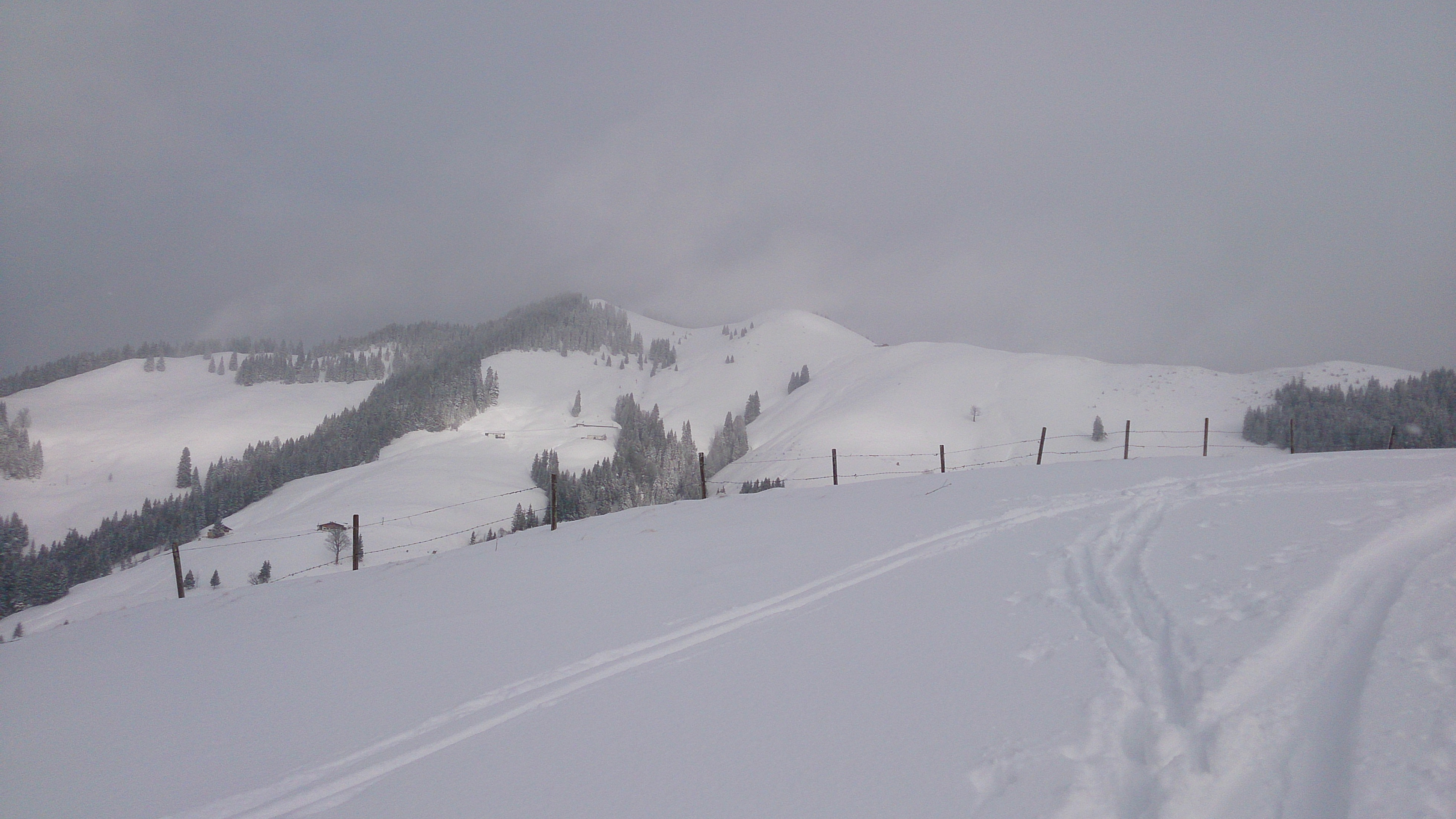 Der schöne Gipfelhang der Tristmahlnschneid (leider gerade bei Schneefall, daher nicht so gut zu sehen):